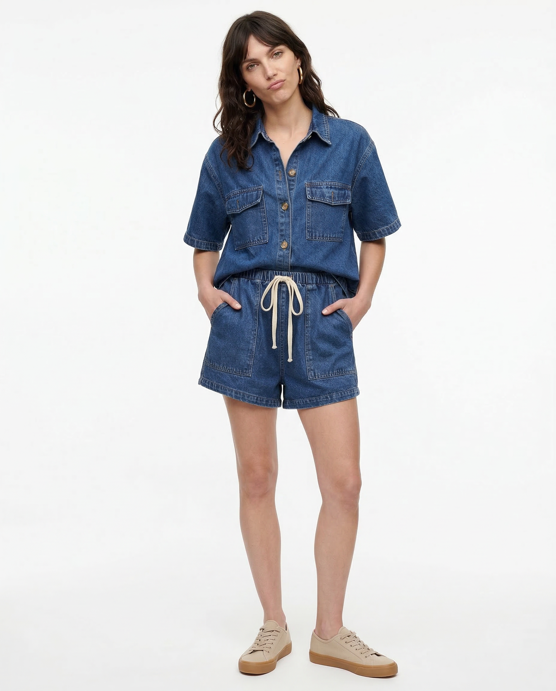 A breezy button-down + drawstring shorts = the perfect mix of polished and casual. Dress it up with heels or keep it chill with sneakers!