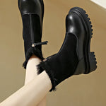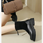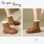 Built for cold days, these plush-lined suede boots keep your feet warm without sacrificing edge. A sturdy platform sole and soft leather-suede mix make them both durable and stylish.