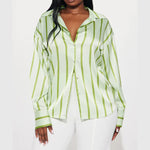 Deliberately bold, this satin blouse doesn’t whisper—it talks. Red stripes over ivory silk command attention from conference calls to cocktail hours.