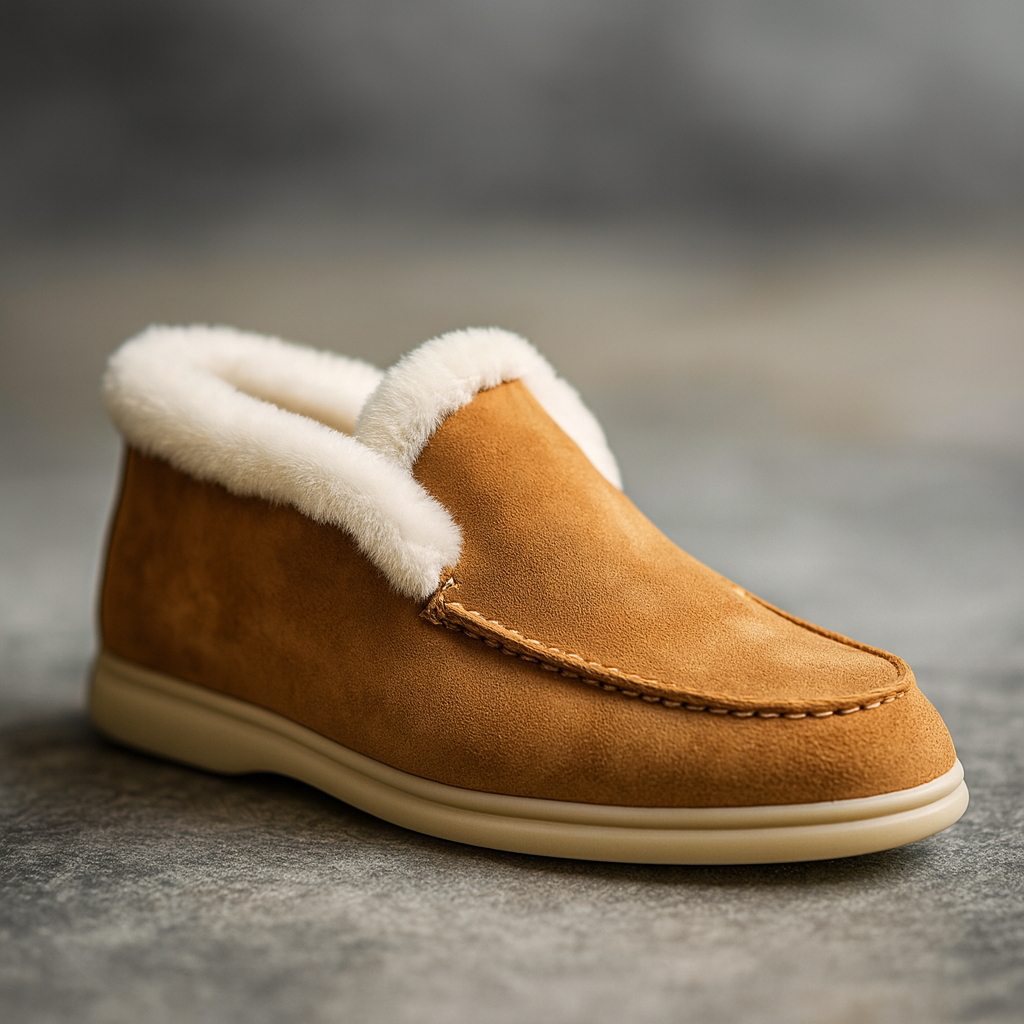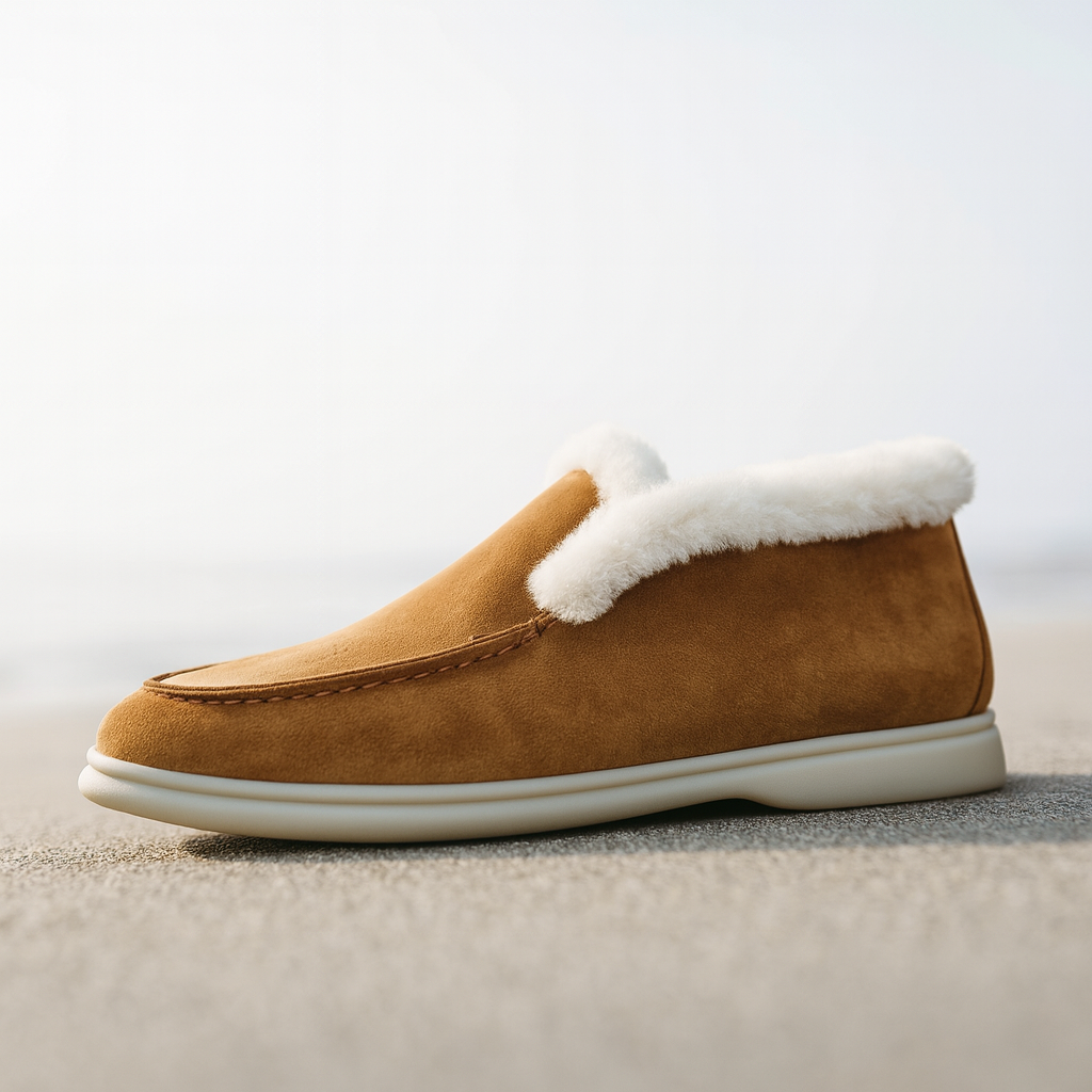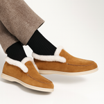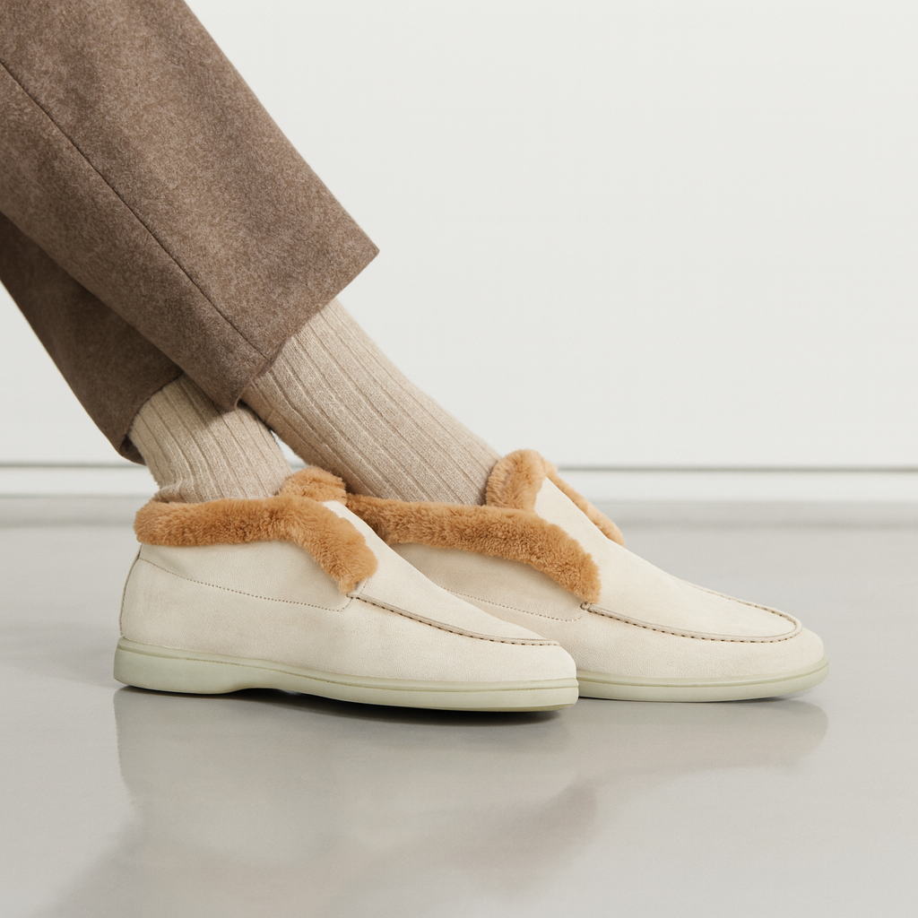 A refined fusion of comfort and craftsmanship — these shearling-lined loafers bring cozy warmth to a classic silhouette. Ideal for relaxed days when luxury feels effortless.