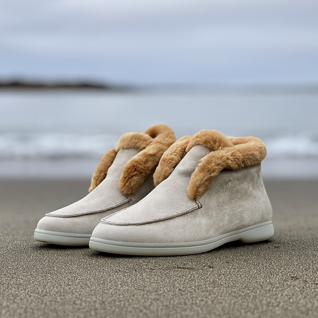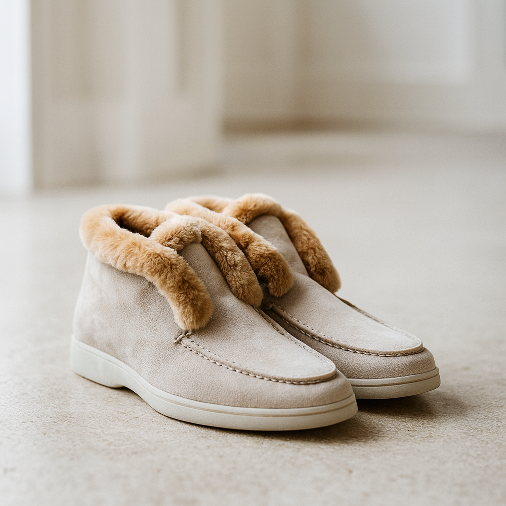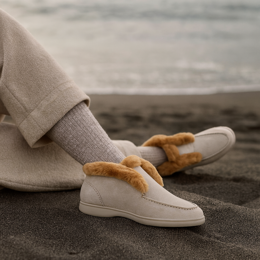 A refined fusion of comfort and craftsmanship — these shearling-lined loafers bring cozy warmth to a classic silhouette. Ideal for relaxed days when luxury feels effortless.