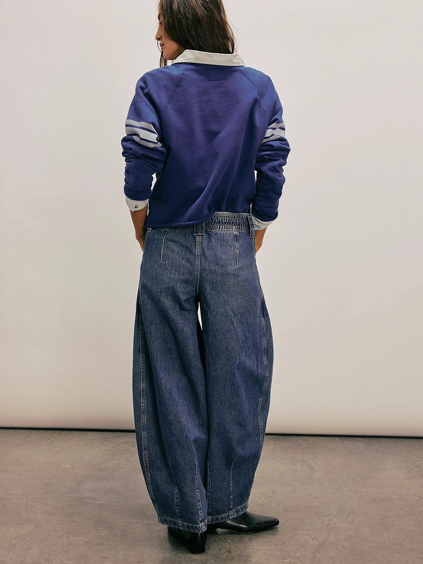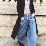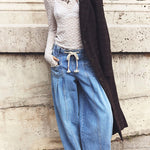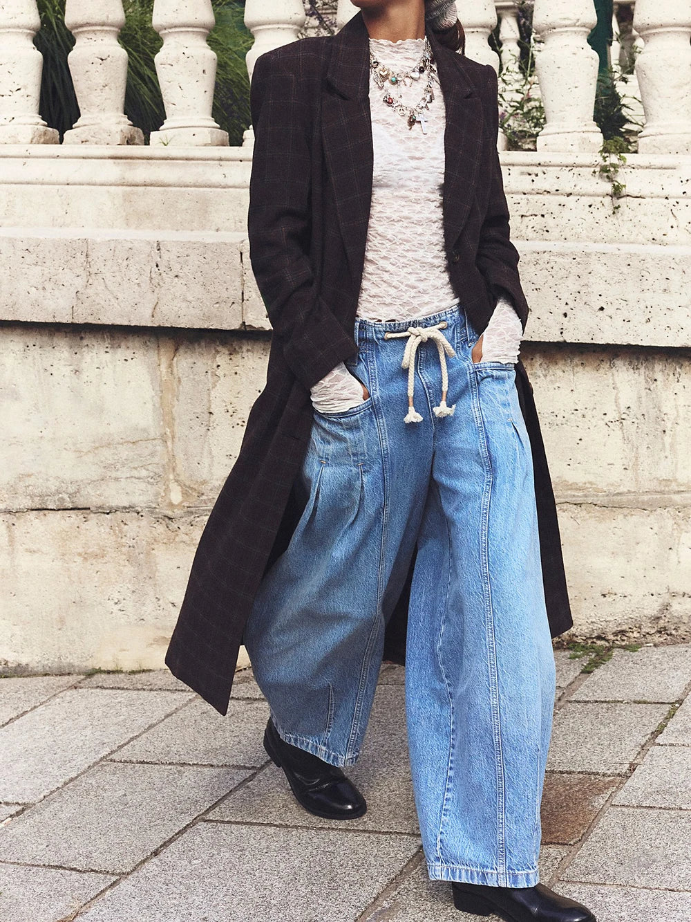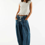 Effortless and easy, these slouchy denim pants feature a relaxed wide-leg cut and a soft rope drawstring waist. Made for casual days and coastal getaways alike.