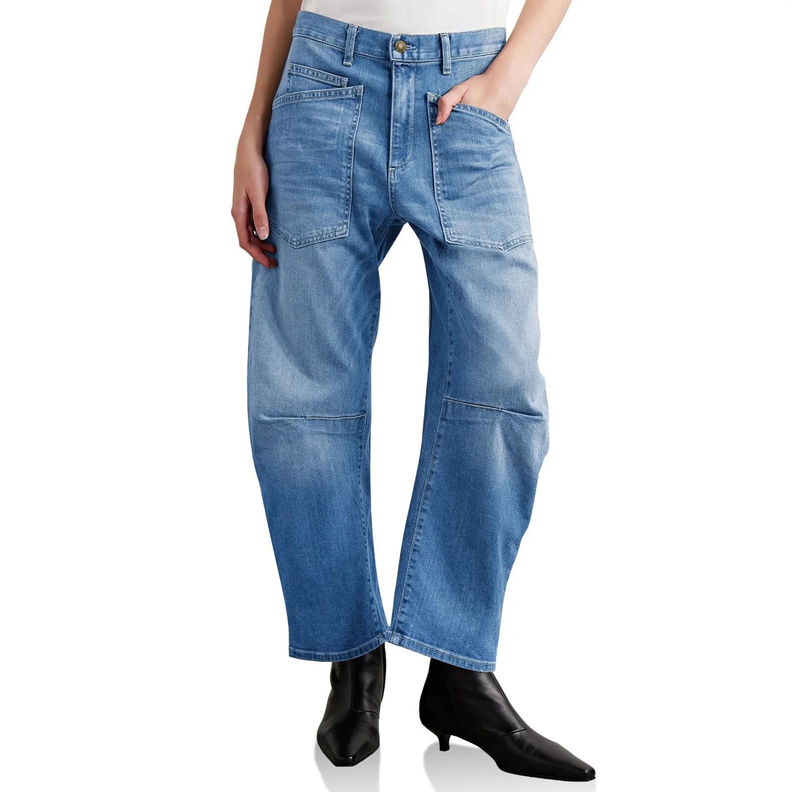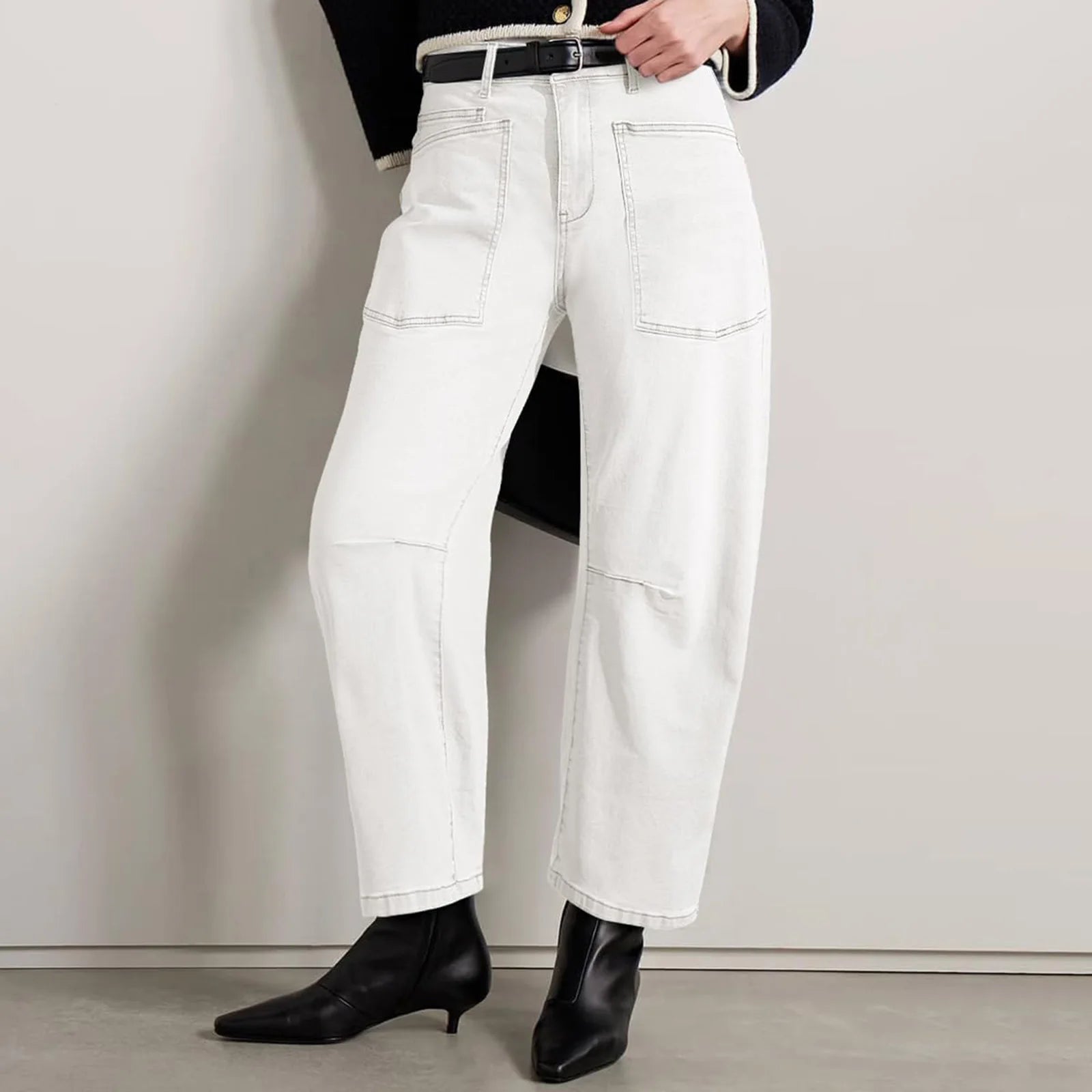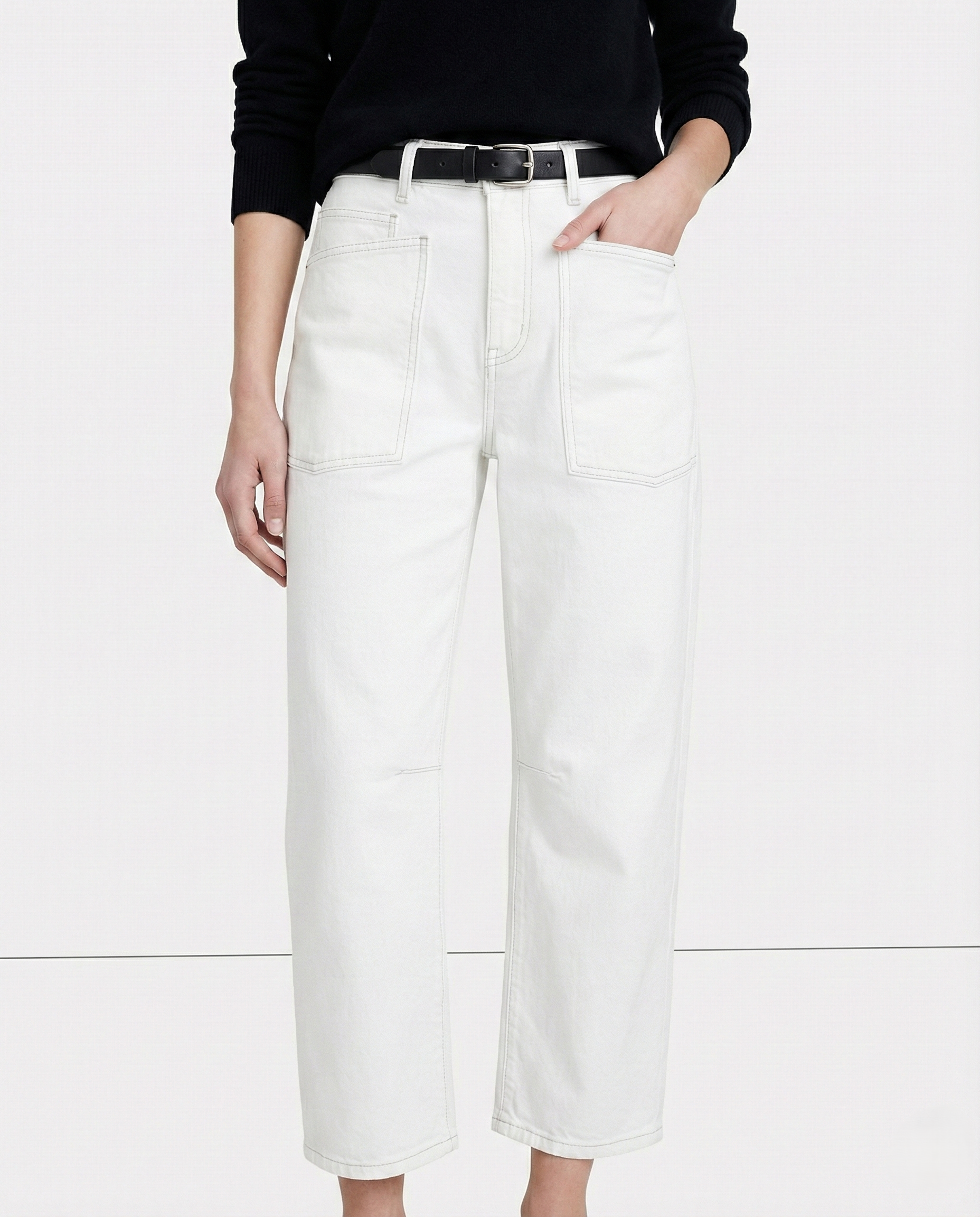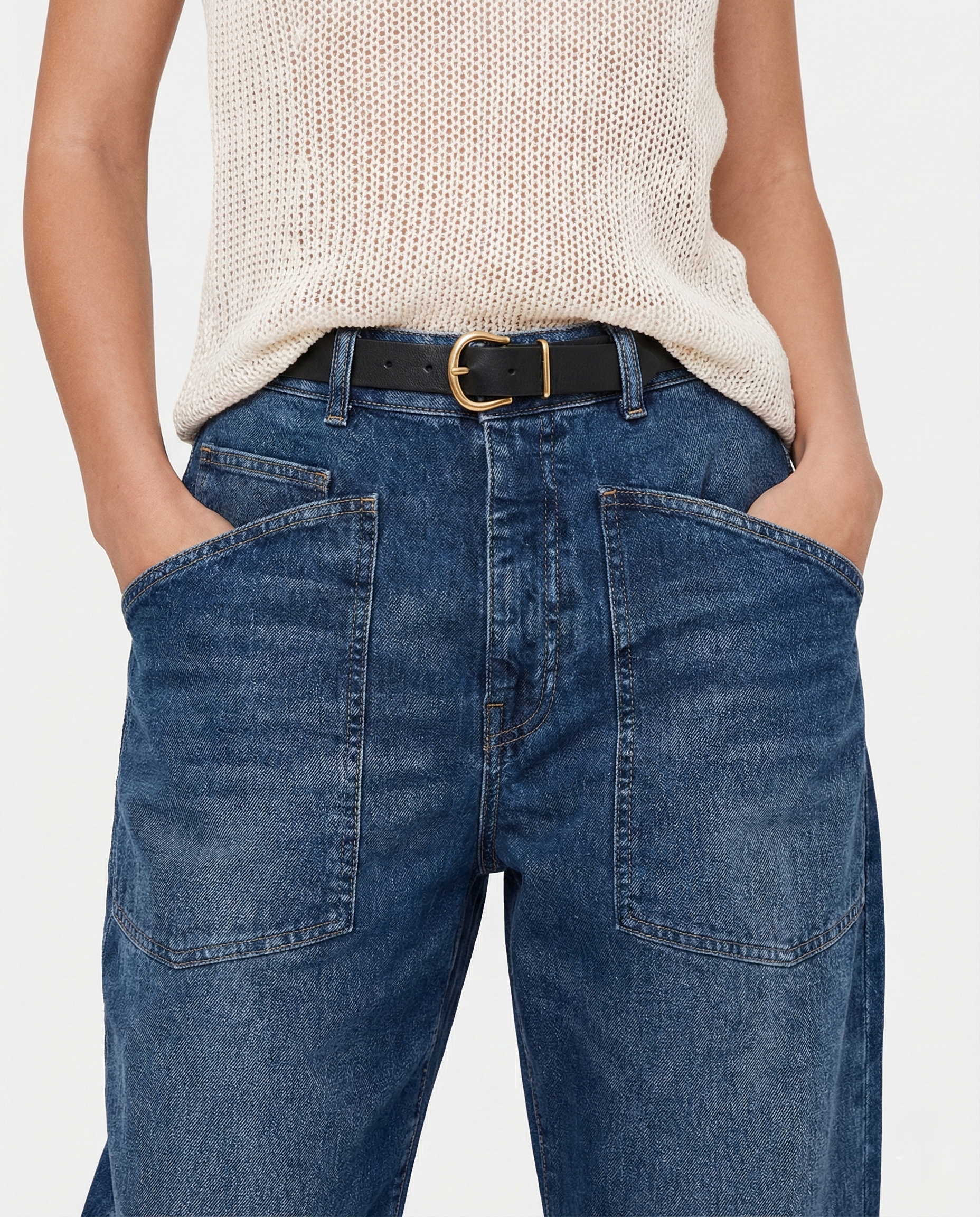 A new proportion changes everything. Our sculpted barrel leg curves with intention through the hip and tapers softly at the ankle, creating shape without clinging and structure without stiffness — the kind of denim that makes the rest of the outfit feel considered.