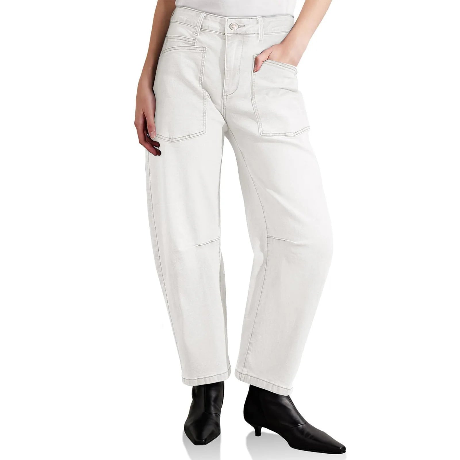 • High-rise sculpted barrel fit