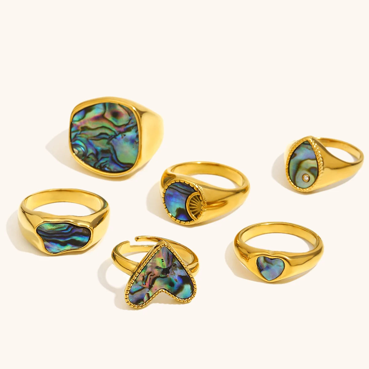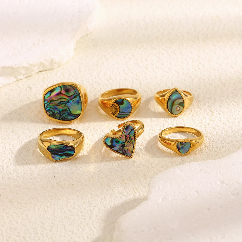 The Seraphina Abalone Signet Rings