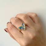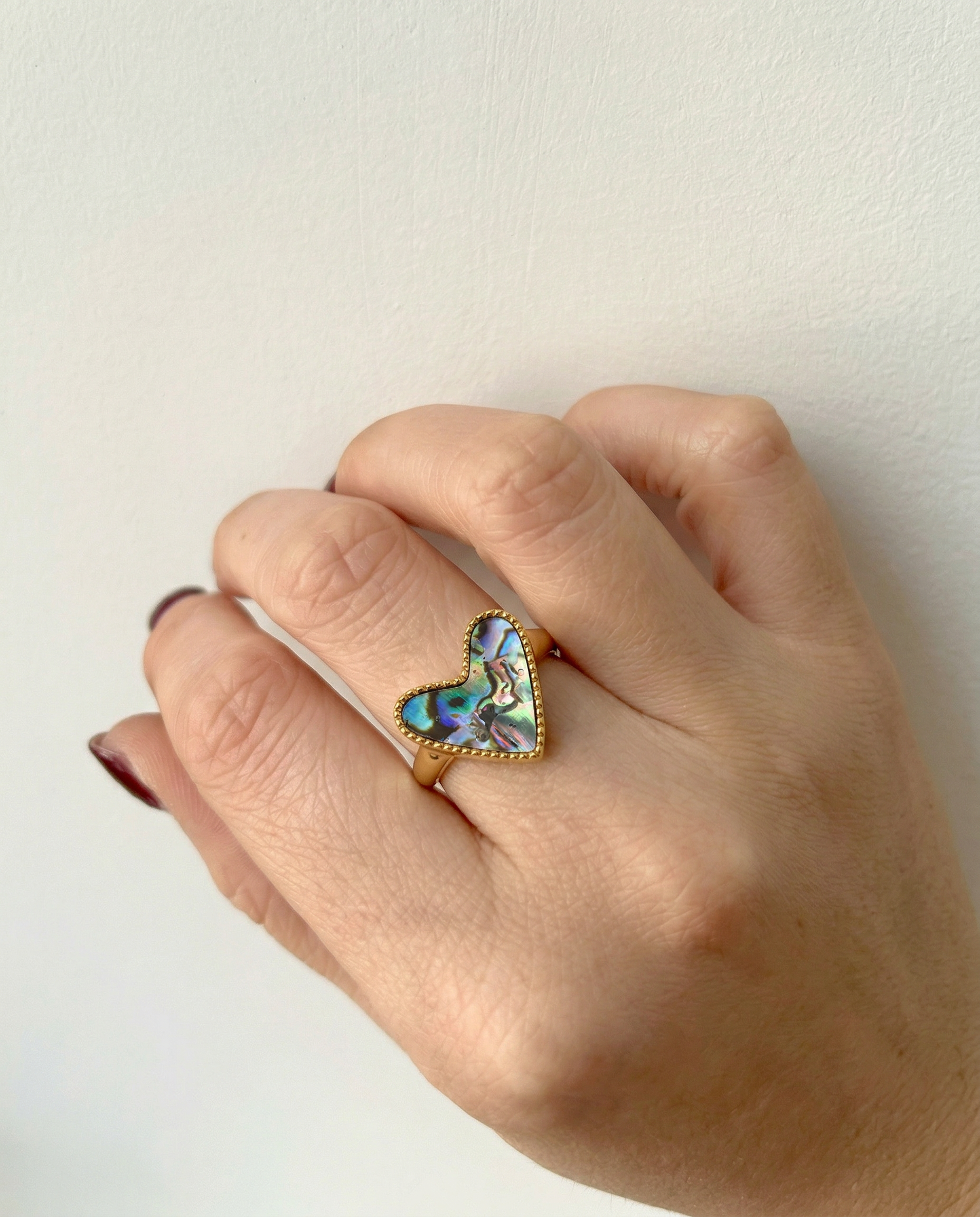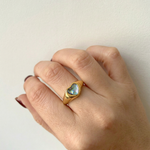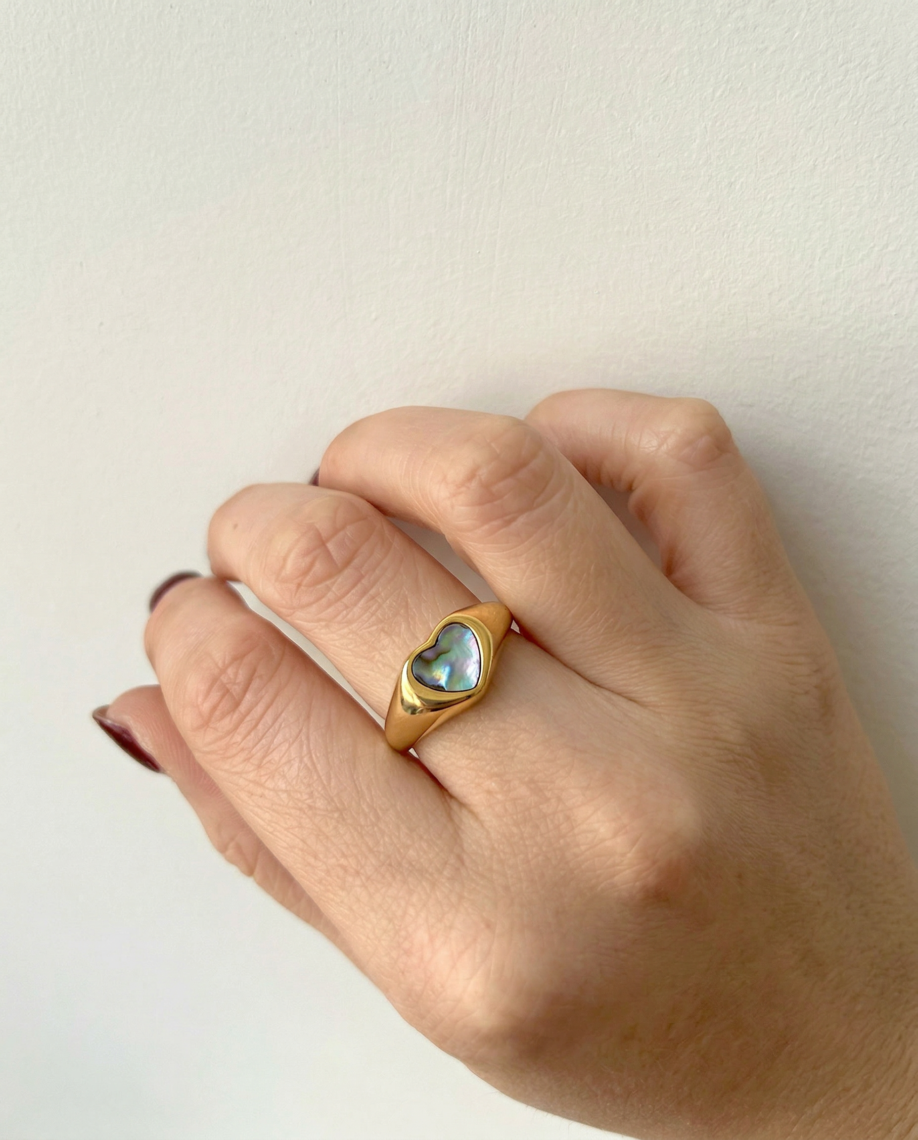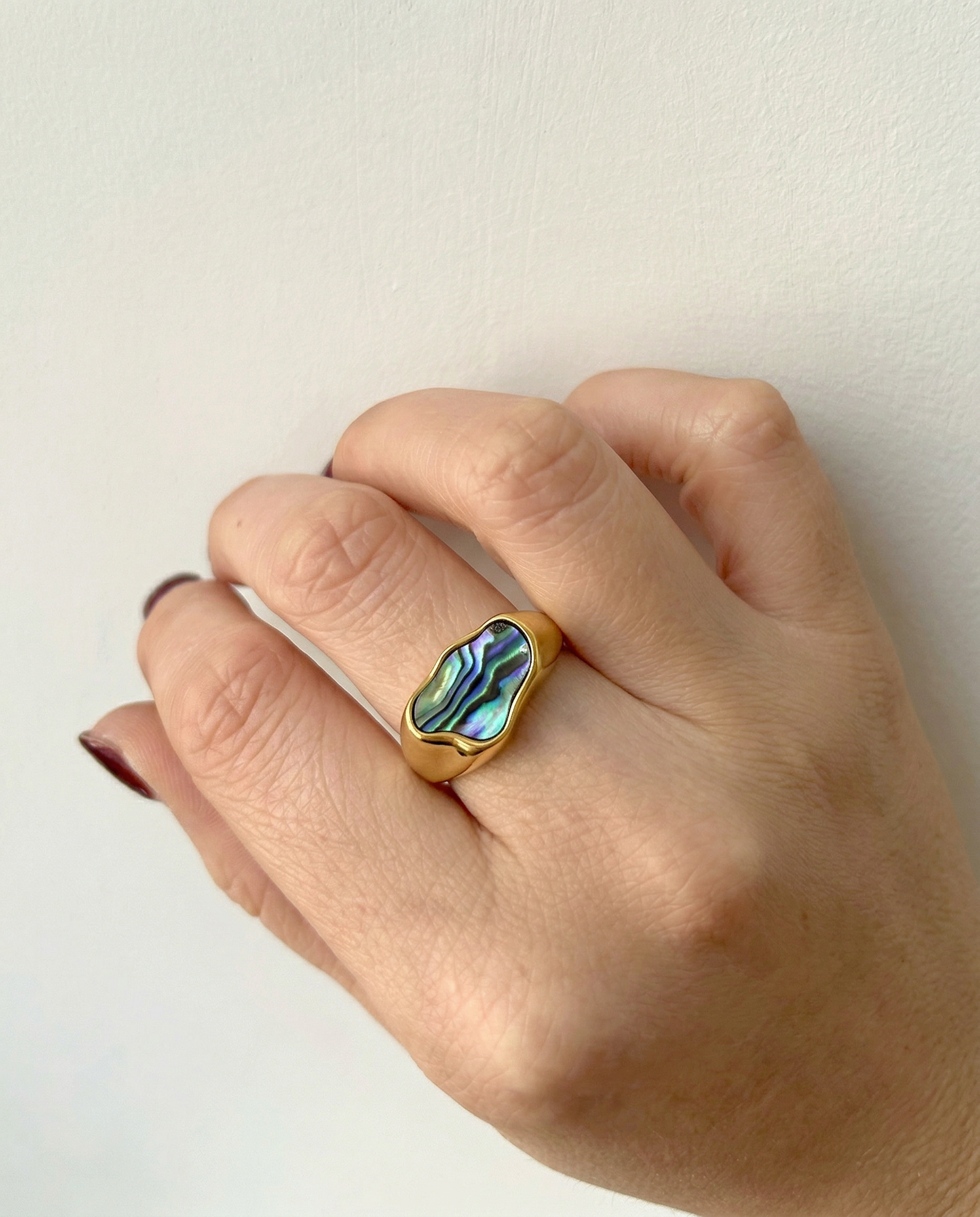 Luminous depth meets sculpted gold. Each iridescent abalone inlay catches the light differently, giving this bold signet silhouette a rich, dimensional glow that feels both modern and heirloom-worthy.