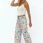 Print becomes polish here. Our softly structured wide-leg denim is washed in a muted floral tapestry that feels collected rather than loud — sitting high at the waist and falling into an easy, architectural drape that carries the entire look.
