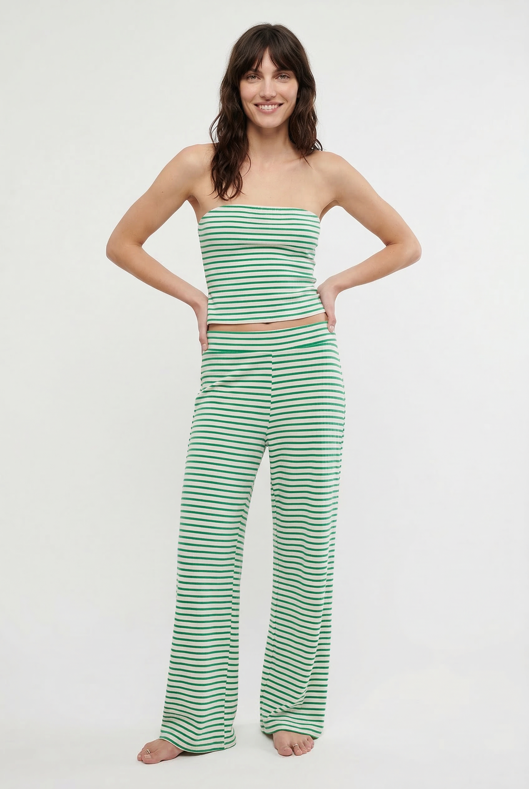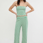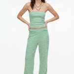 Laidback never looked this good—this striped two-piece set pairs a fitted bandeau with flowy wide-leg pants for an effortlessly put-together vibe. A day-to-night essential with just the right edge.