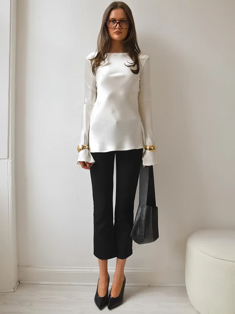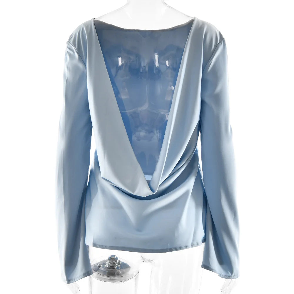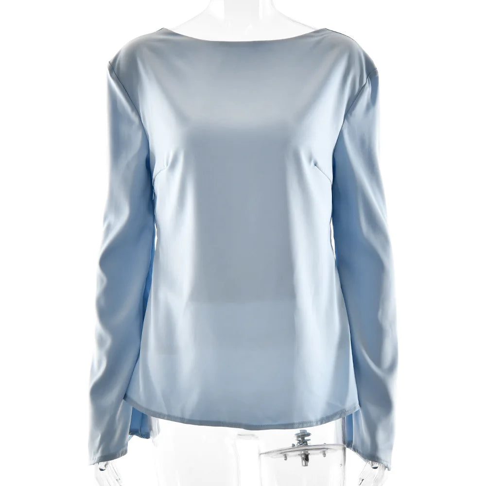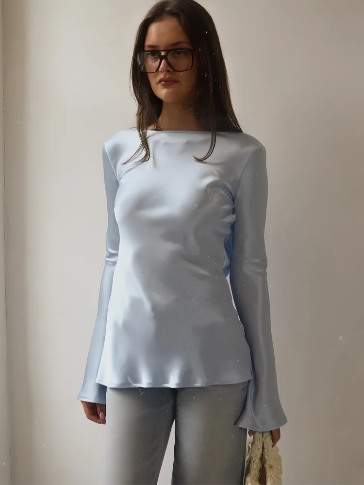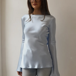 Elara Women’s Satin Long Sleeve Bell Cuff Top