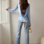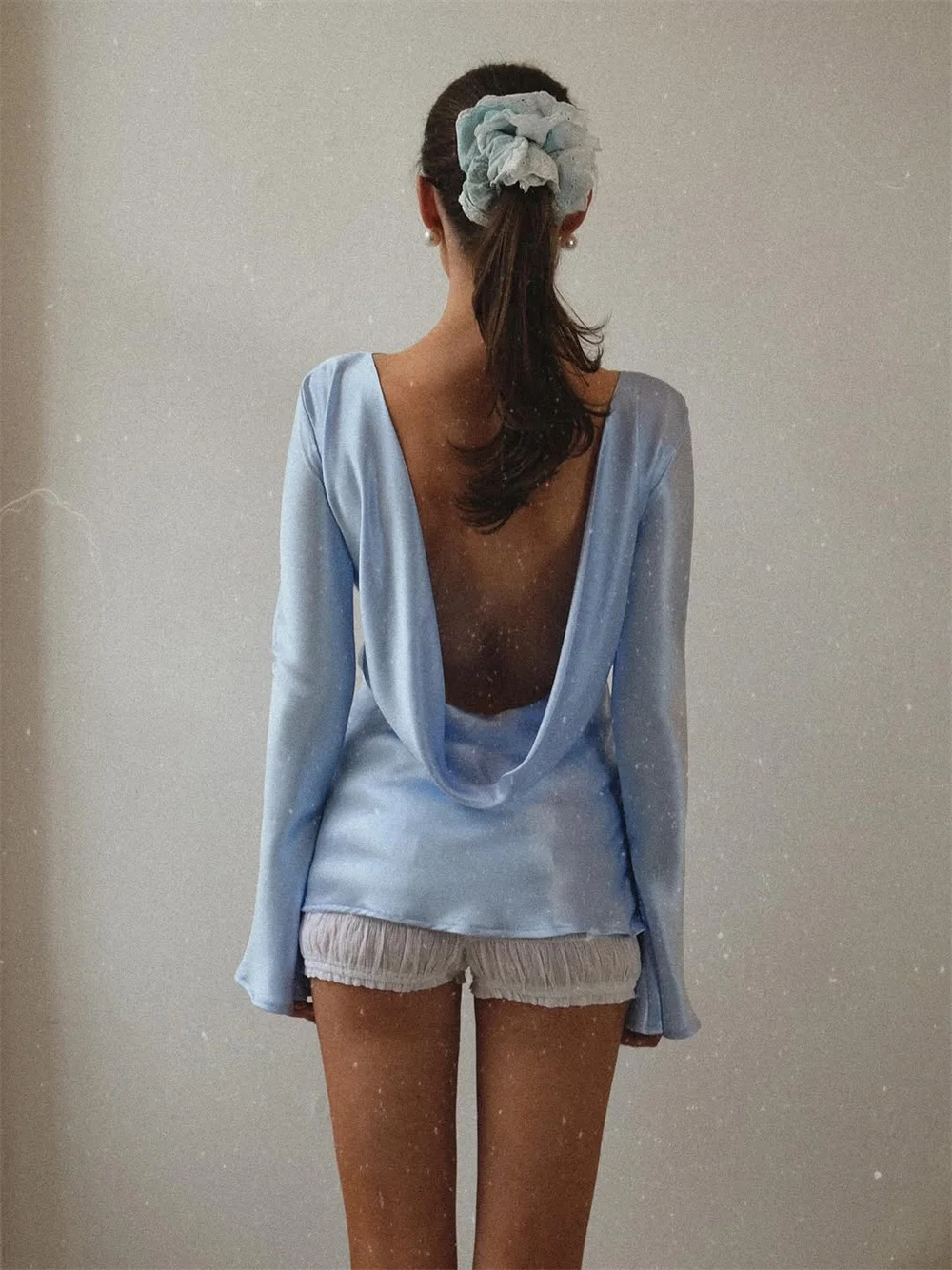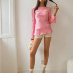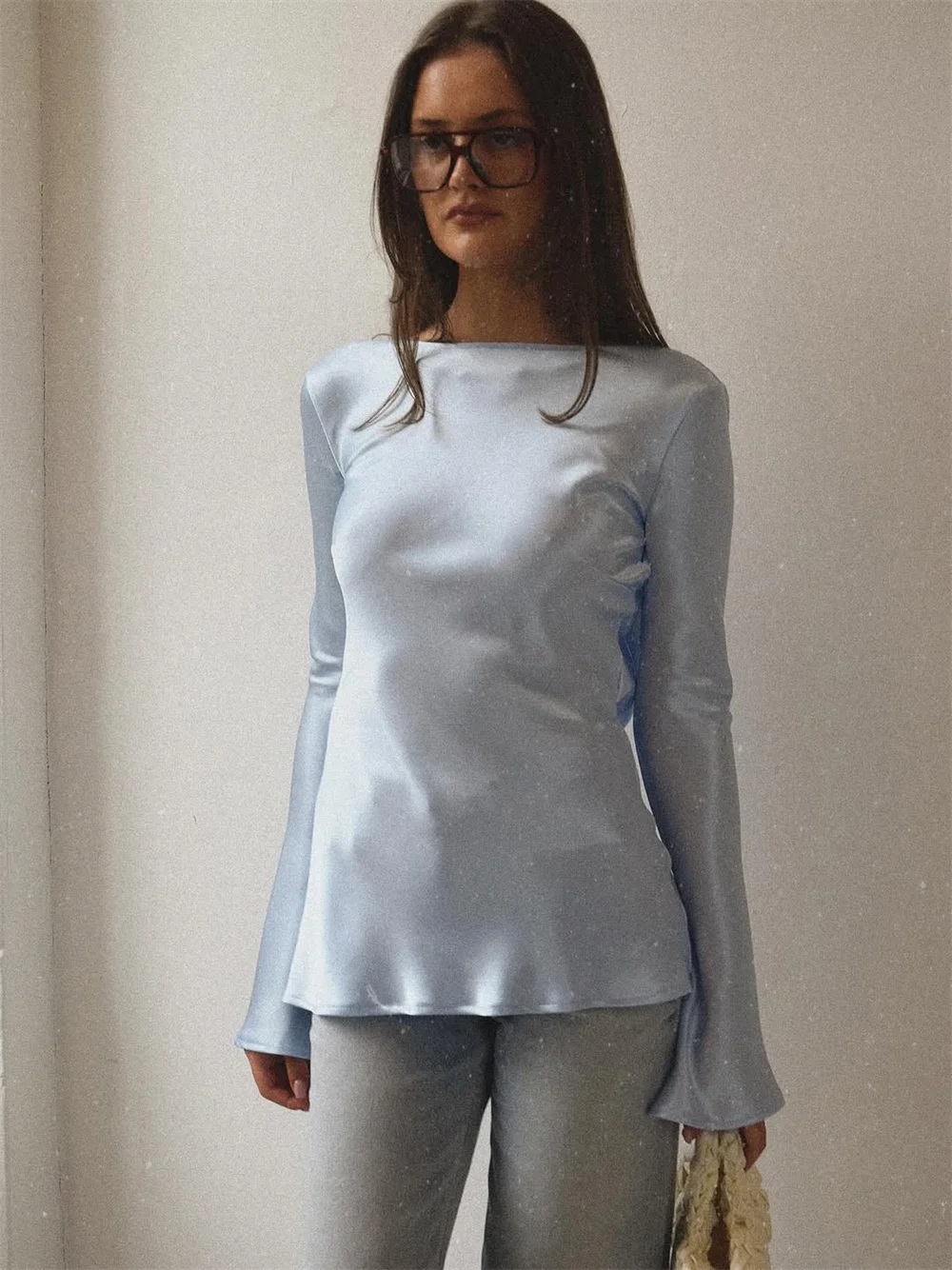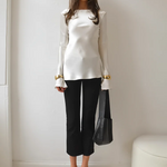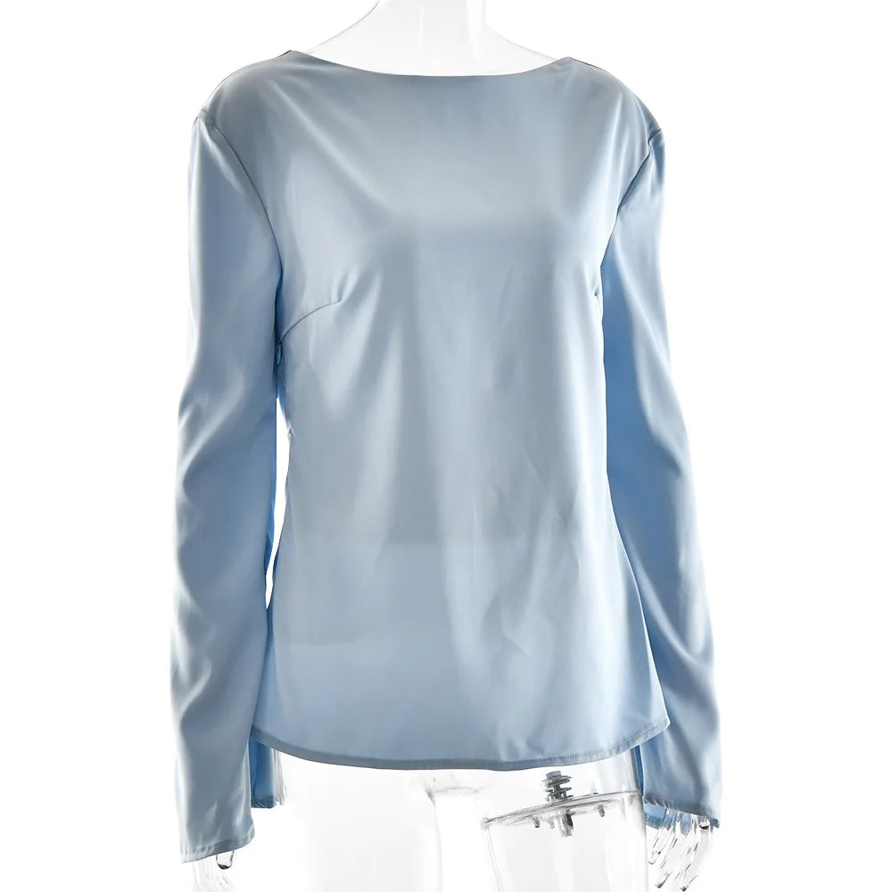 Elara Women’s Satin Long Sleeve Bell Cuff Top