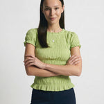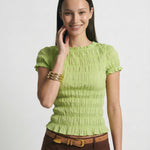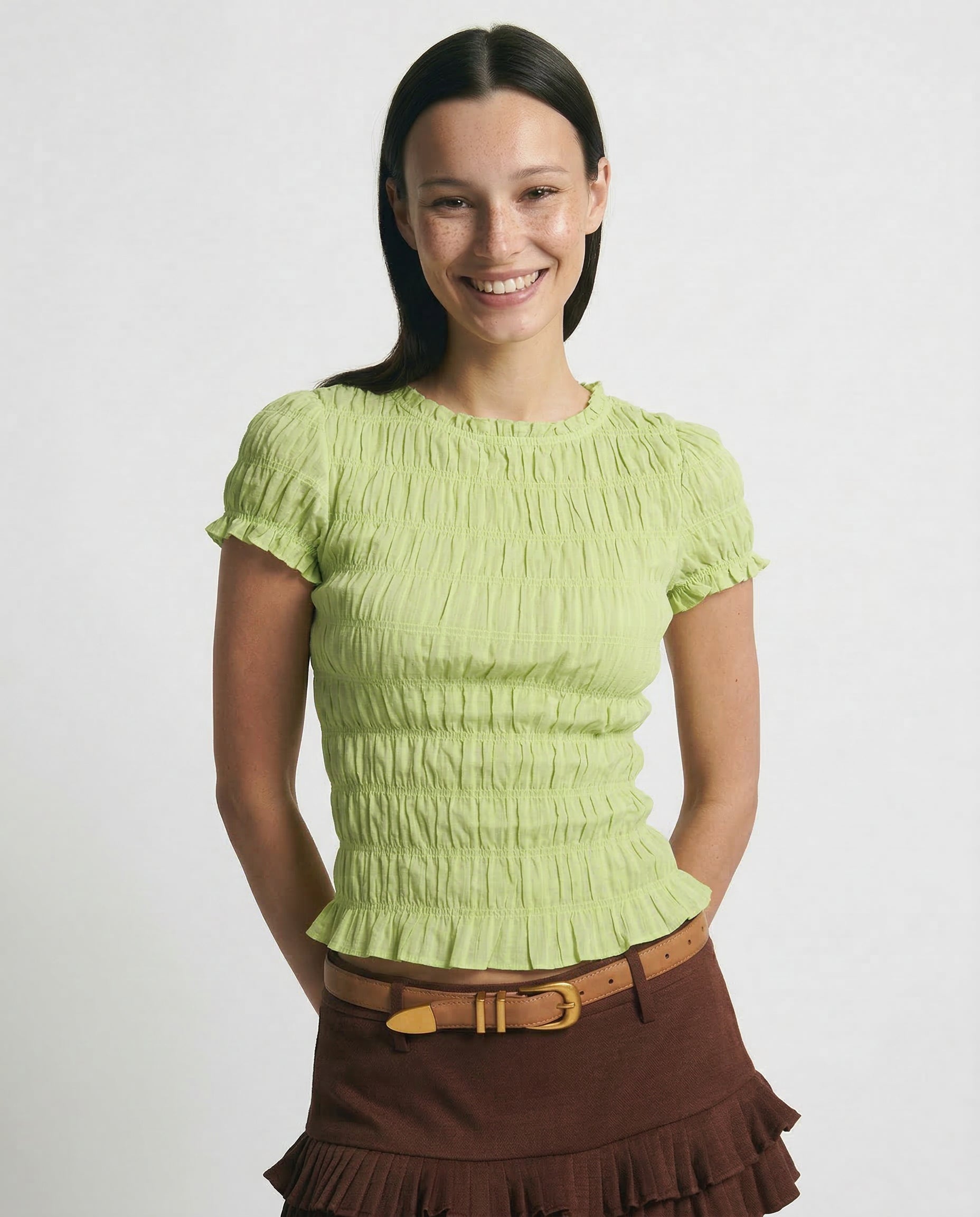 Built to hug and flatter, this top plays it sweet with soft ruffles while still giving you that fitted edge. It's the kind of piece that gets compliments before you even say hello.
