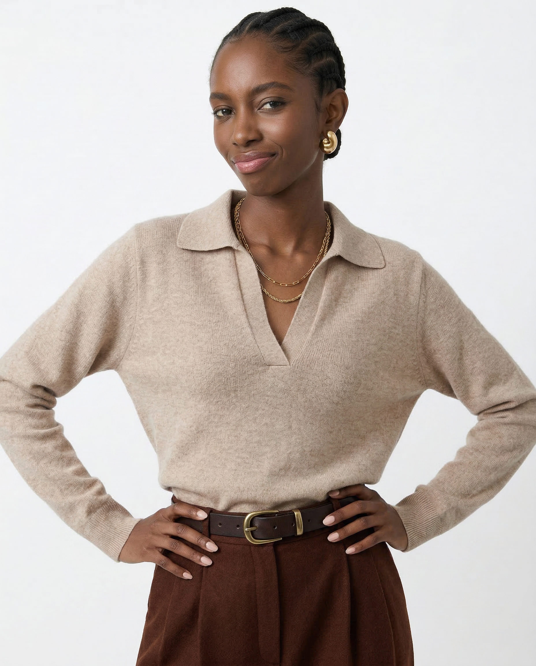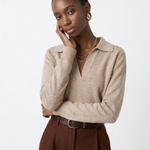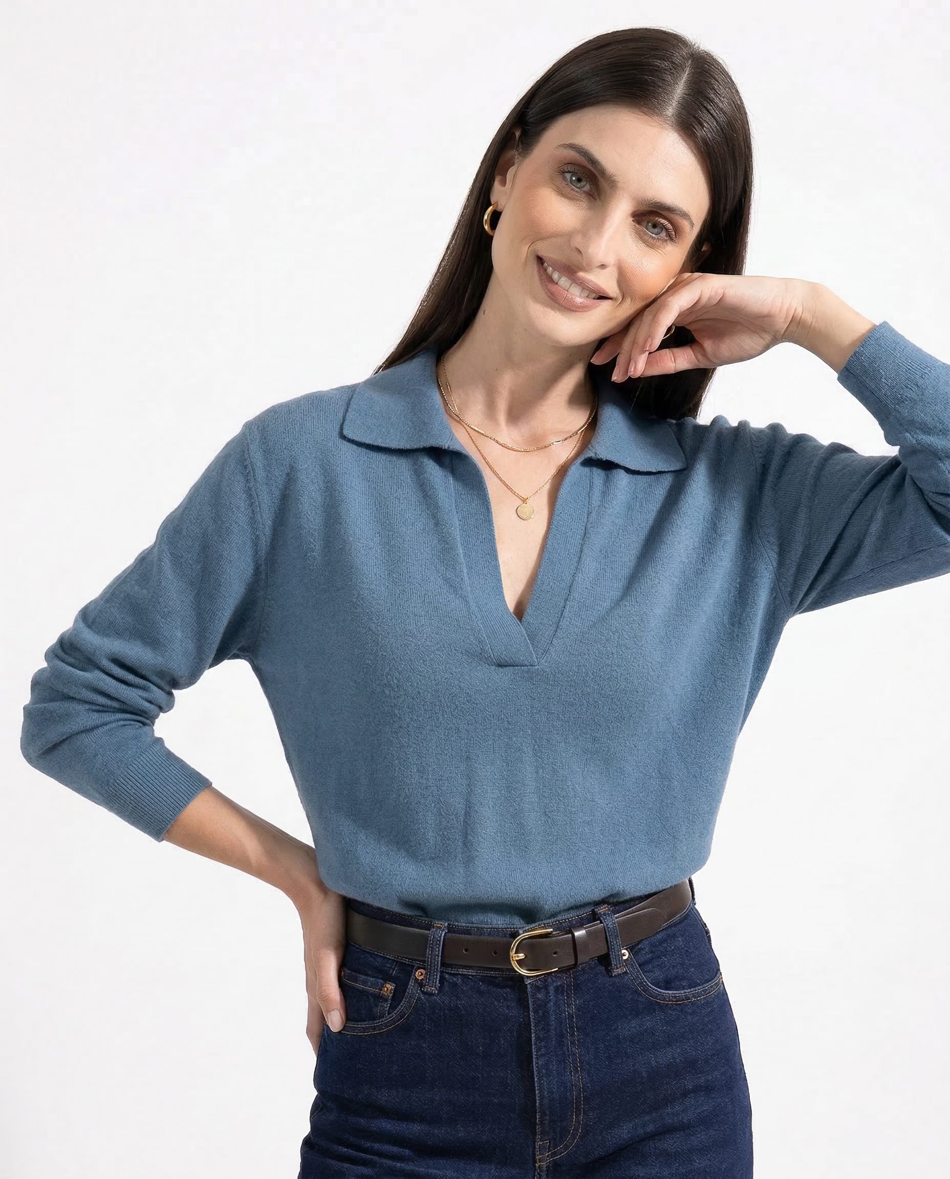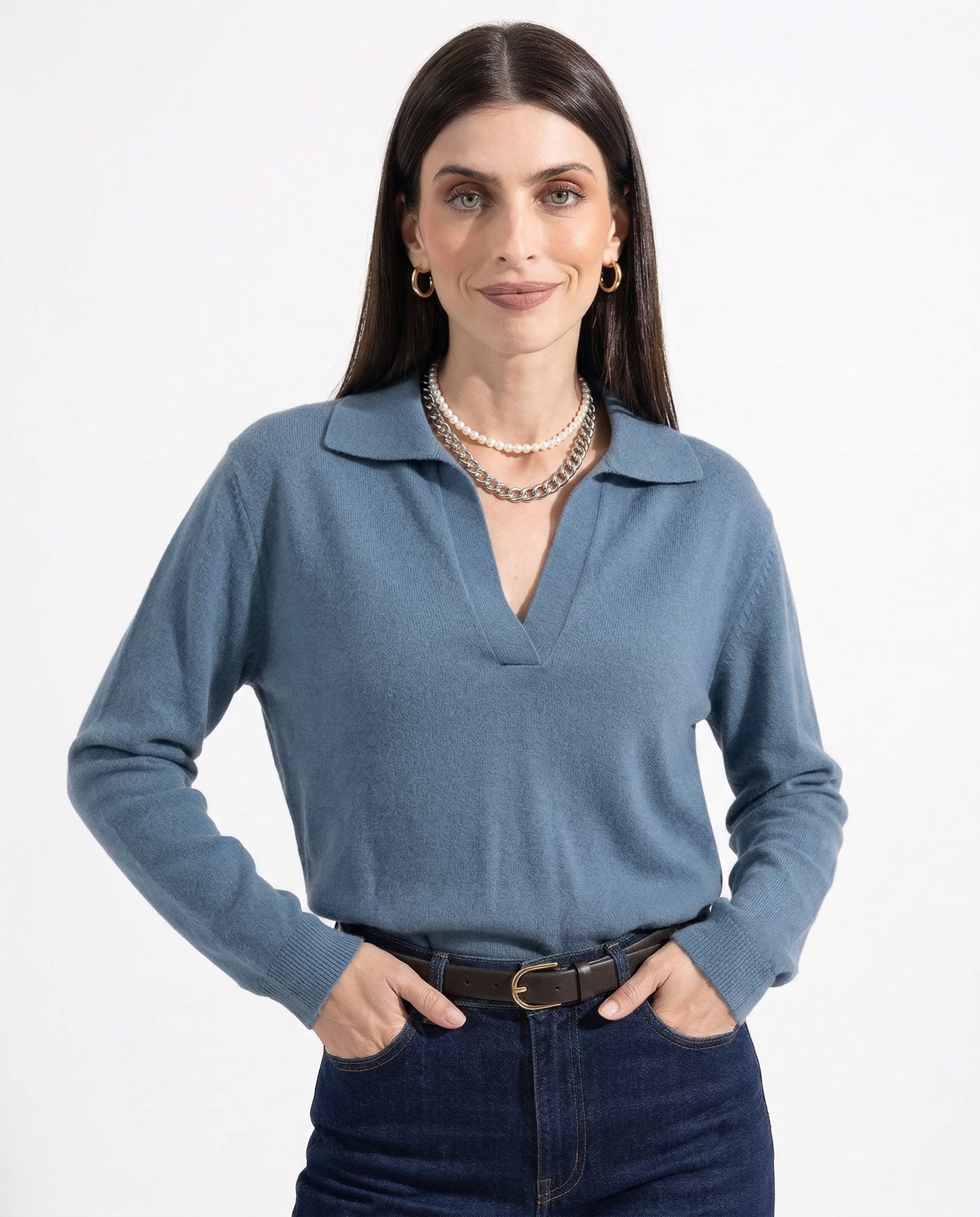 Own your day in effortless style with this loose-fit polo sweater. Soft, warm, and ultra-chic, it’s the perfect piece for those who love laid-back elegance with a bold edge.