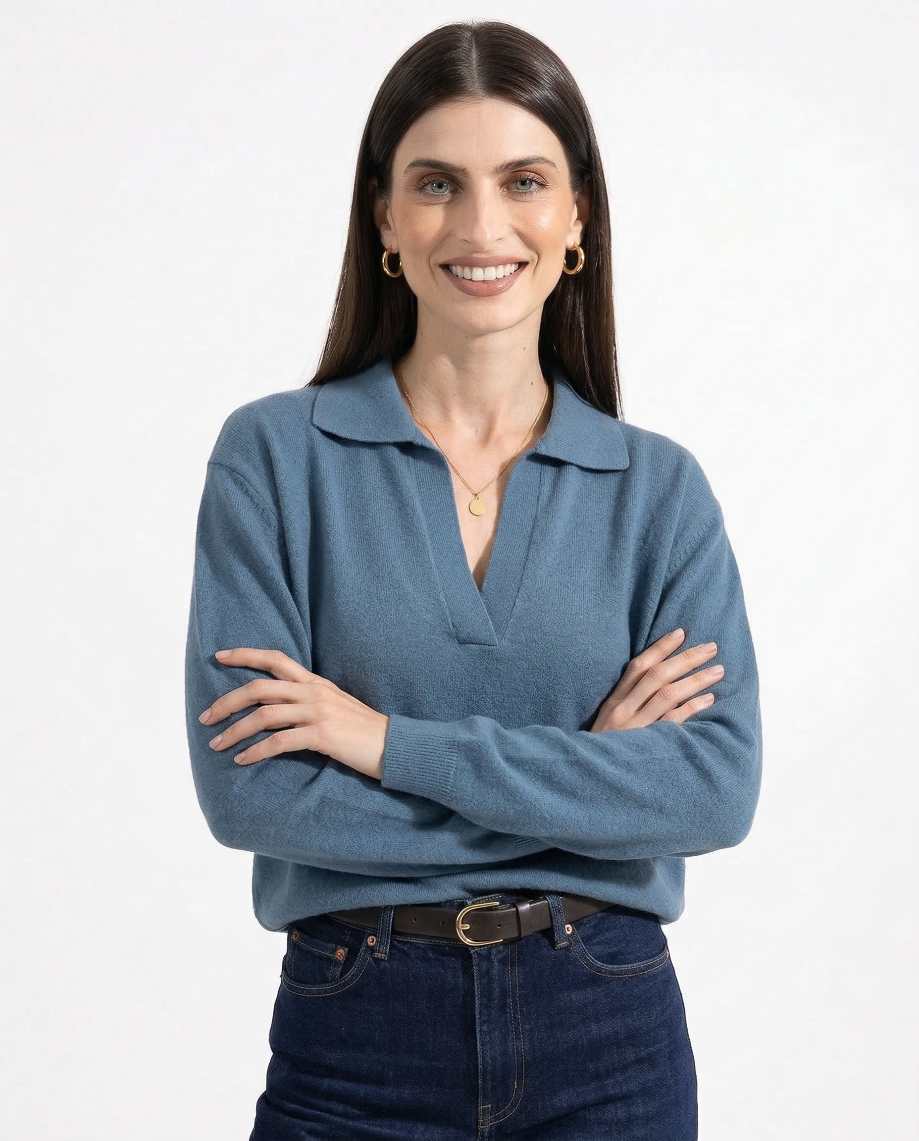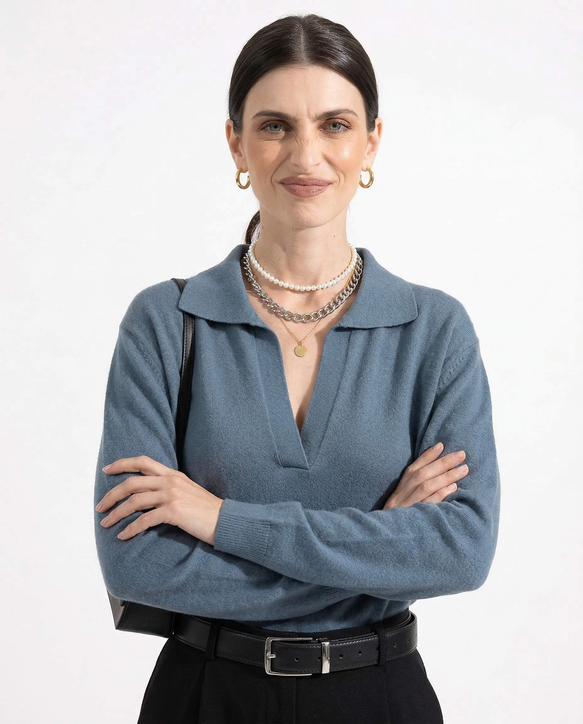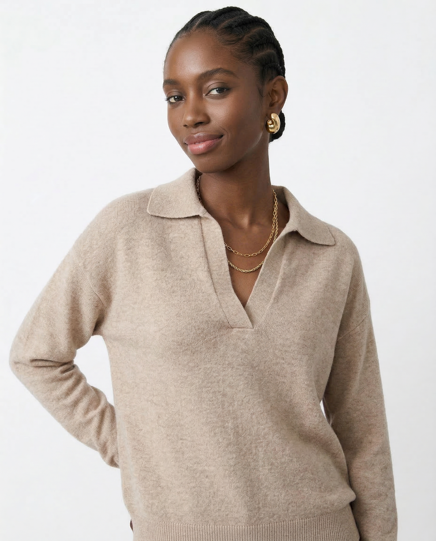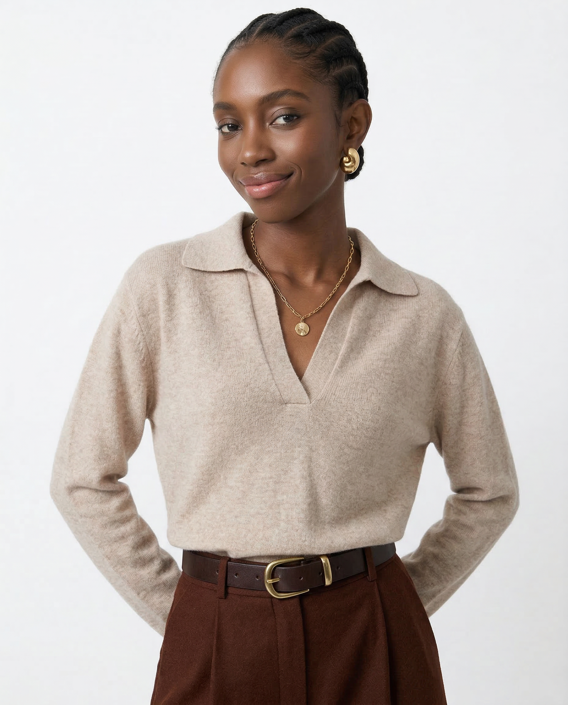 Own your day in effortless style with this loose-fit polo sweater. Soft, warm, and ultra-chic, it’s the perfect piece for those who love laid-back elegance with a bold edge.