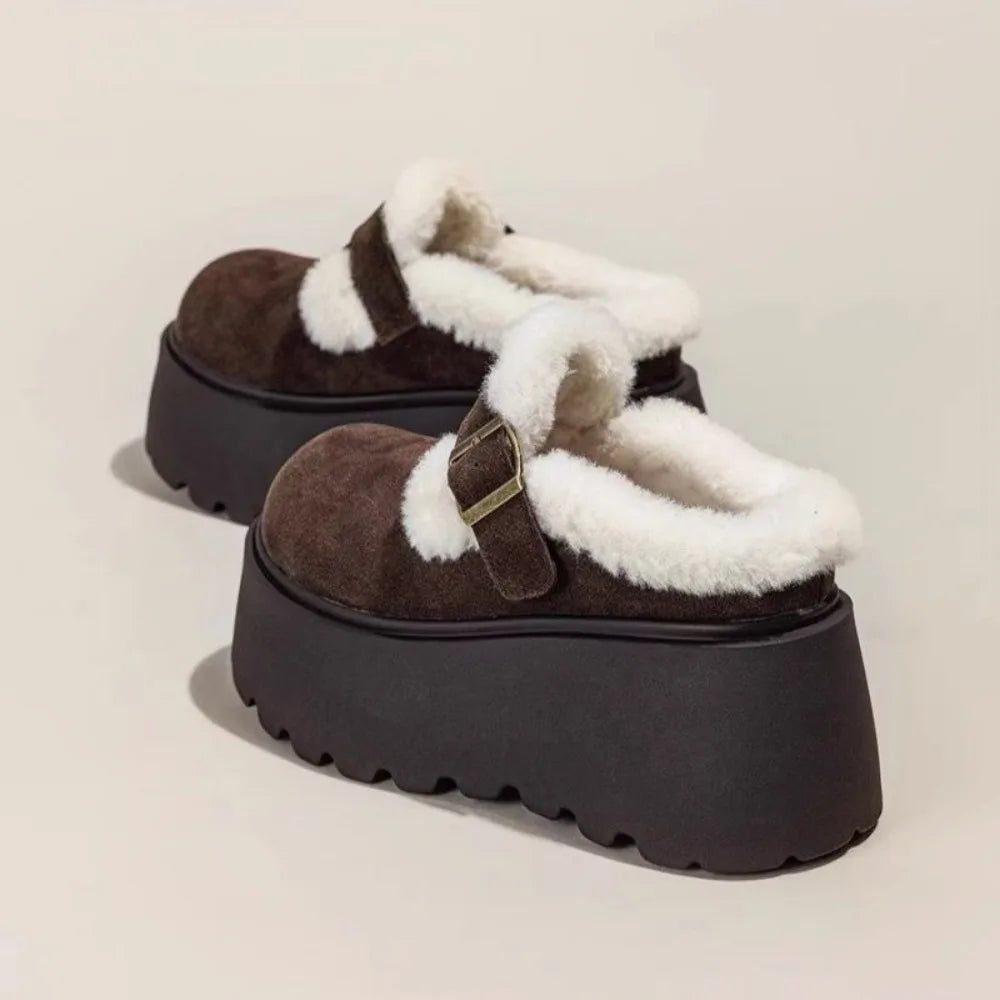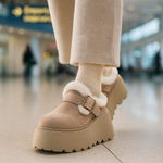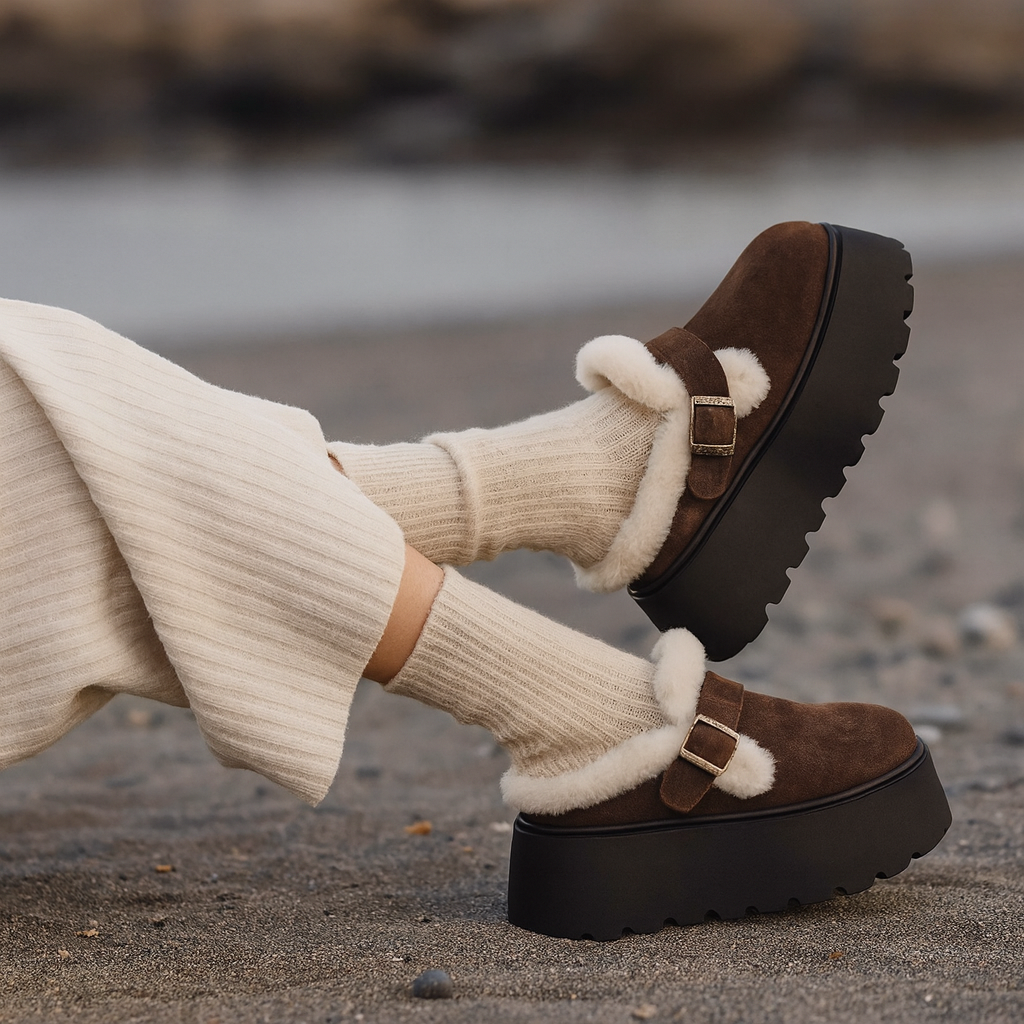Cozy meets statement — these suede clogs feature a plush shearling lining and a bold platform sole for modern height and comfort. Designed to carry you from indoors to out in effortless style.