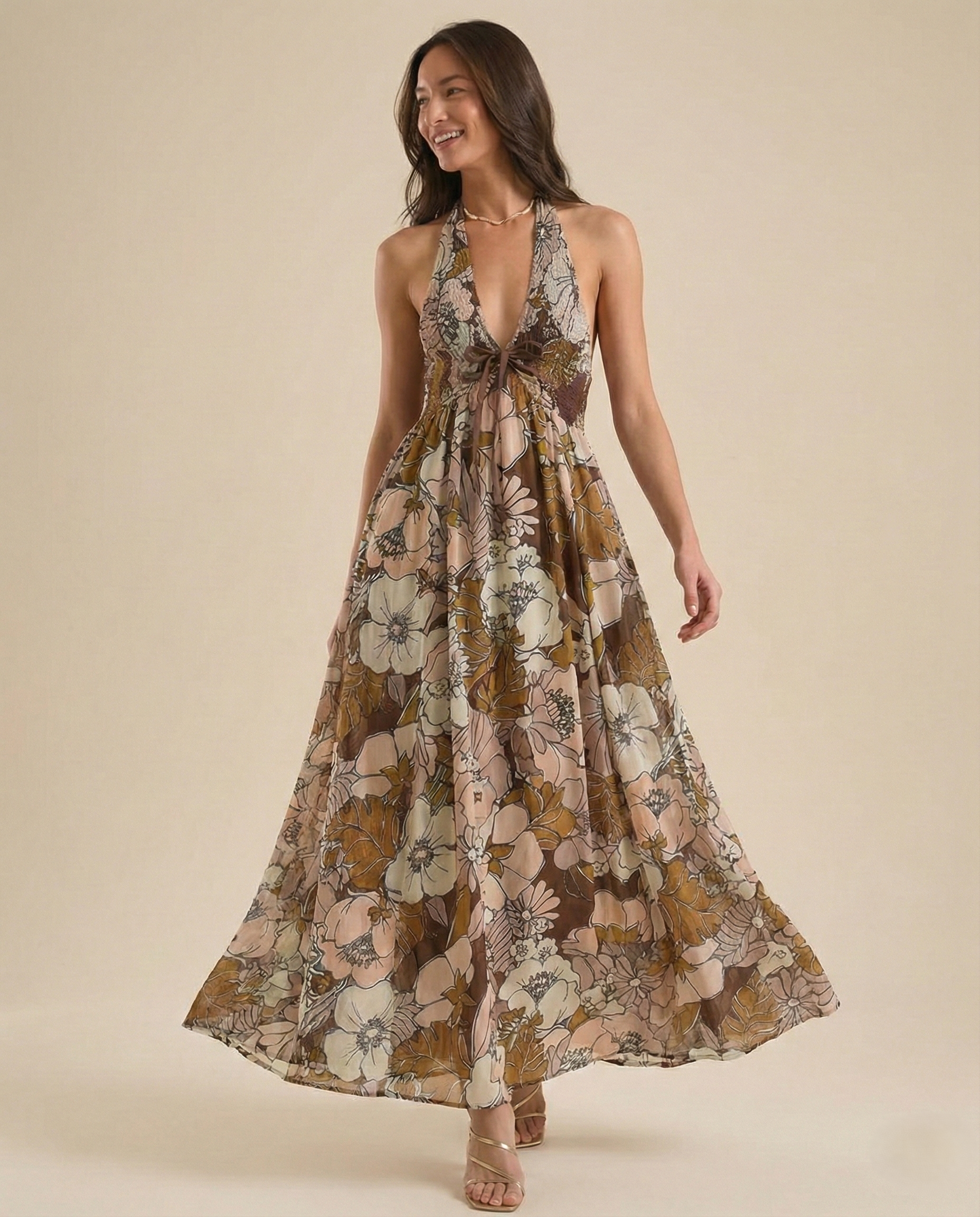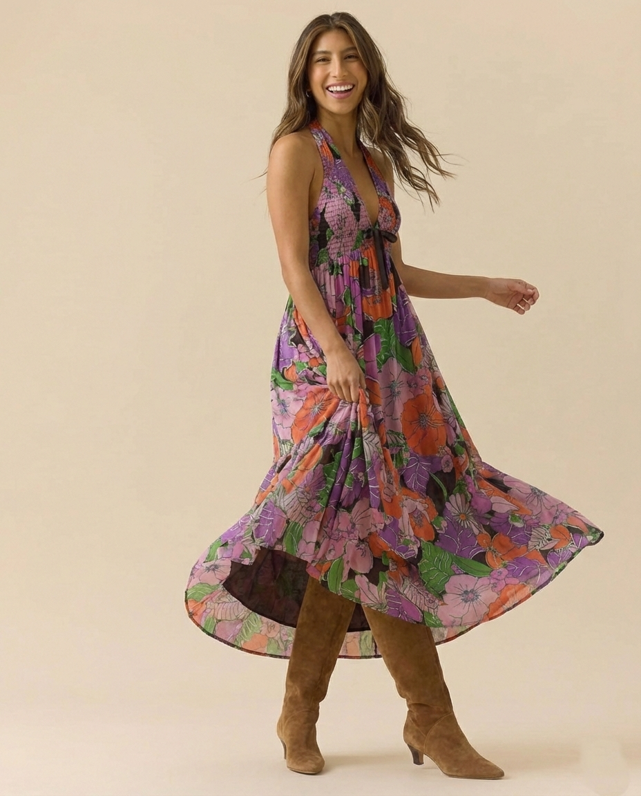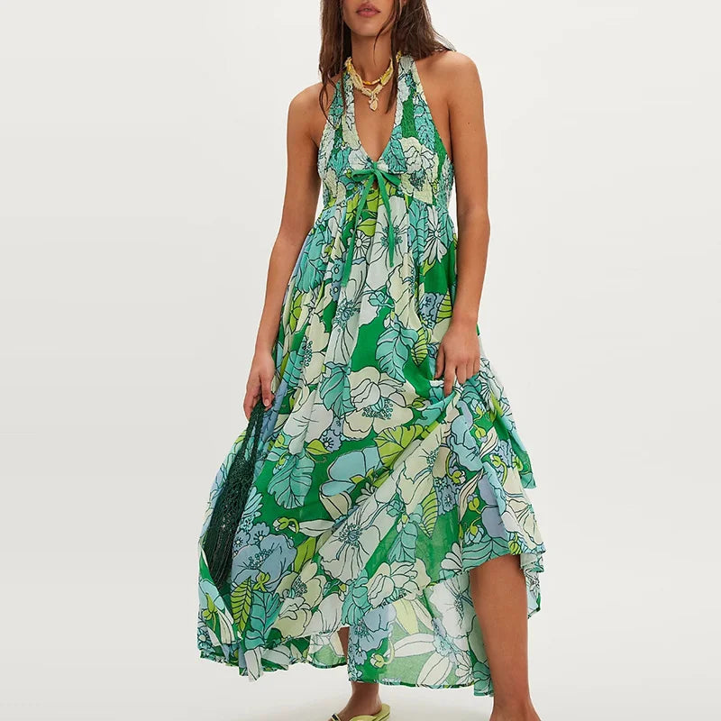 Women’s Floral Halter Maxi Beach Dress