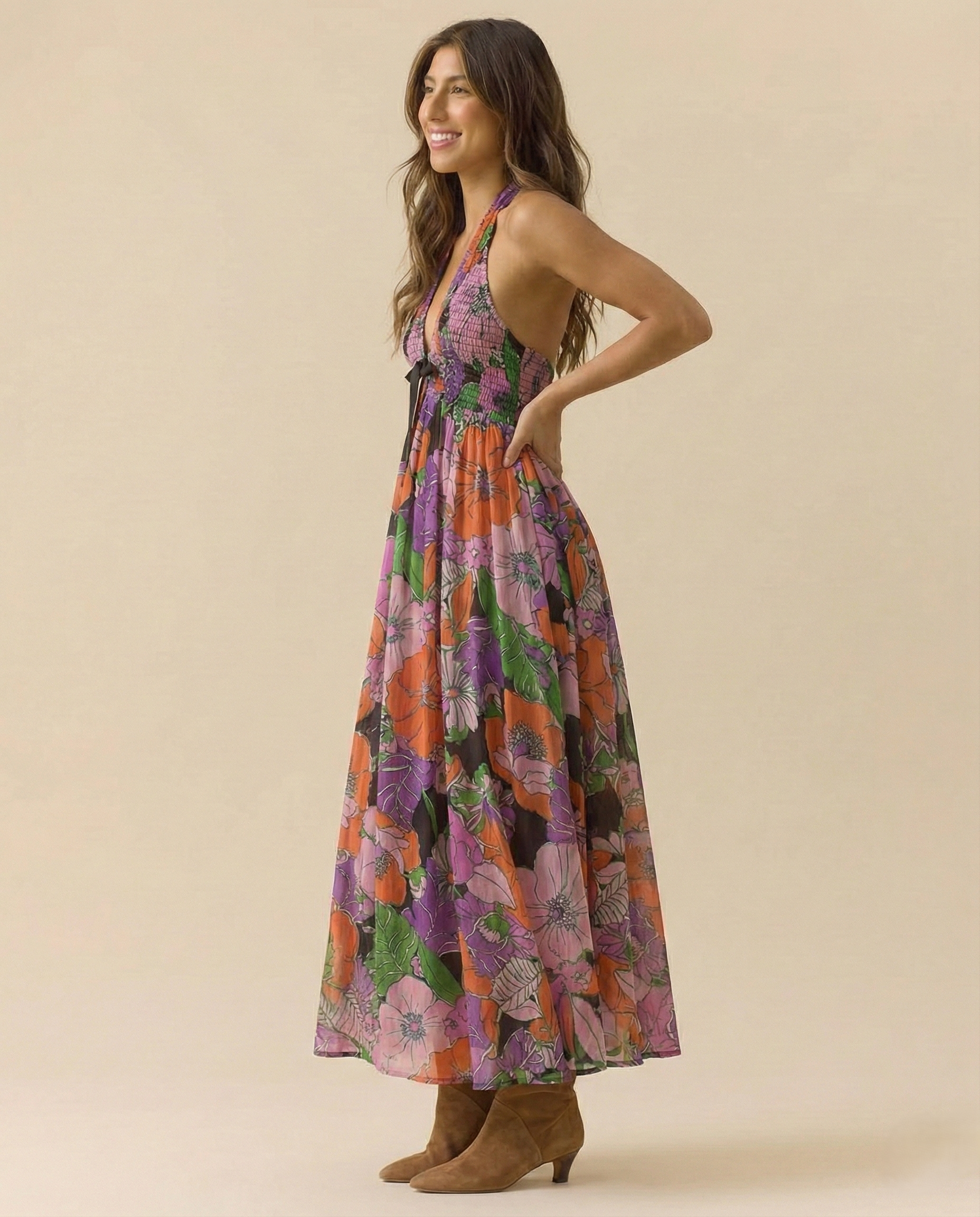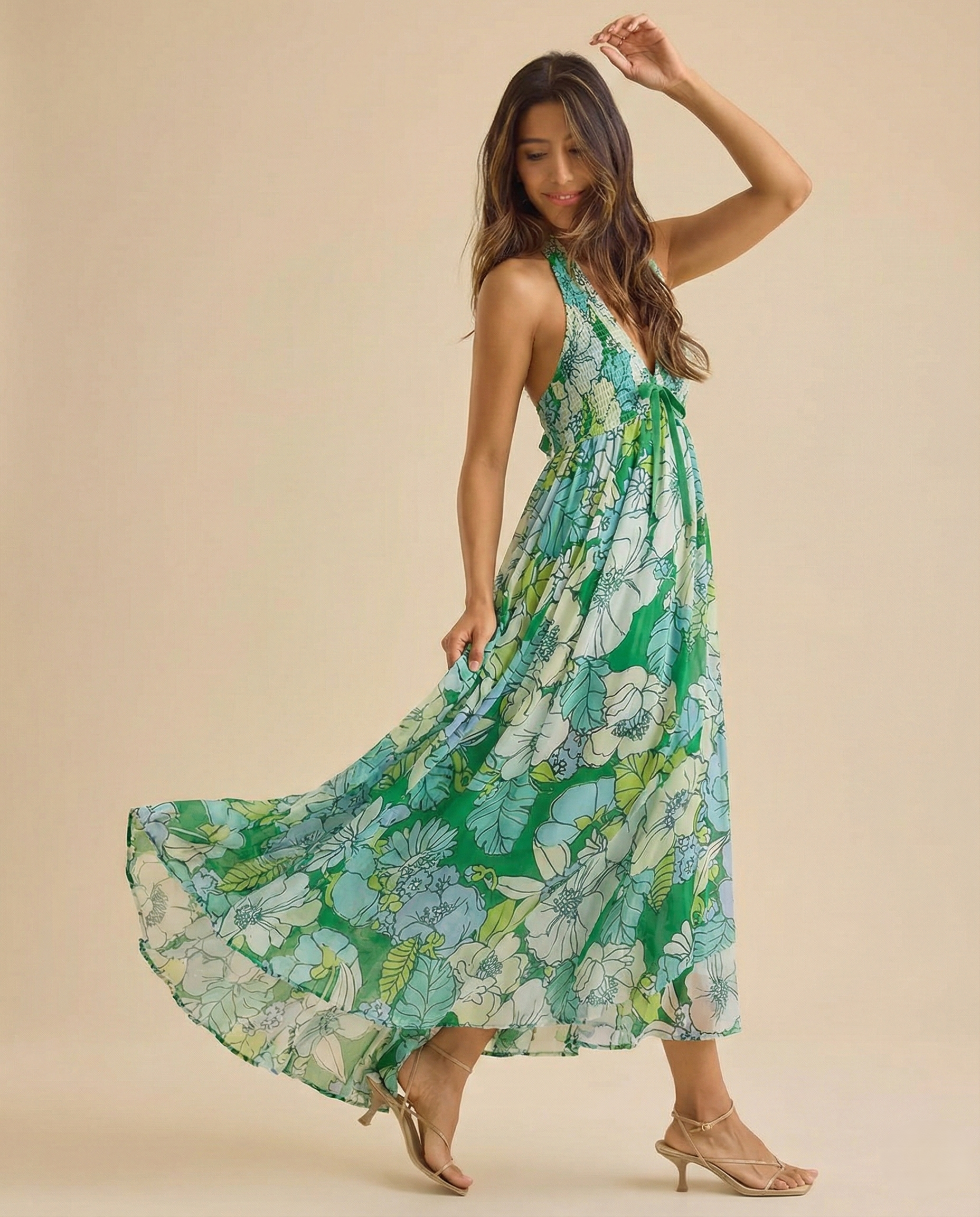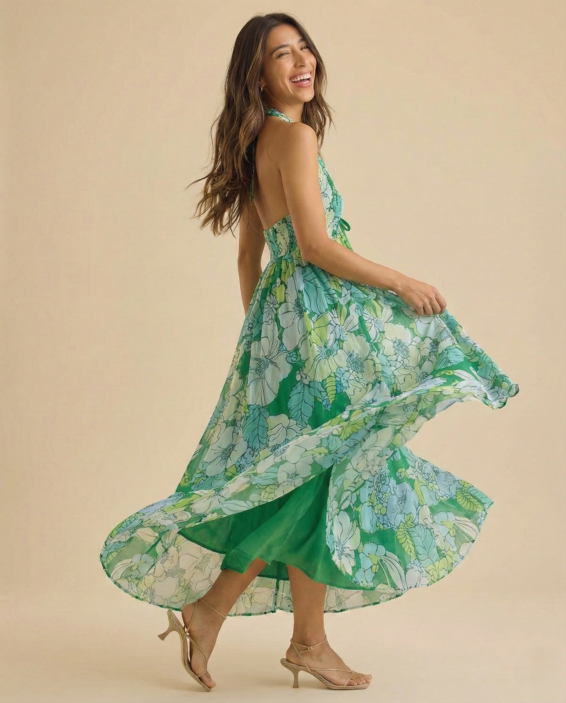 Made for movement and warm nights out. The halter neckline and open back create a confident, feminine feel, while the flowing skirt gives that effortless sway that looks good from every angle.