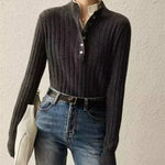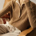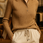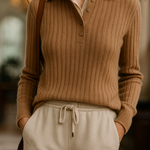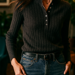 A finely knit pullover that pairs warmth with everyday ease. Its ribbed finish and buttoned collar create a look that’s both effortless and refined.