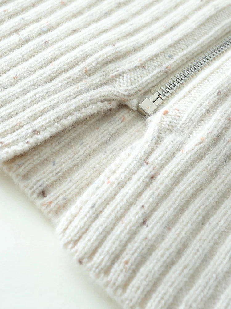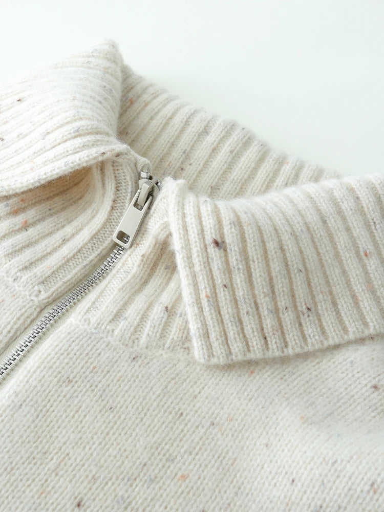 Designed with understated polish, this zip-up sweater blends ease with elegance. Lightweight yet warm, it’s a versatile piece you’ll reach for season after season.