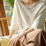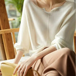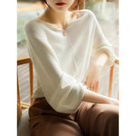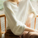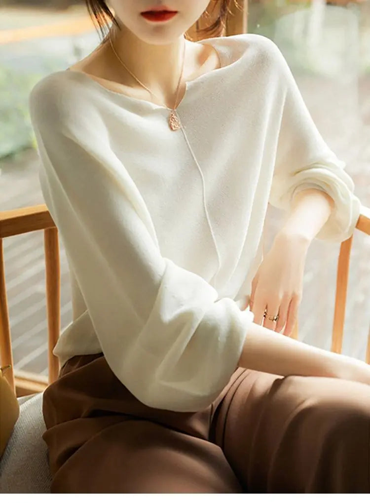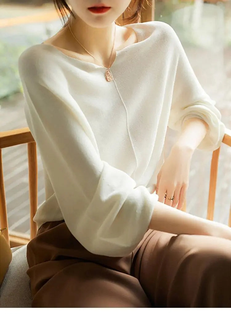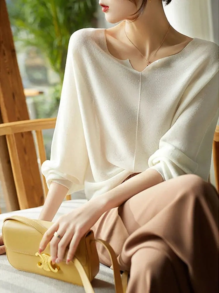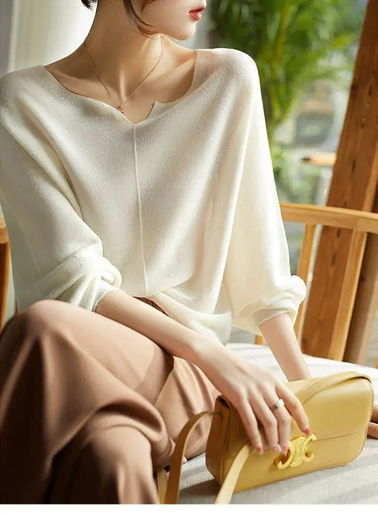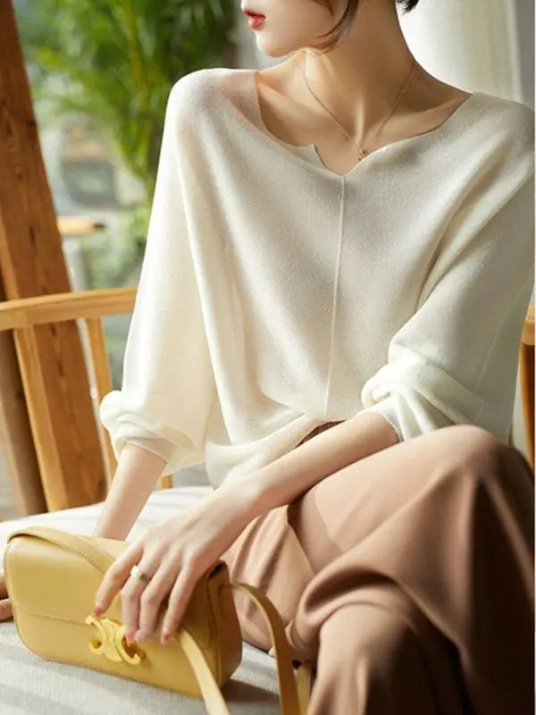 A graceful drape and refined neckline make this knit a subtle statement for both work and evenings out. Its flowing sleeves and soft finish give it a polished yet effortless charm.