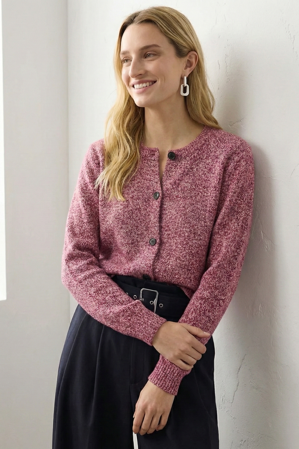Clean, confident, and quietly refined, this pure wool cardigan is made for everyday layering without the fuss. The relaxed cut and soft structure give it an easy drape that works just as well buttoned up as worn open.