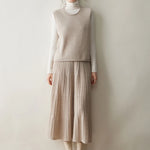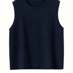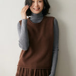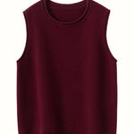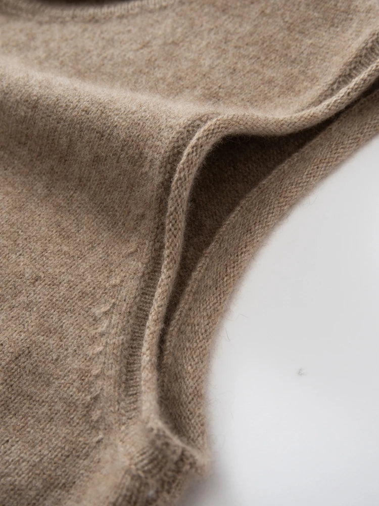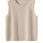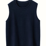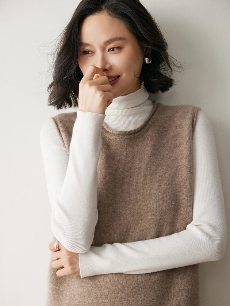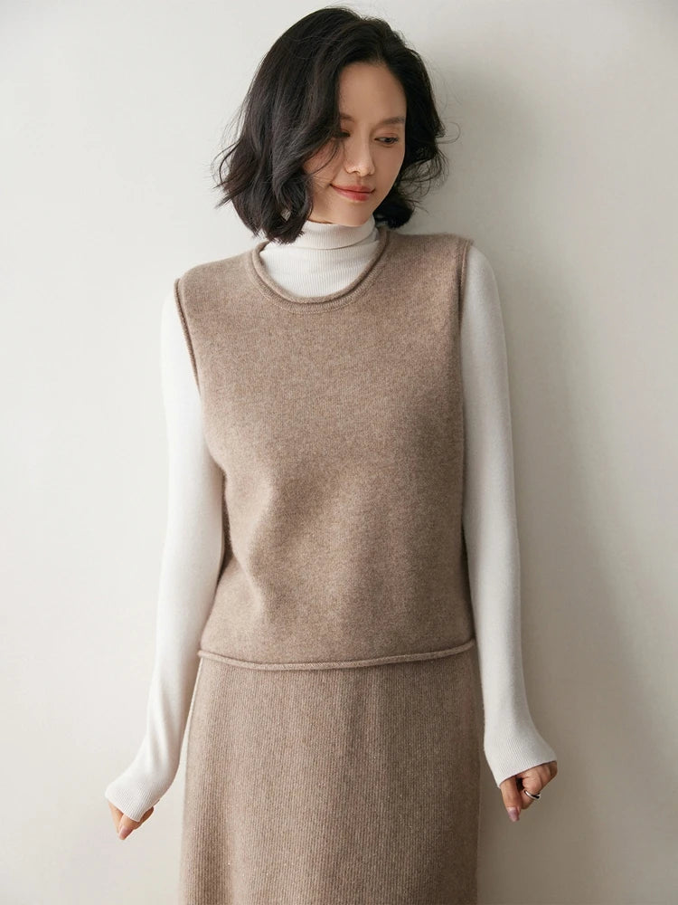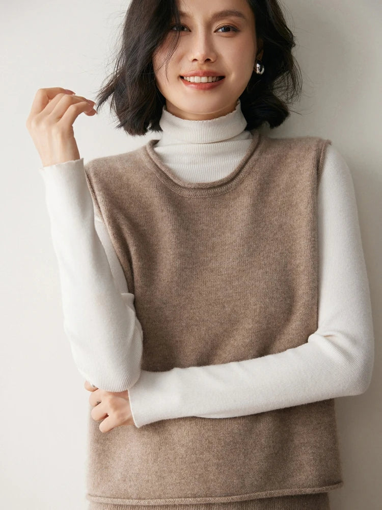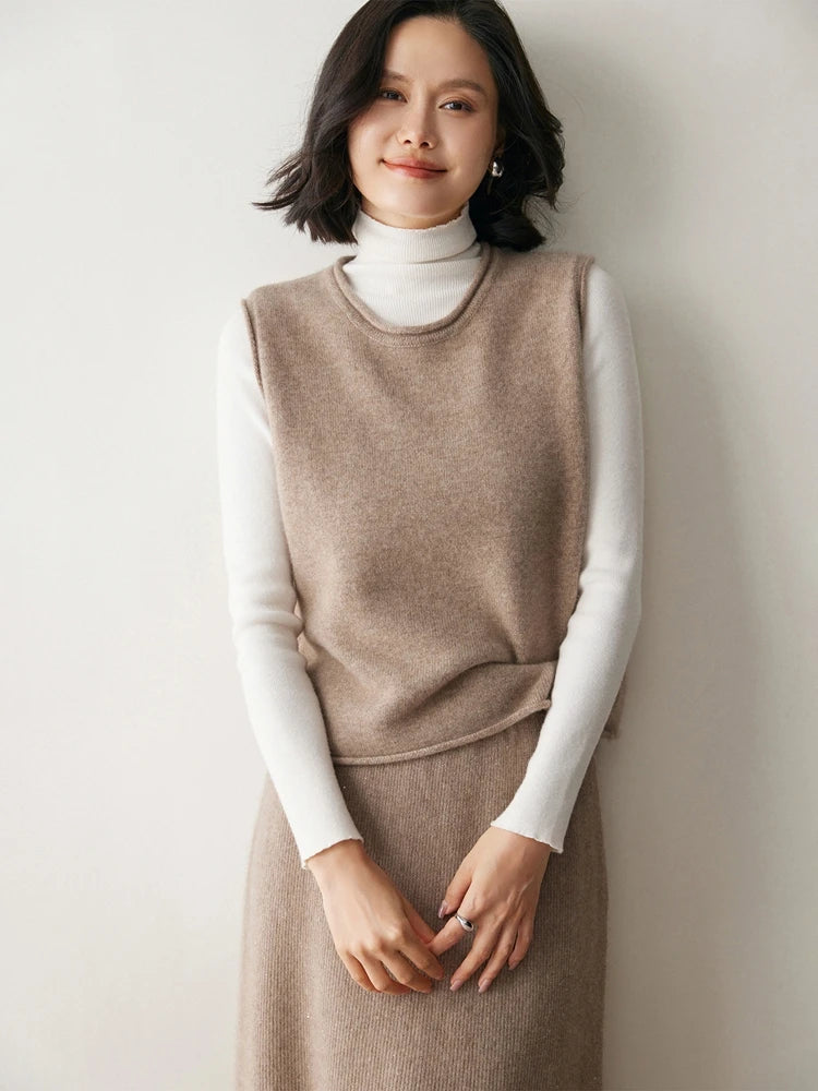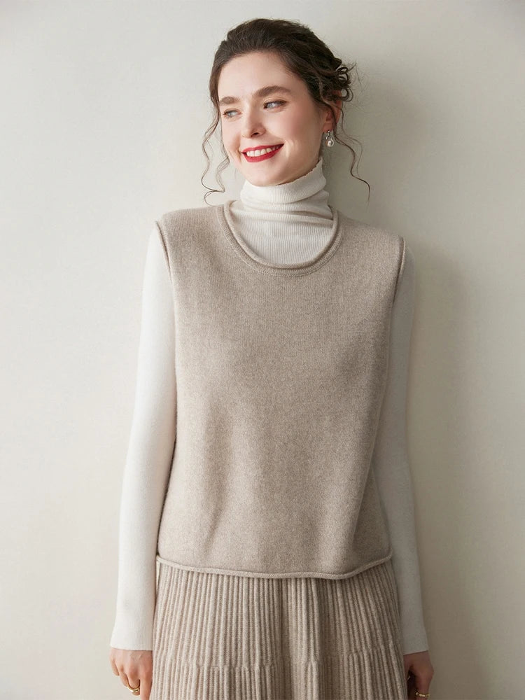 A refined sleeveless layer crafted from pure cashmere, this vest offers both warmth and versatility. Its clean lines and curled hem make it a staple for effortless autumn and winter dressing.