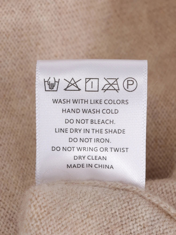 For 100% Cashmere Clothing; avoid washers and dryers to preserve the piece.