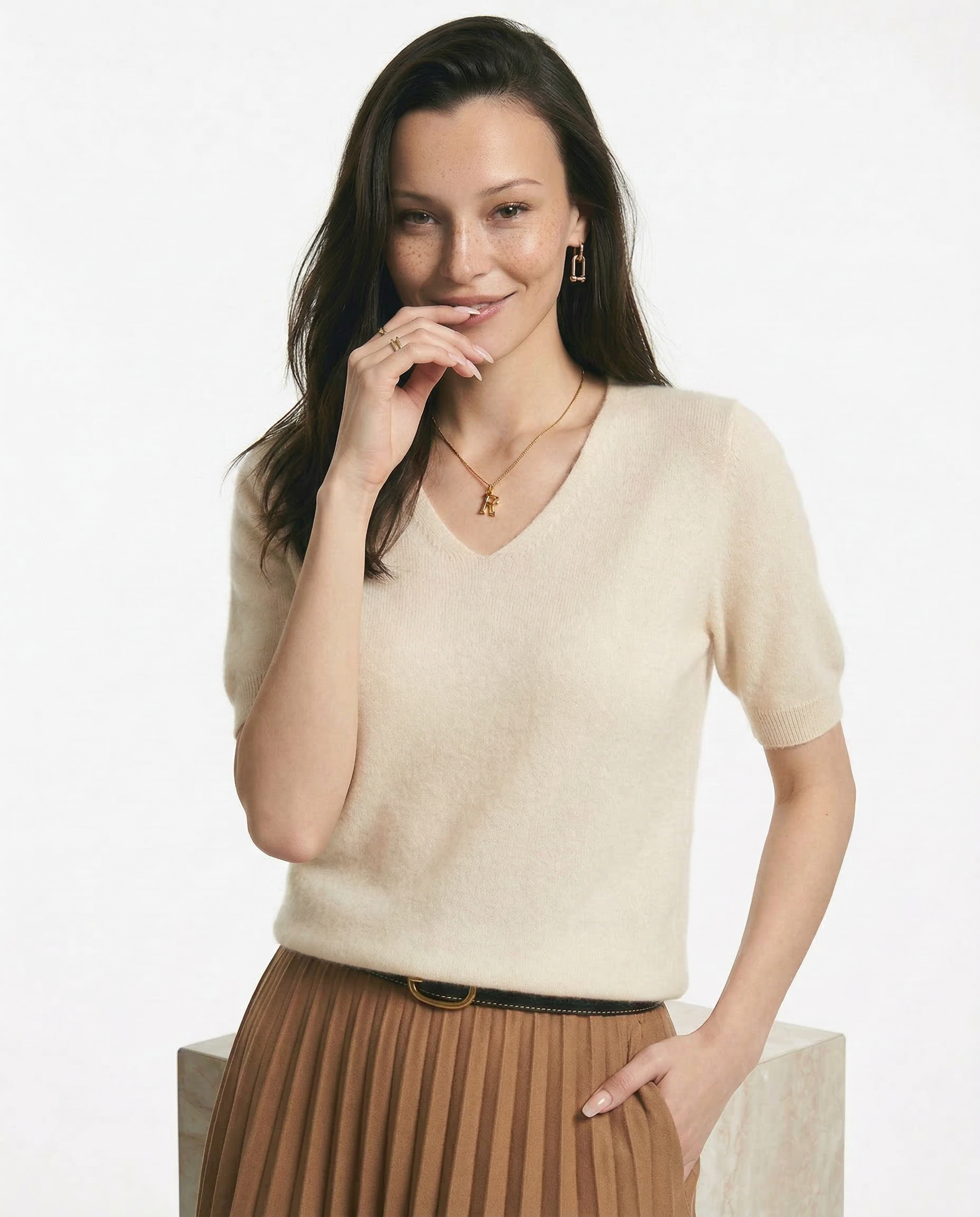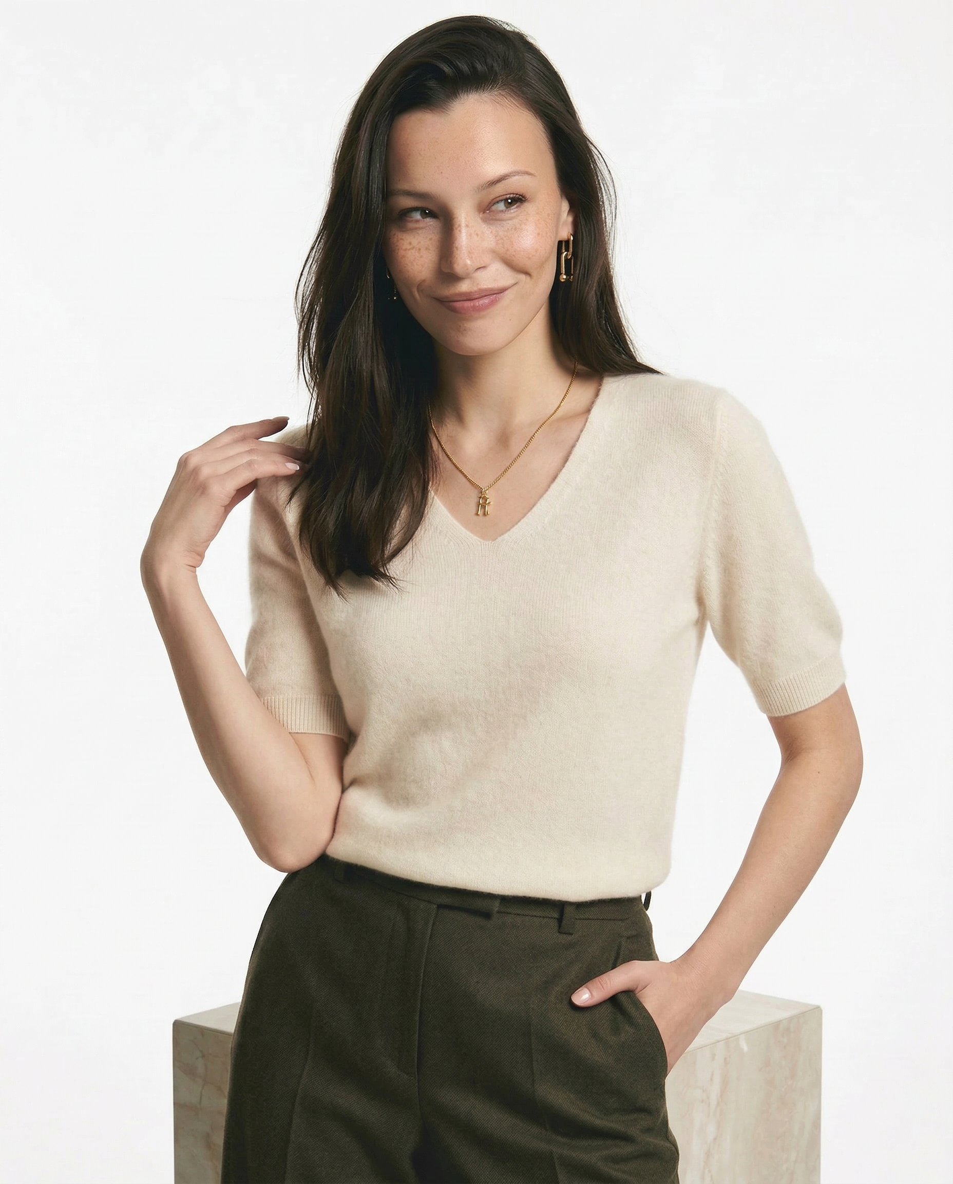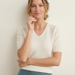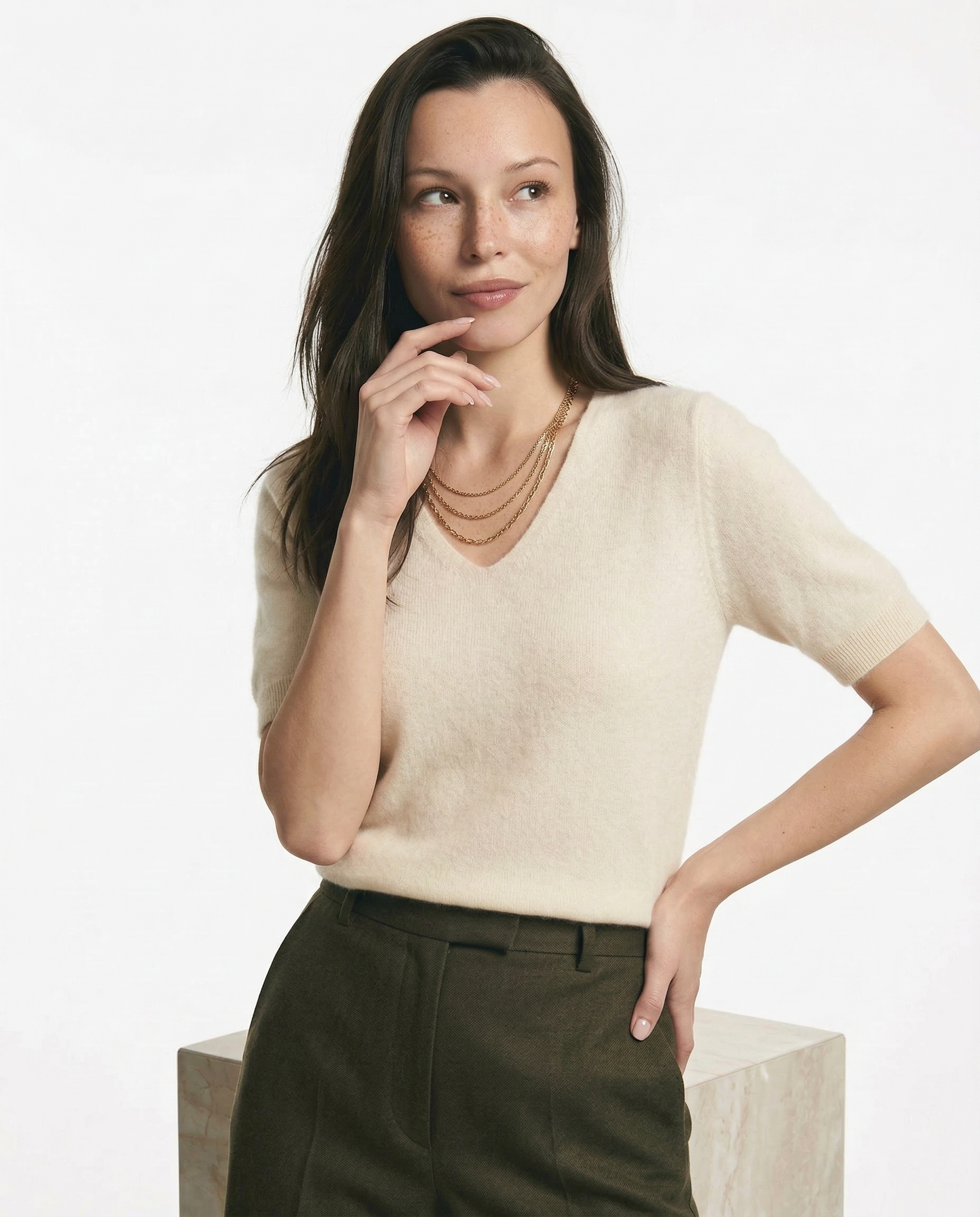Embrace the season with timeless warmth and elegance. This V-neck cotton wool shirt offers unmatched comfort for the discerning woman.