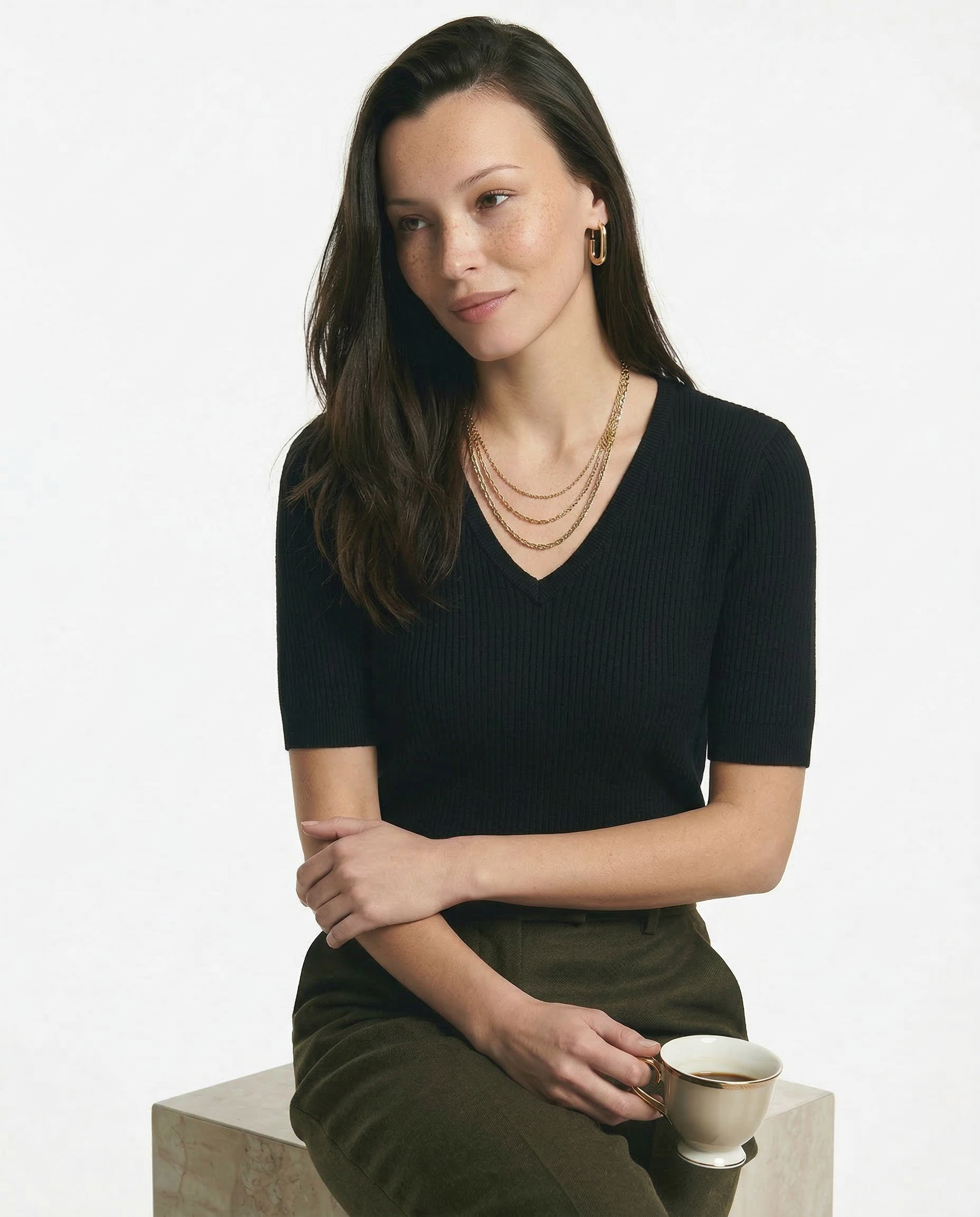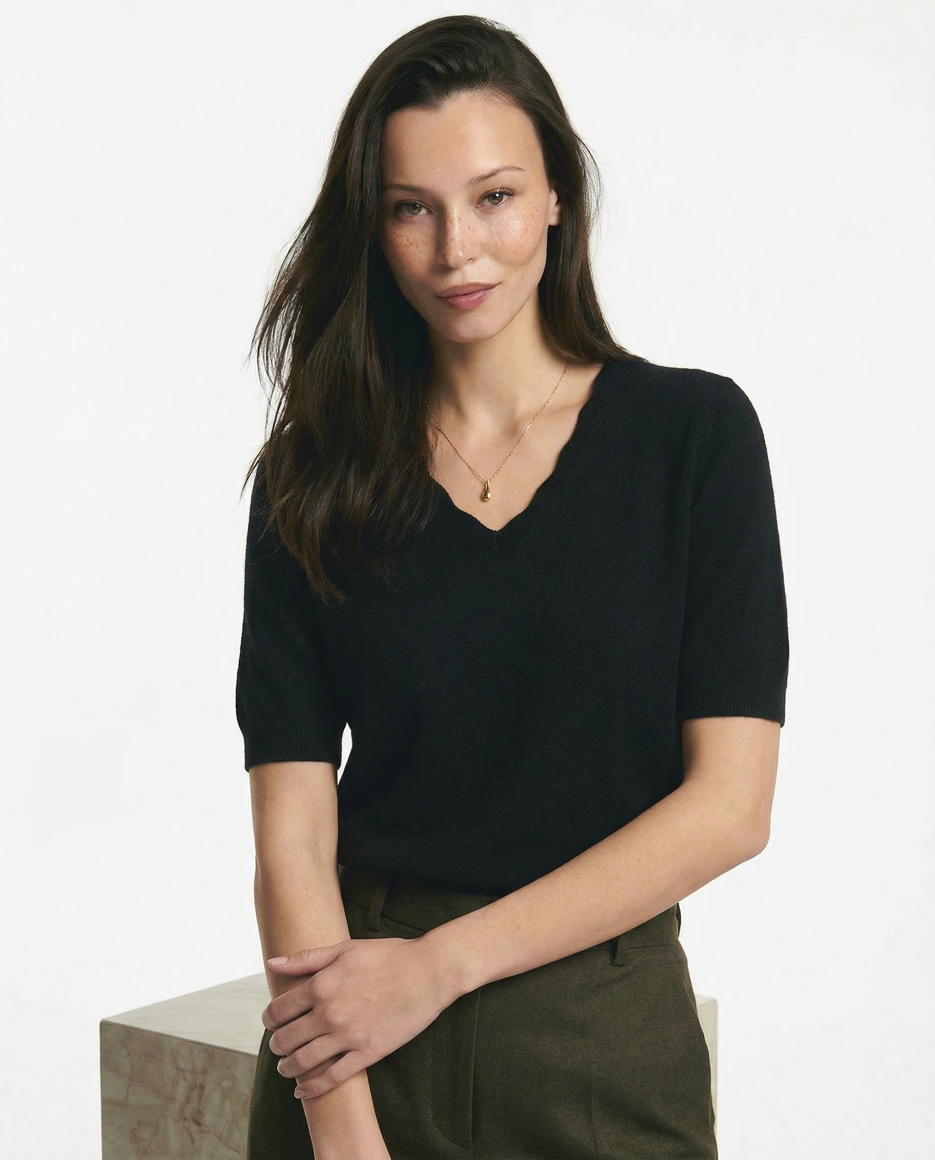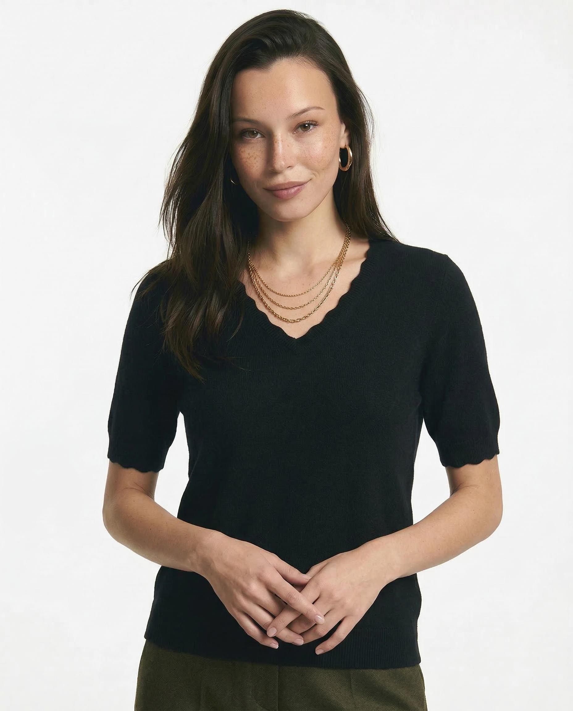 Embrace the season with timeless warmth and elegance. This V-neck cotton wool shirt offers unmatched comfort for the discerning woman.