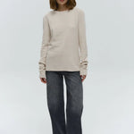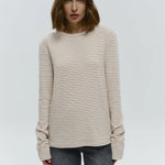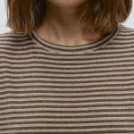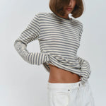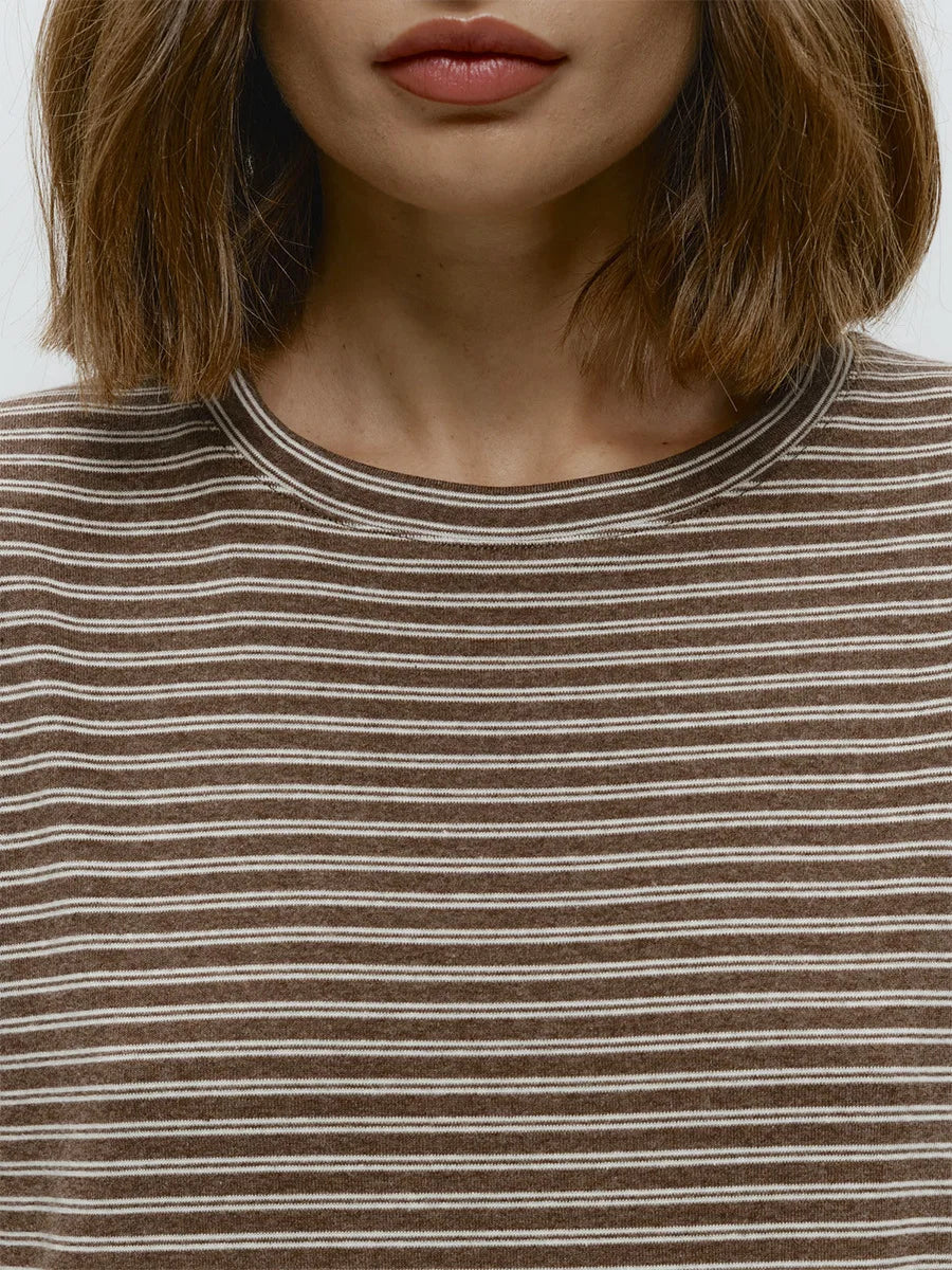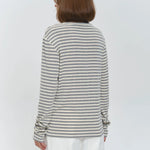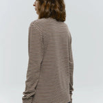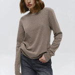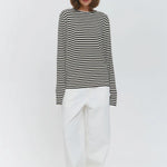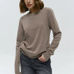 Quietly flattering and endlessly wearable. The fine stripe pattern and soft stretch knit give this long sleeve a relaxed drape that feels effortless with denim, trousers, or layered under jackets.