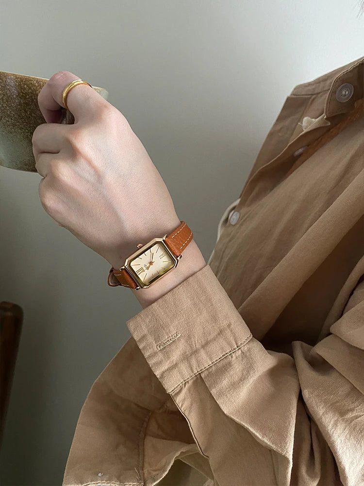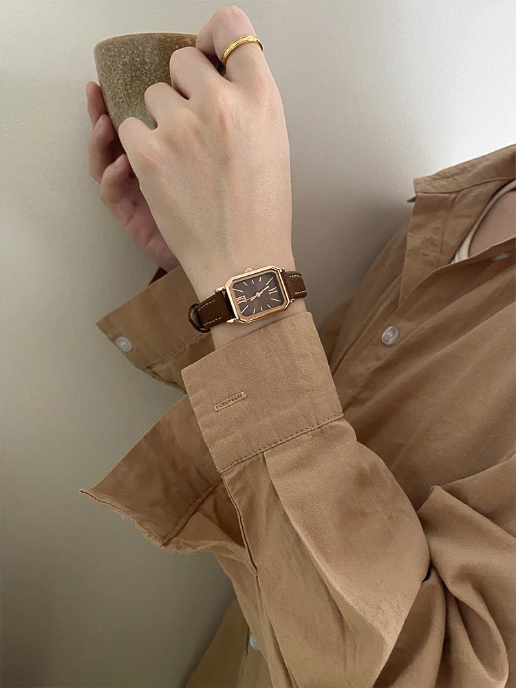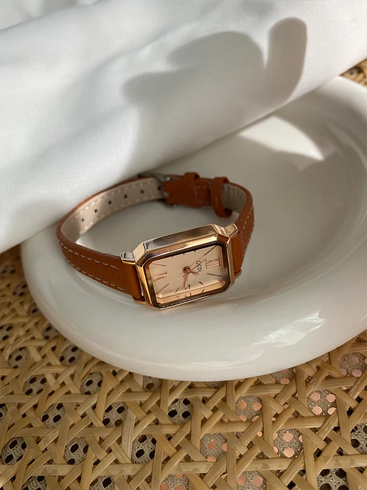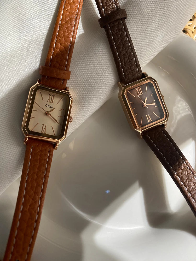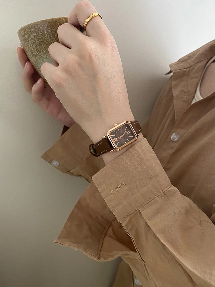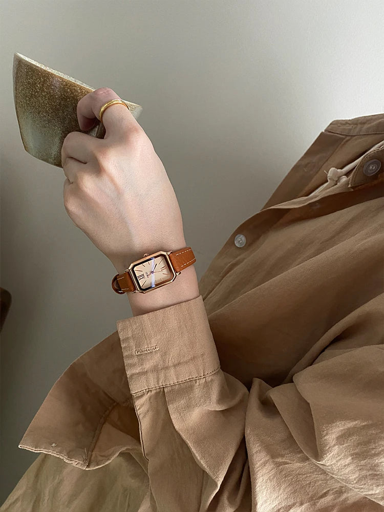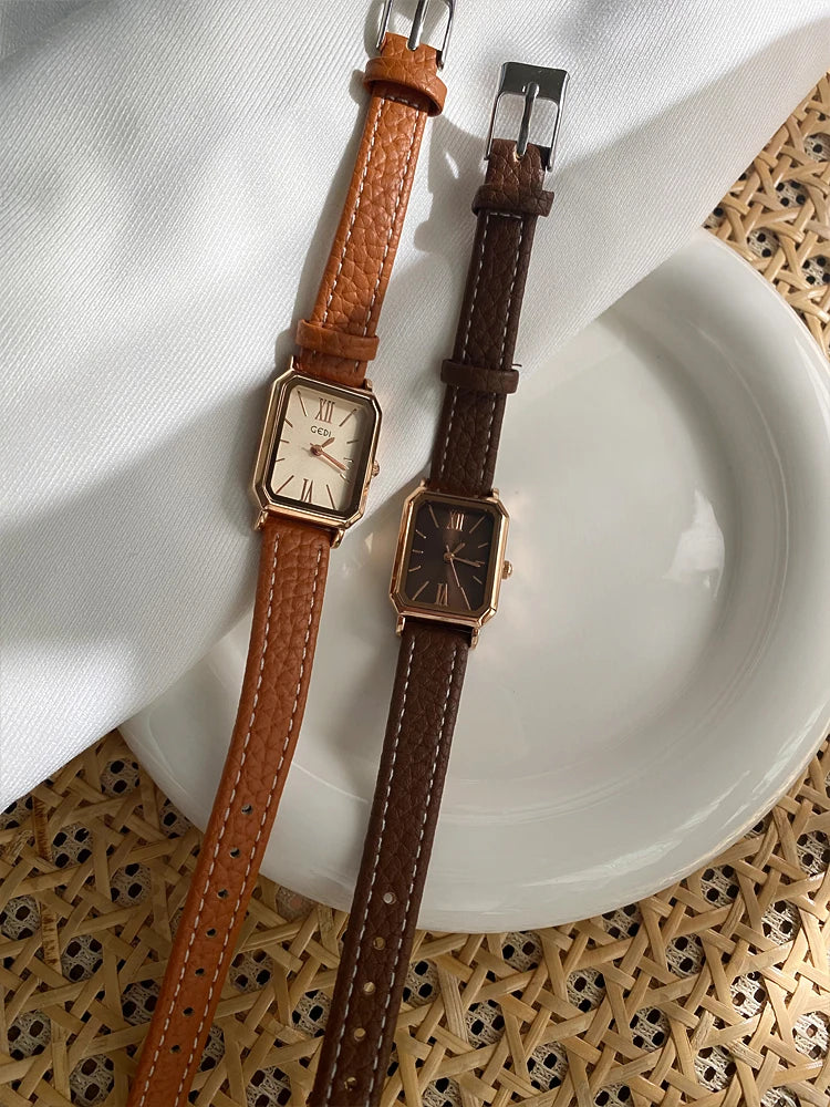 A vintage-inspired rectangle dial paired with supple leather straps for timeless appeal. With its minimalist face and polished metal case, it’s the kind of piece that moves effortlessly from casual afternoons to evening plans.