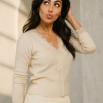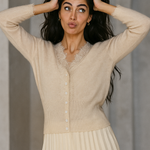 You deserve a piece as unique as you are. This lace-accented cashmere cardigan is thoughtfully designed to balance softness with standout style. Elegant, warm, and versatile—it’s a wardrobe essential you’ll reach for again and again.