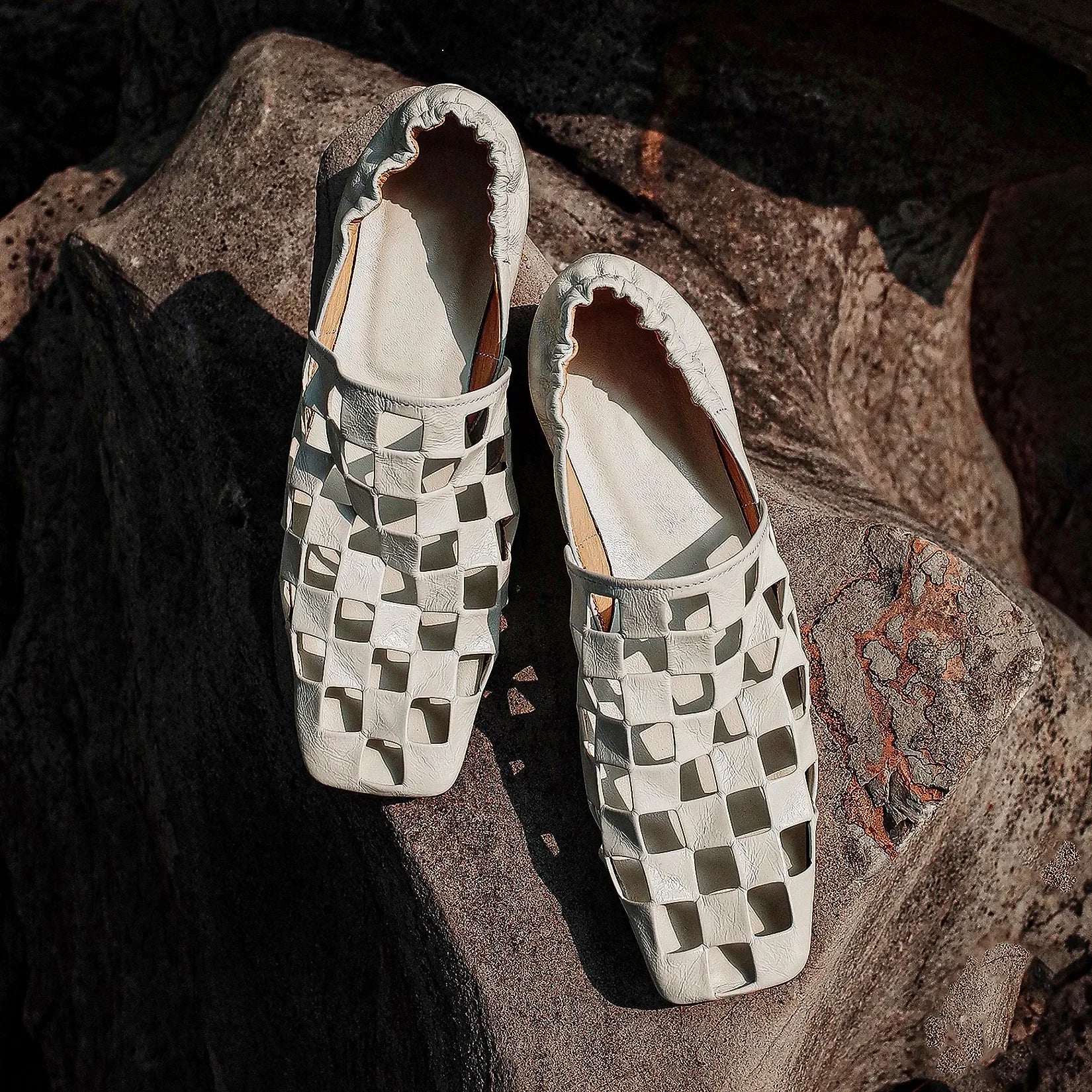Checkered Italian Leather Mules