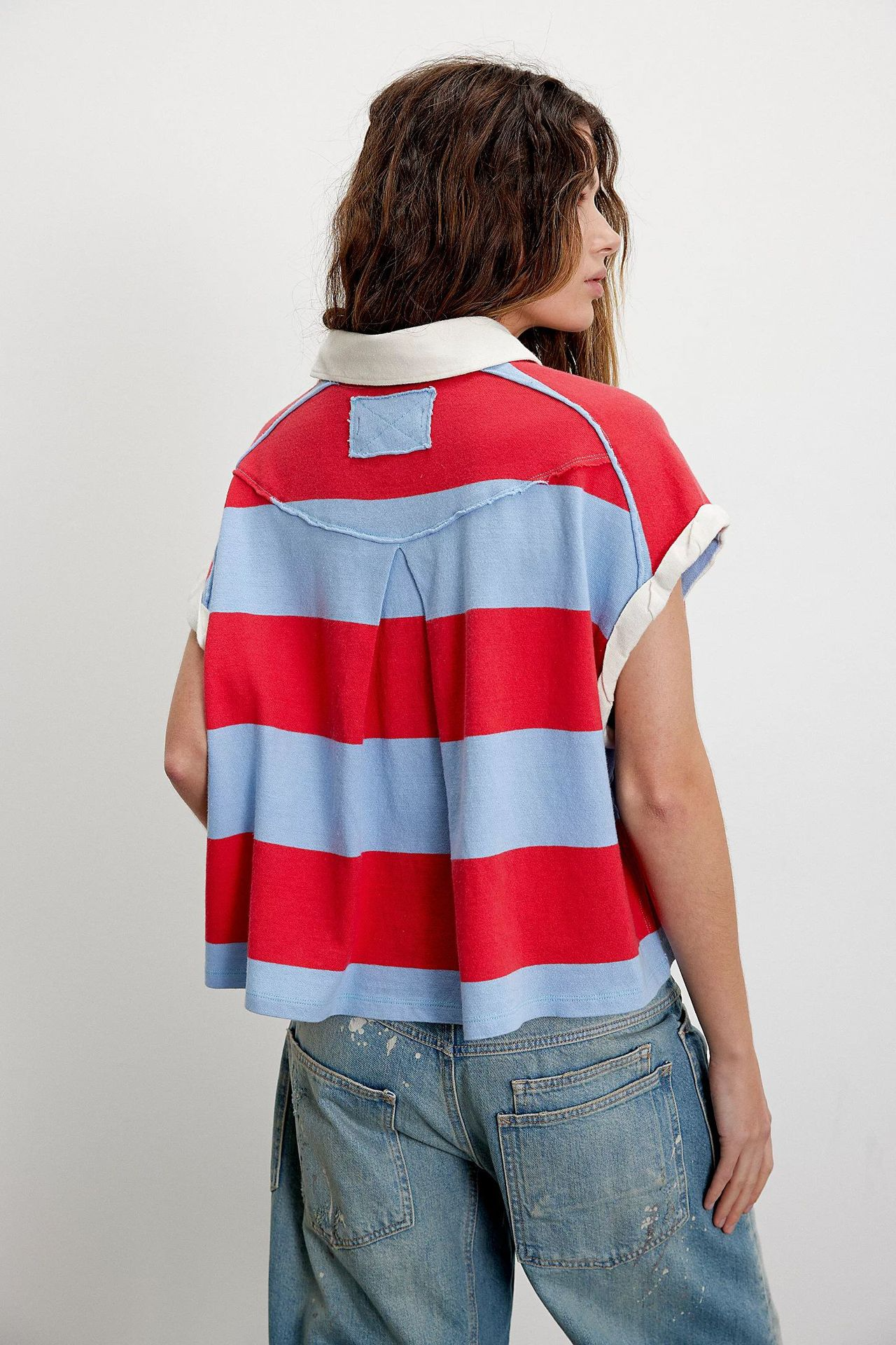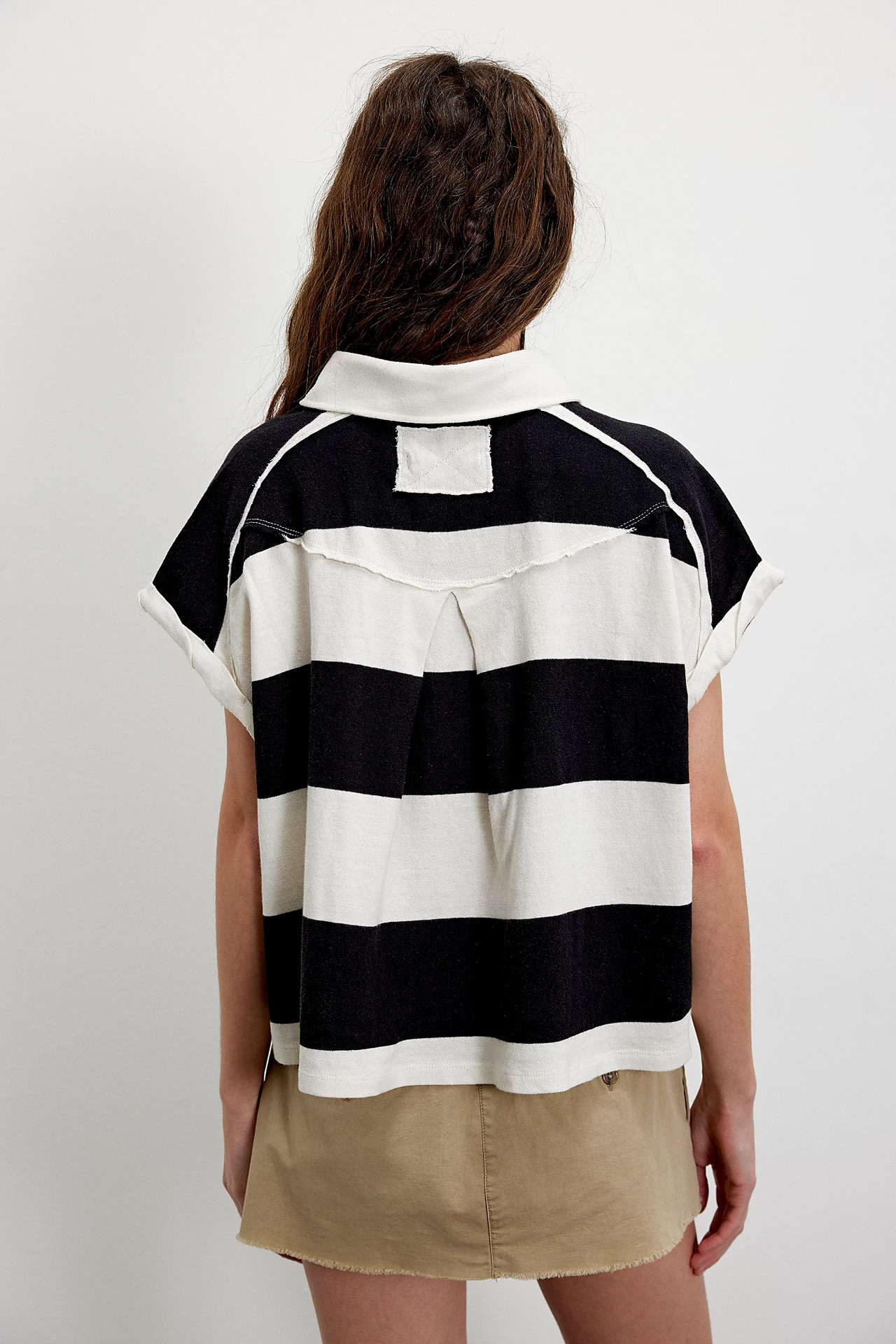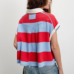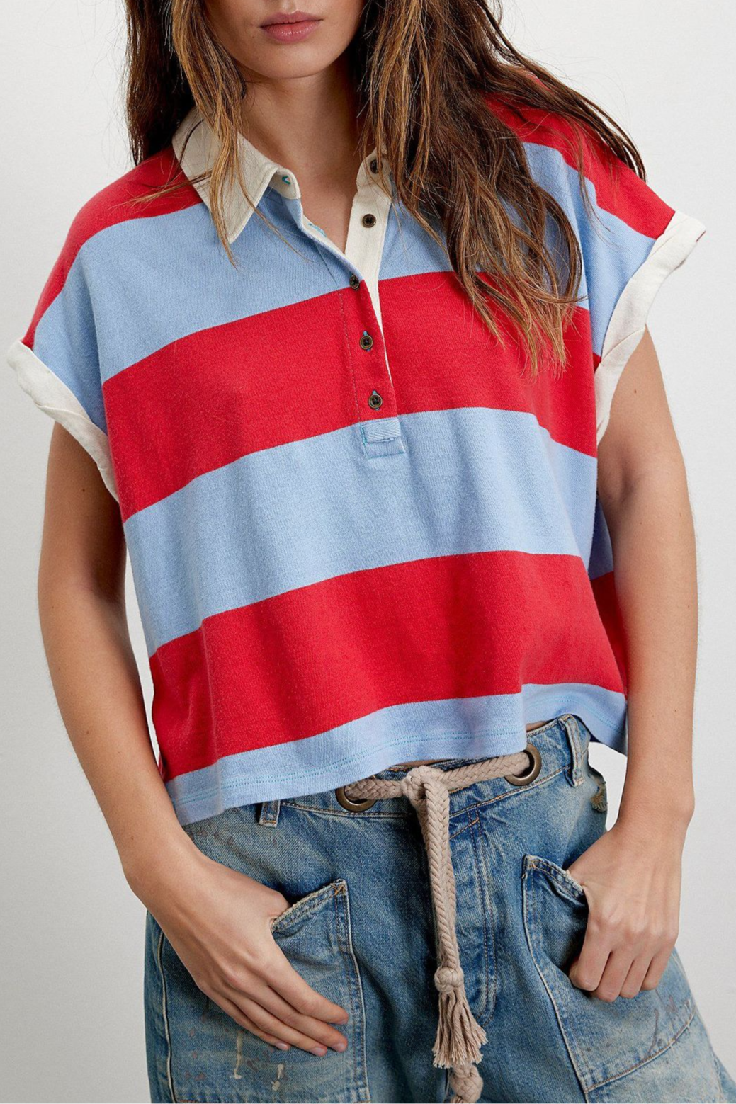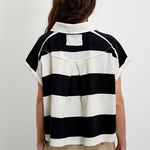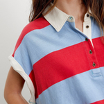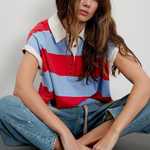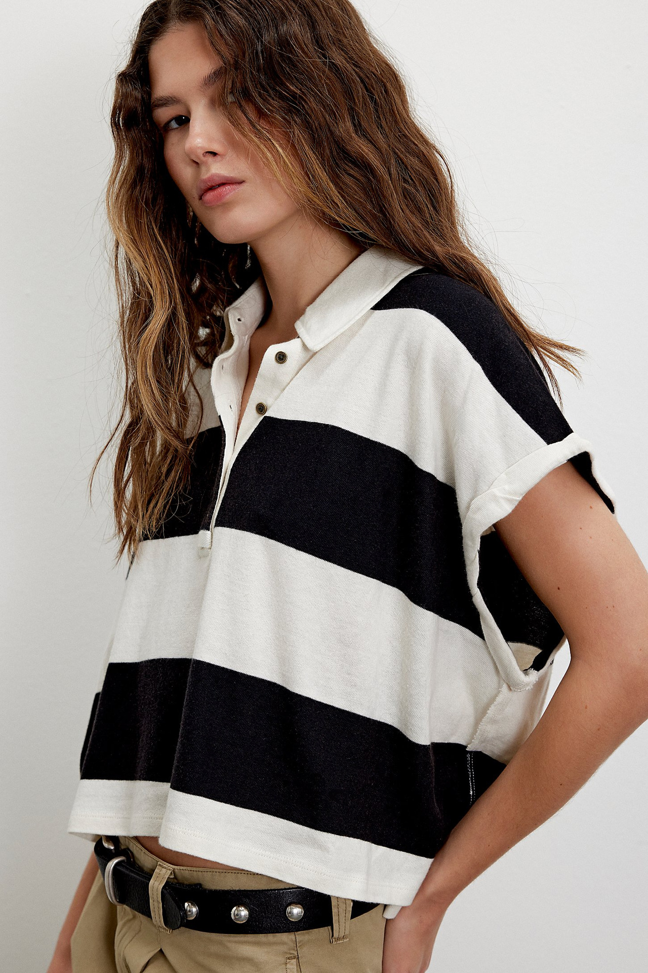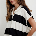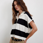 Punchy stripes and vintage flair collide in this cropped rugby top, finished with a worn-in collar and a laid-back drop shoulder. Just the right mix of tomboy charm and sporty cool.