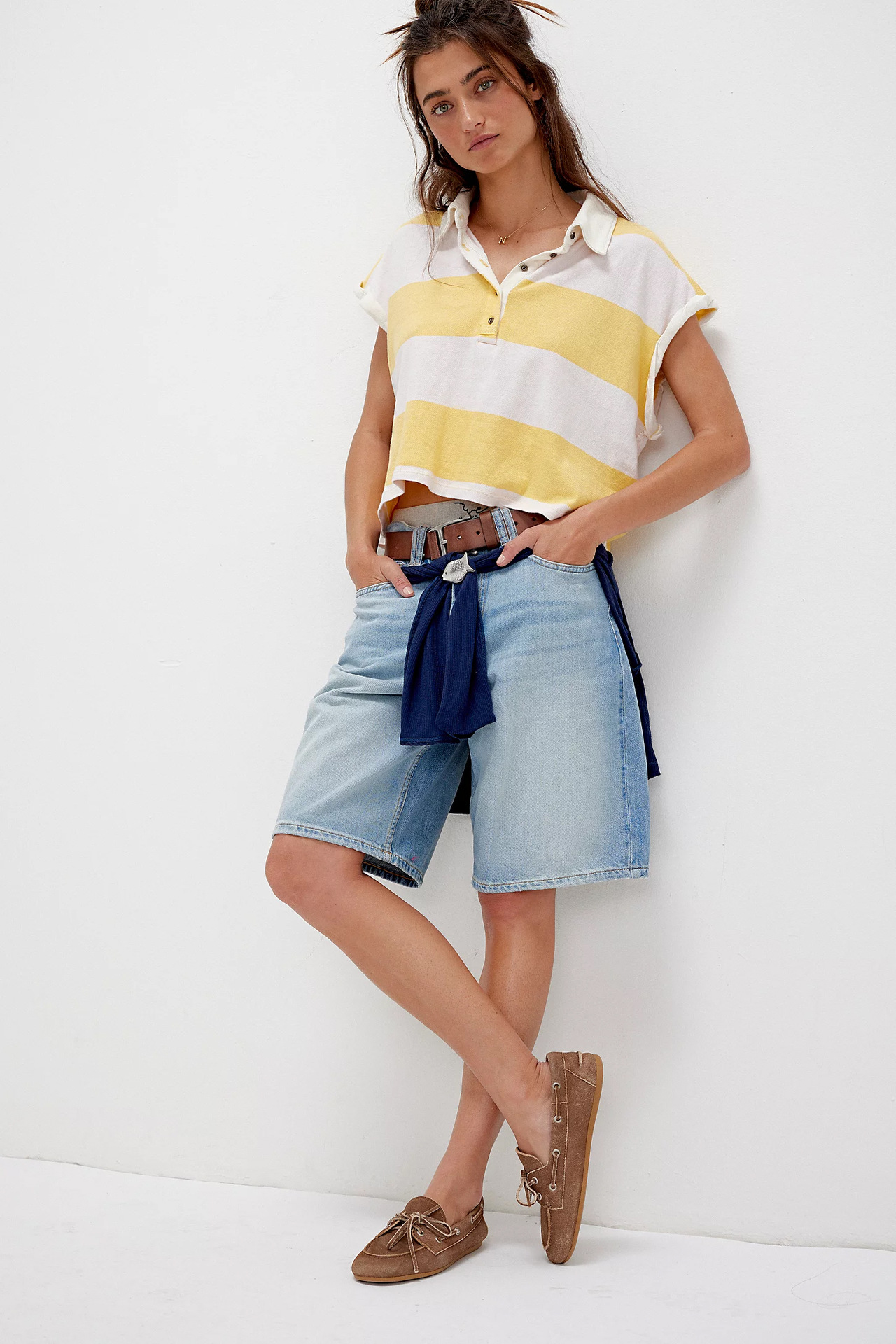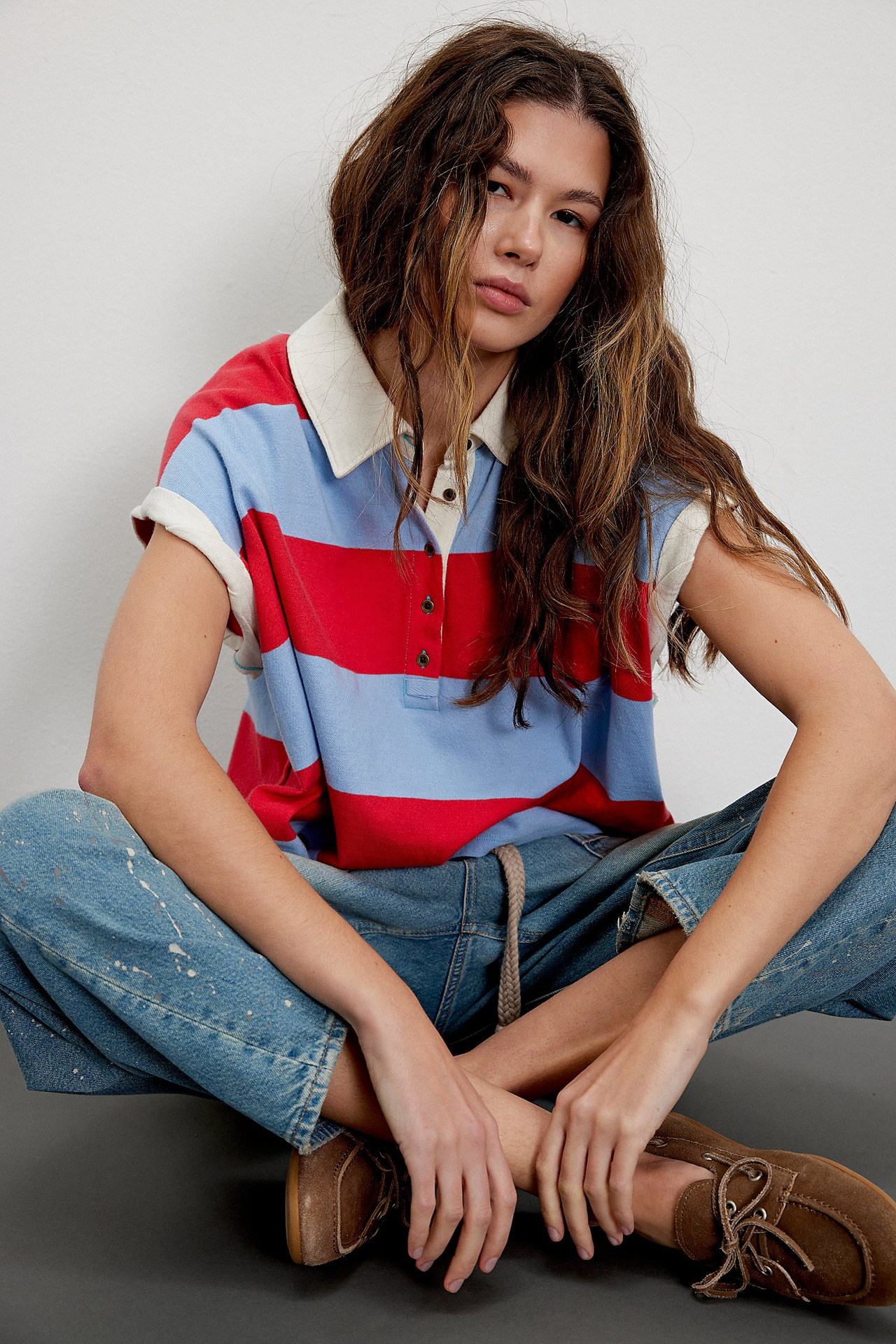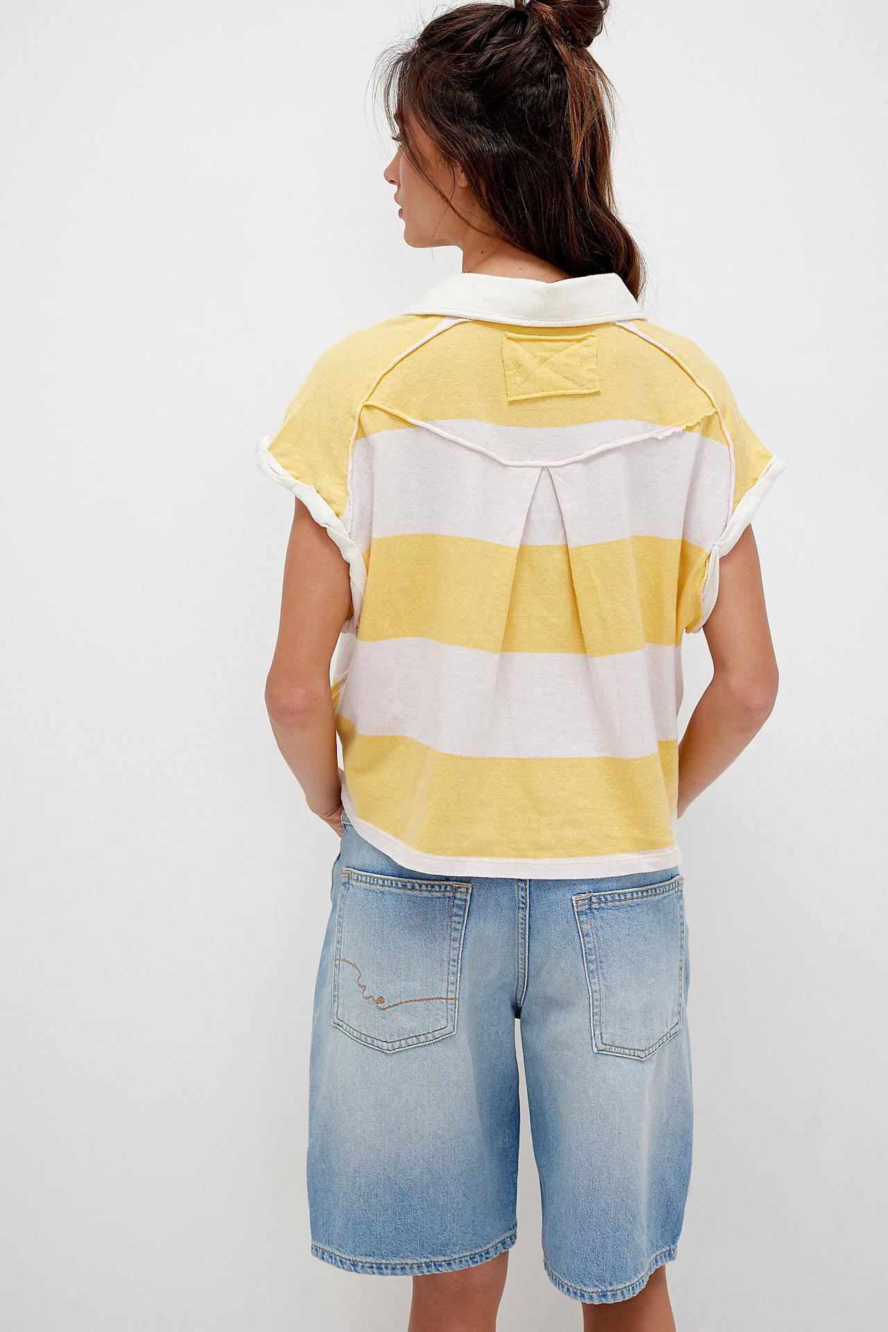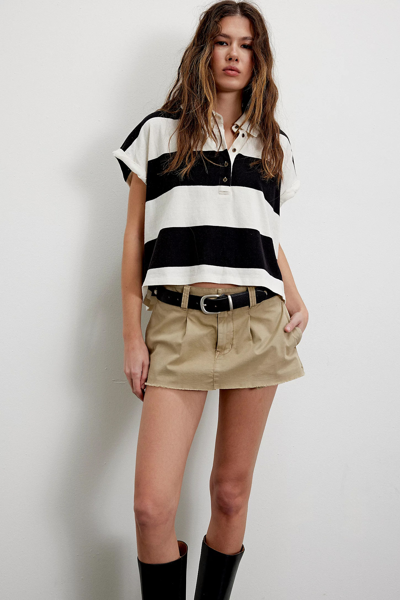 Punchy stripes and vintage flair collide in this cropped rugby top, finished with a worn-in collar and a laid-back drop shoulder. Just the right mix of tomboy charm and sporty cool.