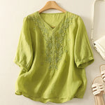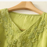 Breezy doesn’t have to mean basic—this airy cotton-linen top pairs delicate embroidery with soft volume for a fresh take on casual. Perfect for morning markets or afternoon shade.