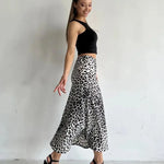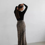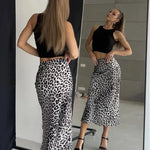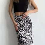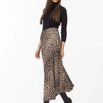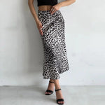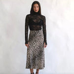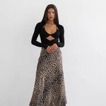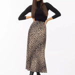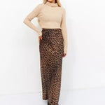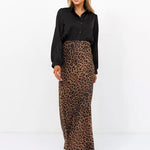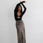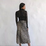 Turn heads with every step in this silky leopard print skirt that hugs and flows in all the right places. Whether in soft snow tones or deep jungle brown, it’s a bold yet wearable classic.