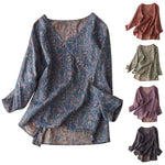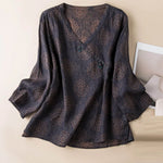 Bathed in earthy hues and rich texture, this crossover blouse brings a quiet strength to any day. Its asymmetrical wrap design and painterly print whisper stories of tradition and freedom.
