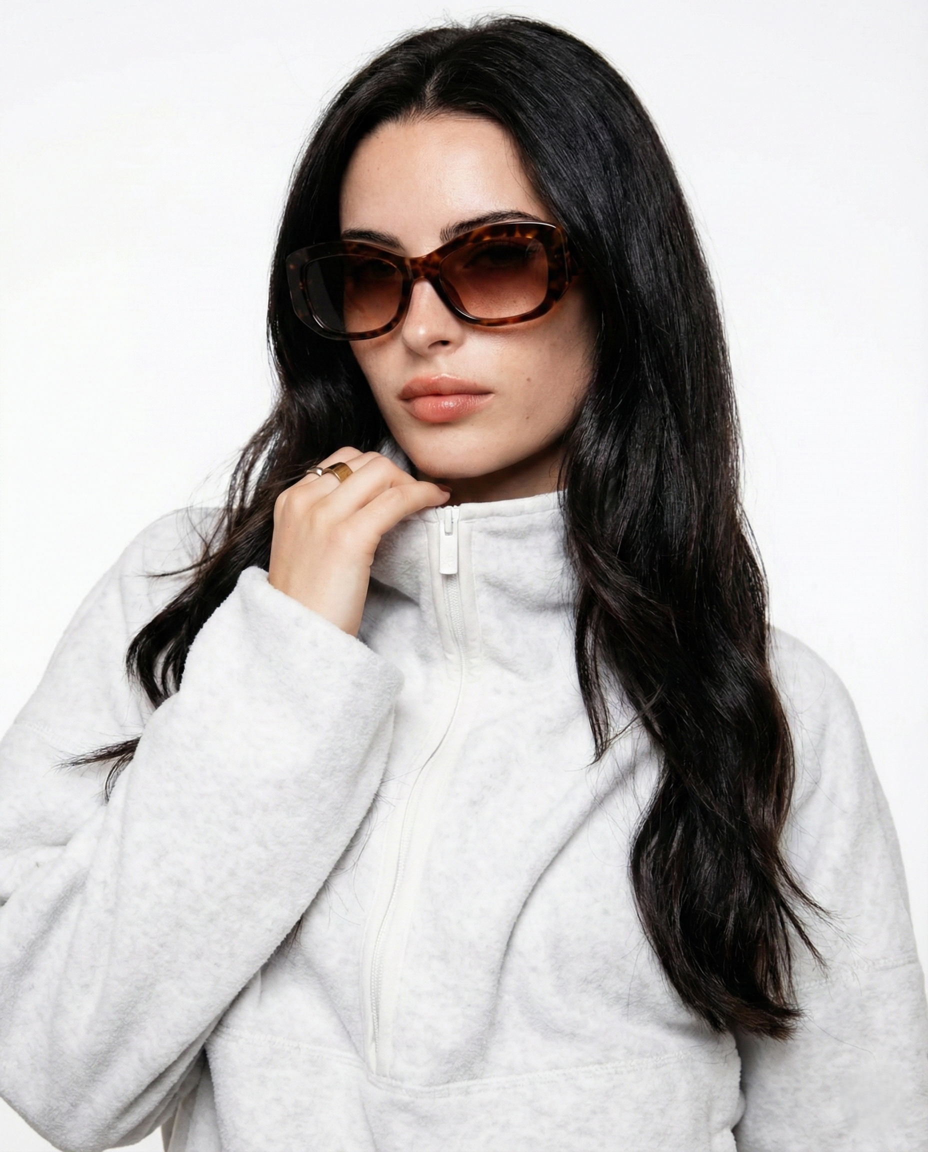 A great pair of sunglasses changes posture. Our oversized tortoise frames soften the face while adding structure — bold enough to anchor a look, refined enough to wear daily without ever feeling overdone.