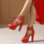 Make your entrance count with bold crimson straps and a sculpted heel built for drama. These power platforms are your ticket to standing taller and turning heads.