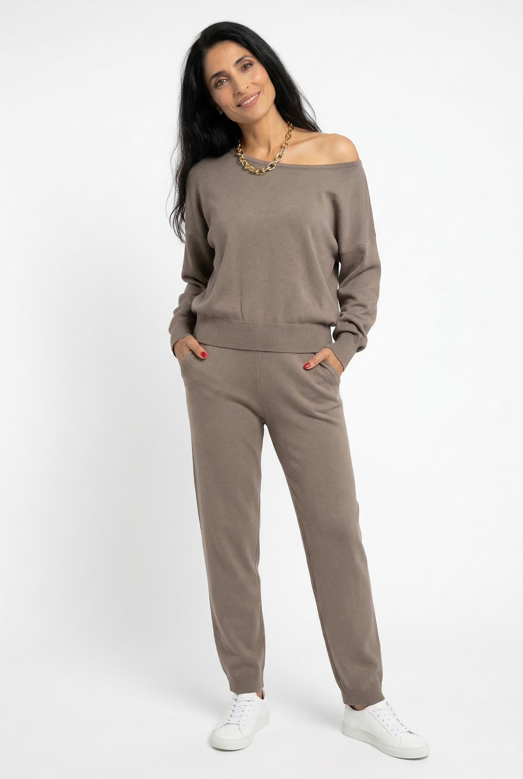For the woman who wants to feel as good as she looks. This knit set is soft, flowing, and wraps you in that feel-good vibe—because you deserve to look stunning and feel even better.