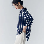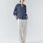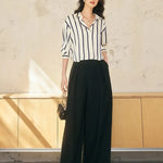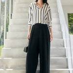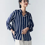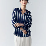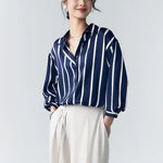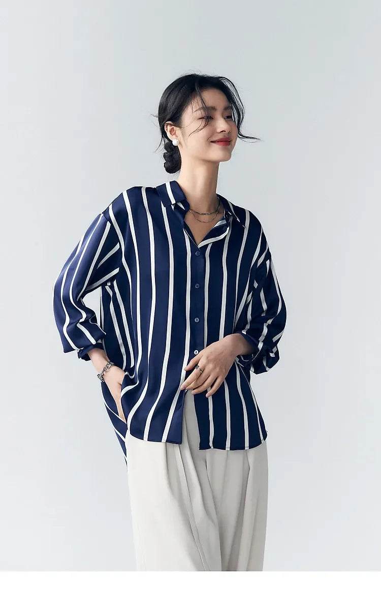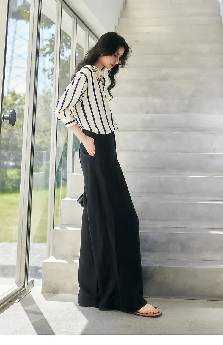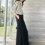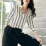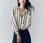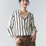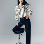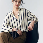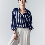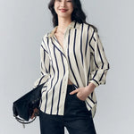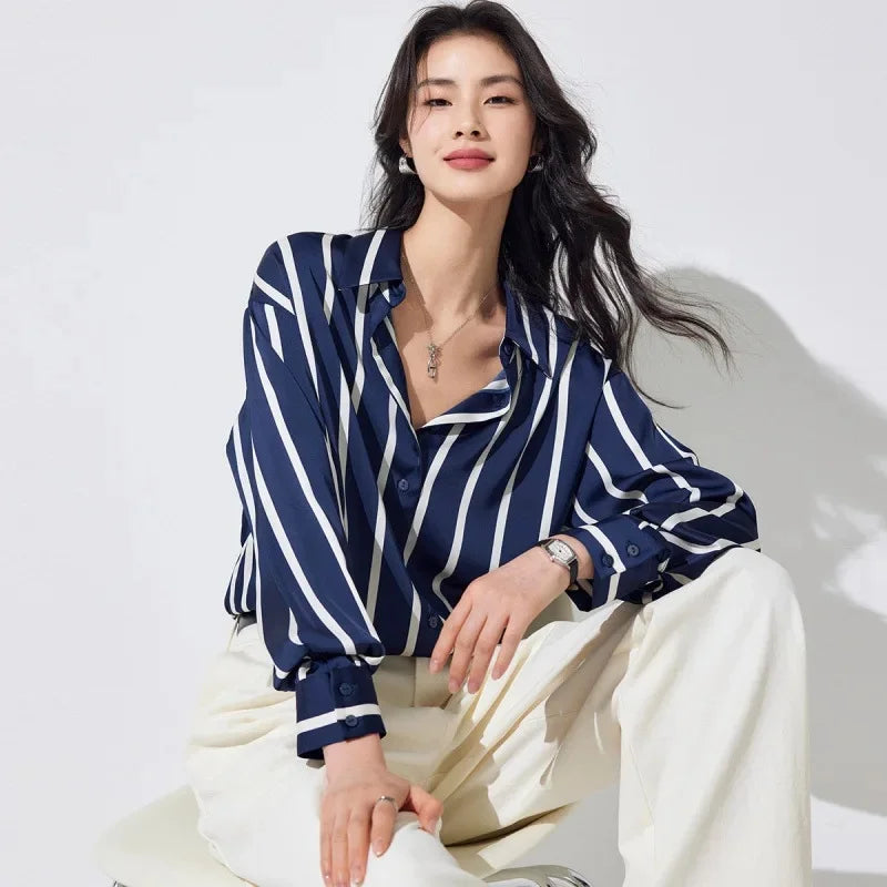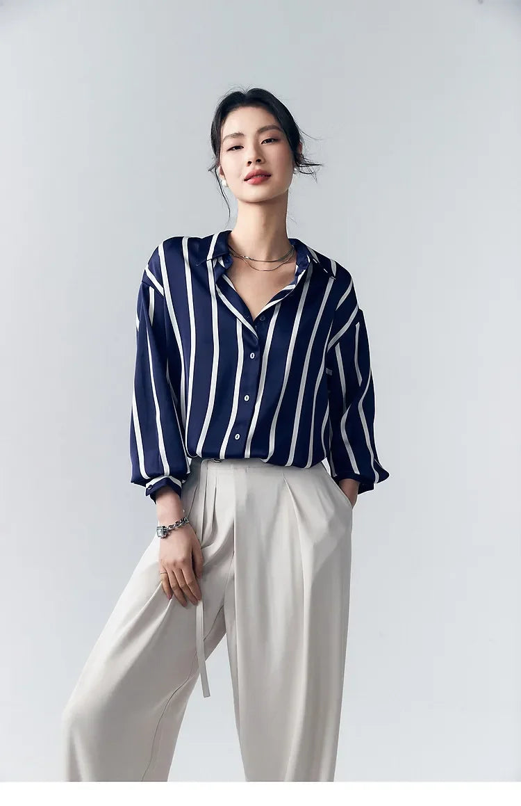 Power moves never looked this smooth. With bold stripes, a silky drape, and just enough slouch to feel effortless, this blouse owns every room—boardroom or bar.