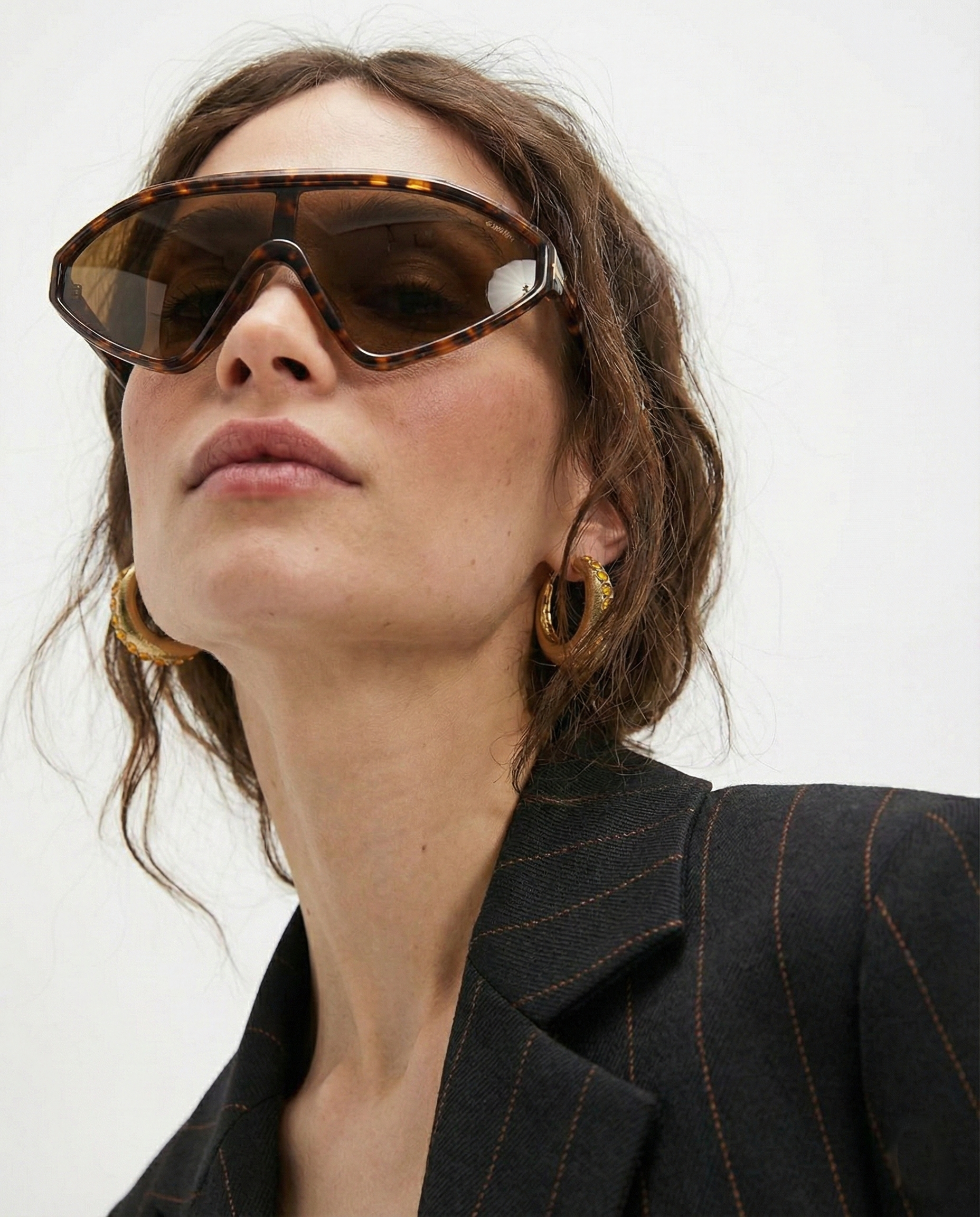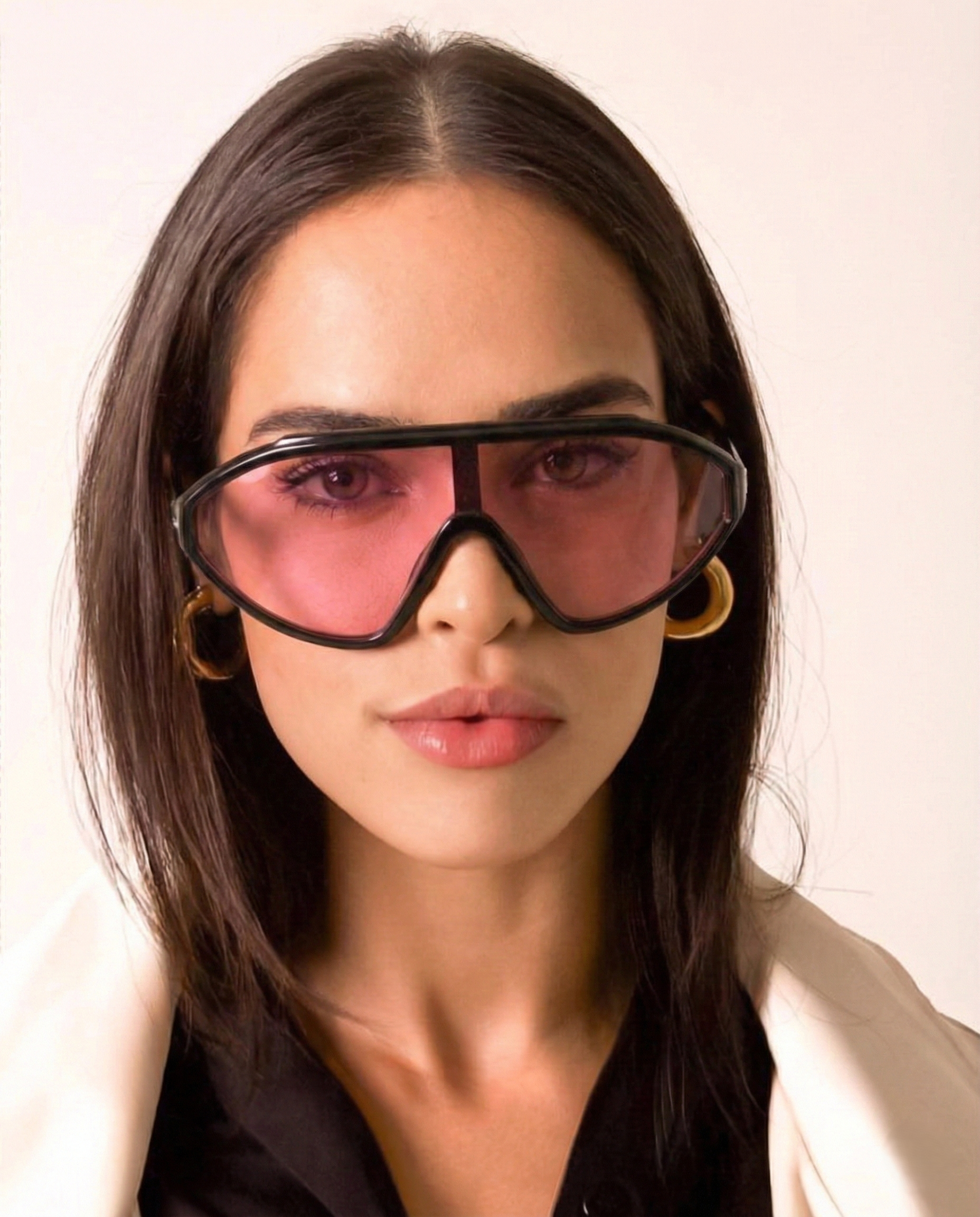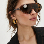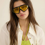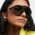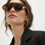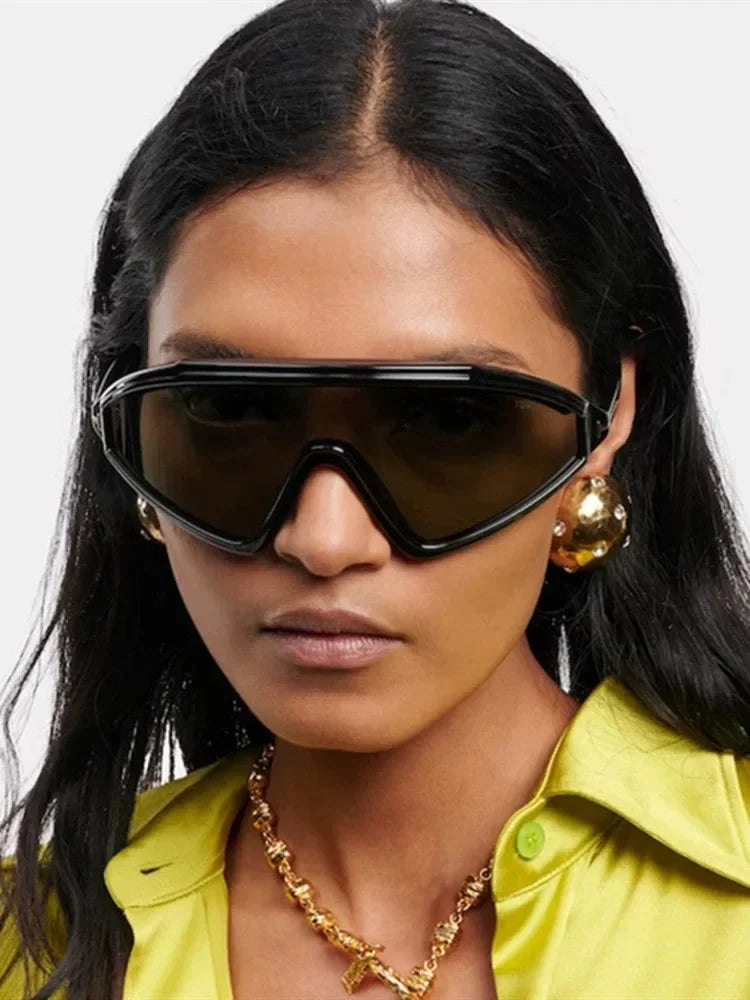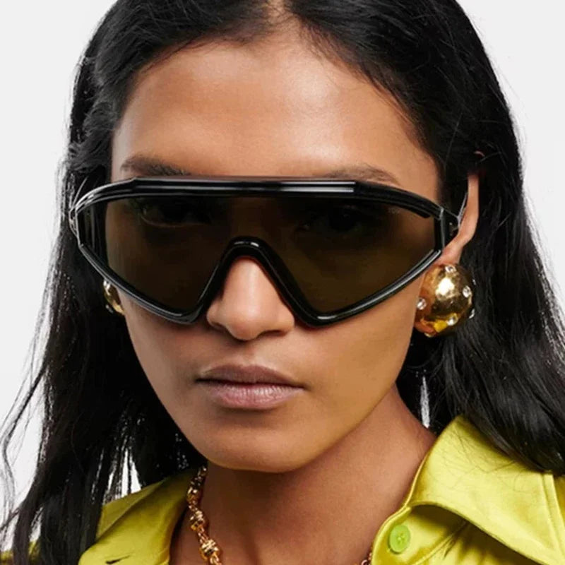 These are not background accessories — they are the moment. Our sculpted shield silhouette wraps the face in a single, confident sweep, creating sharp structure and instant presence whether styled with tailoring or off-duty essentials.