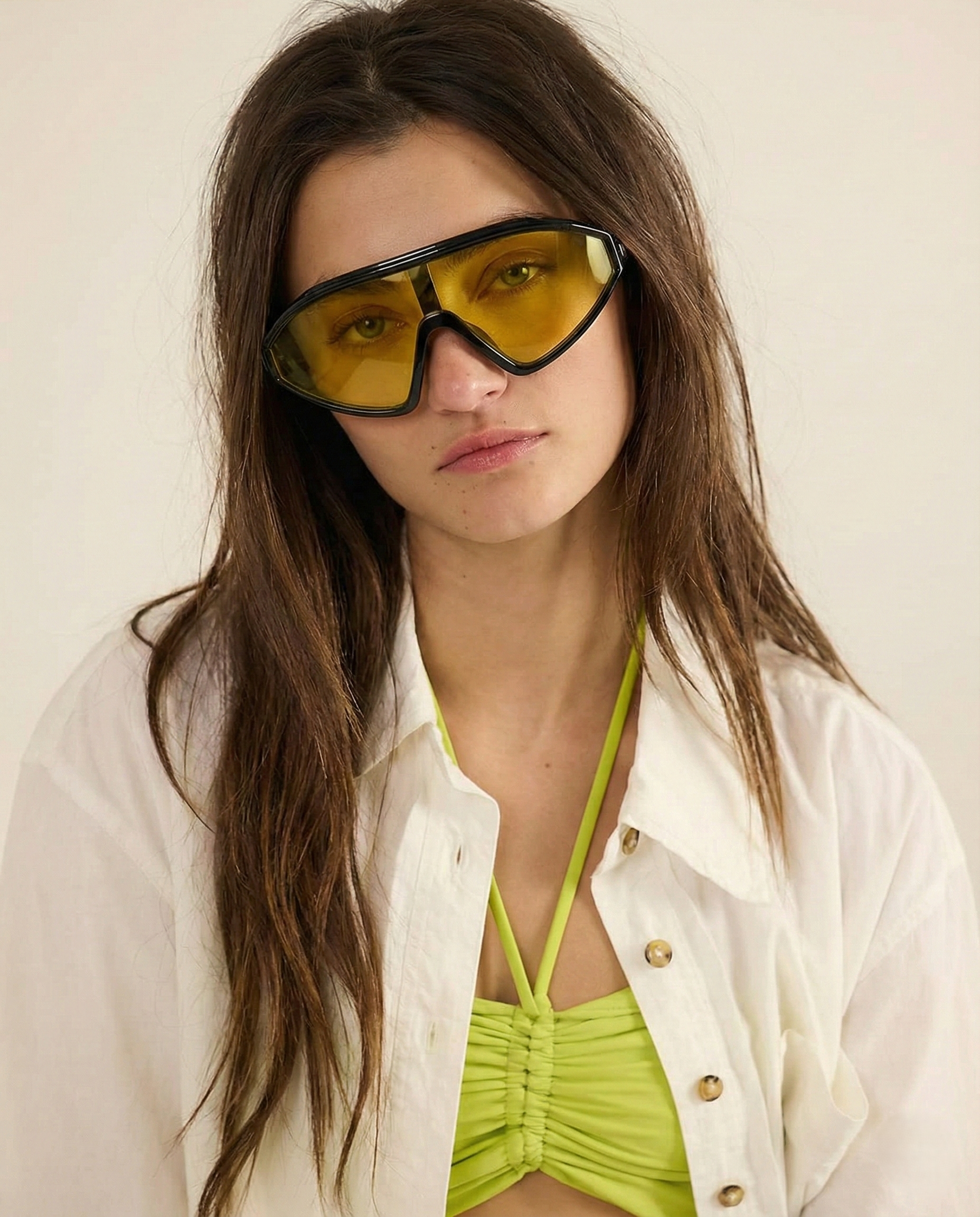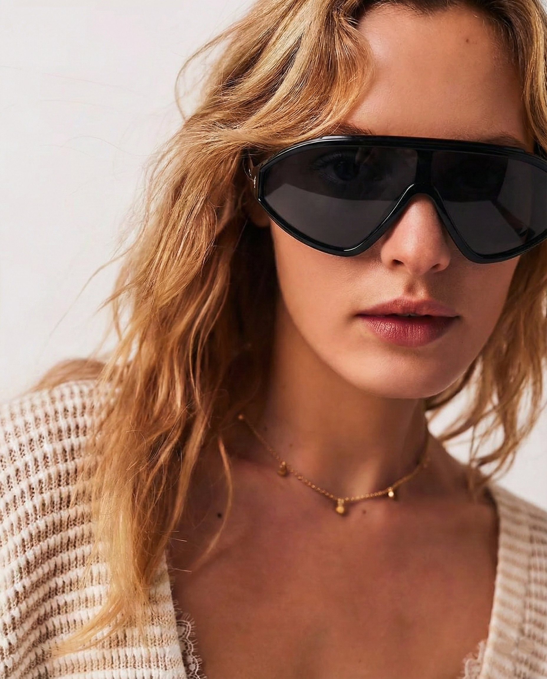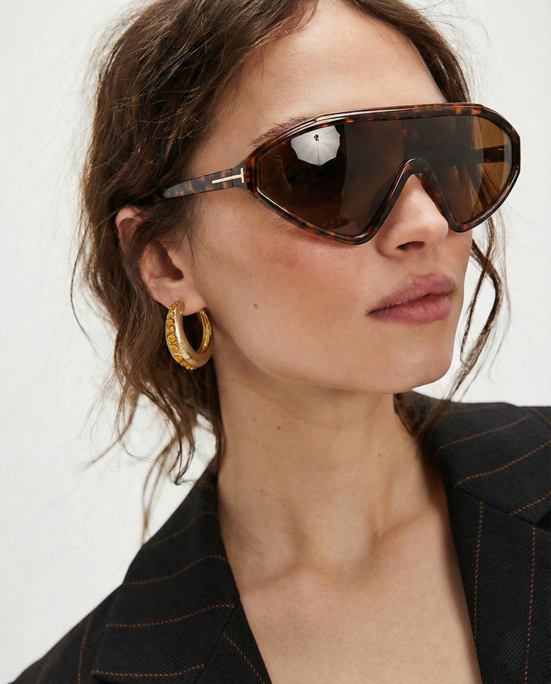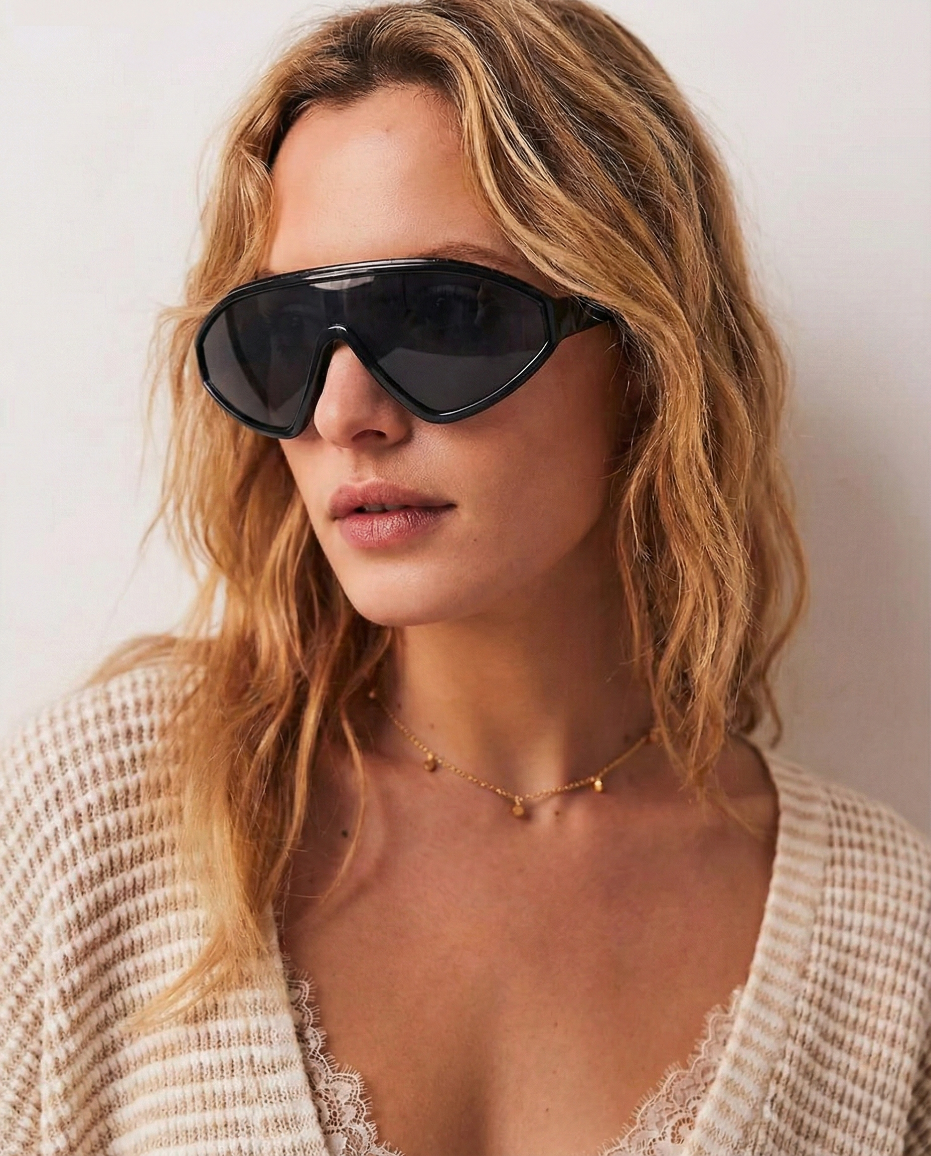 These are not background accessories — they are the moment. Our sculpted shield silhouette wraps the face in a single, confident sweep, creating sharp structure and instant presence whether styled with tailoring or off-duty essentials.