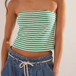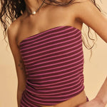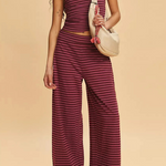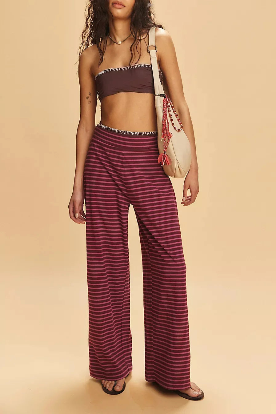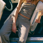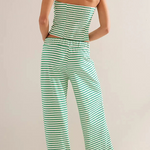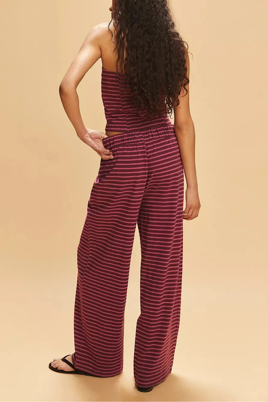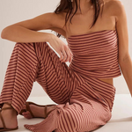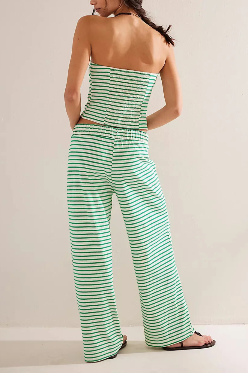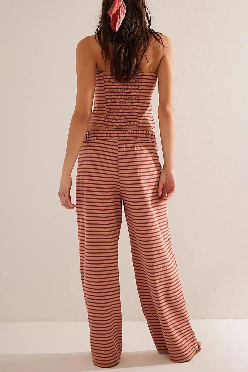 Laidback never looked this good—this striped two-piece set pairs a fitted bandeau with flowy wide-leg pants for an effortlessly put-together vibe. A day-to-night essential with just the right edge.