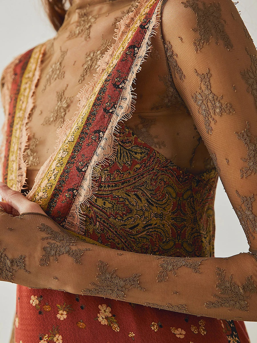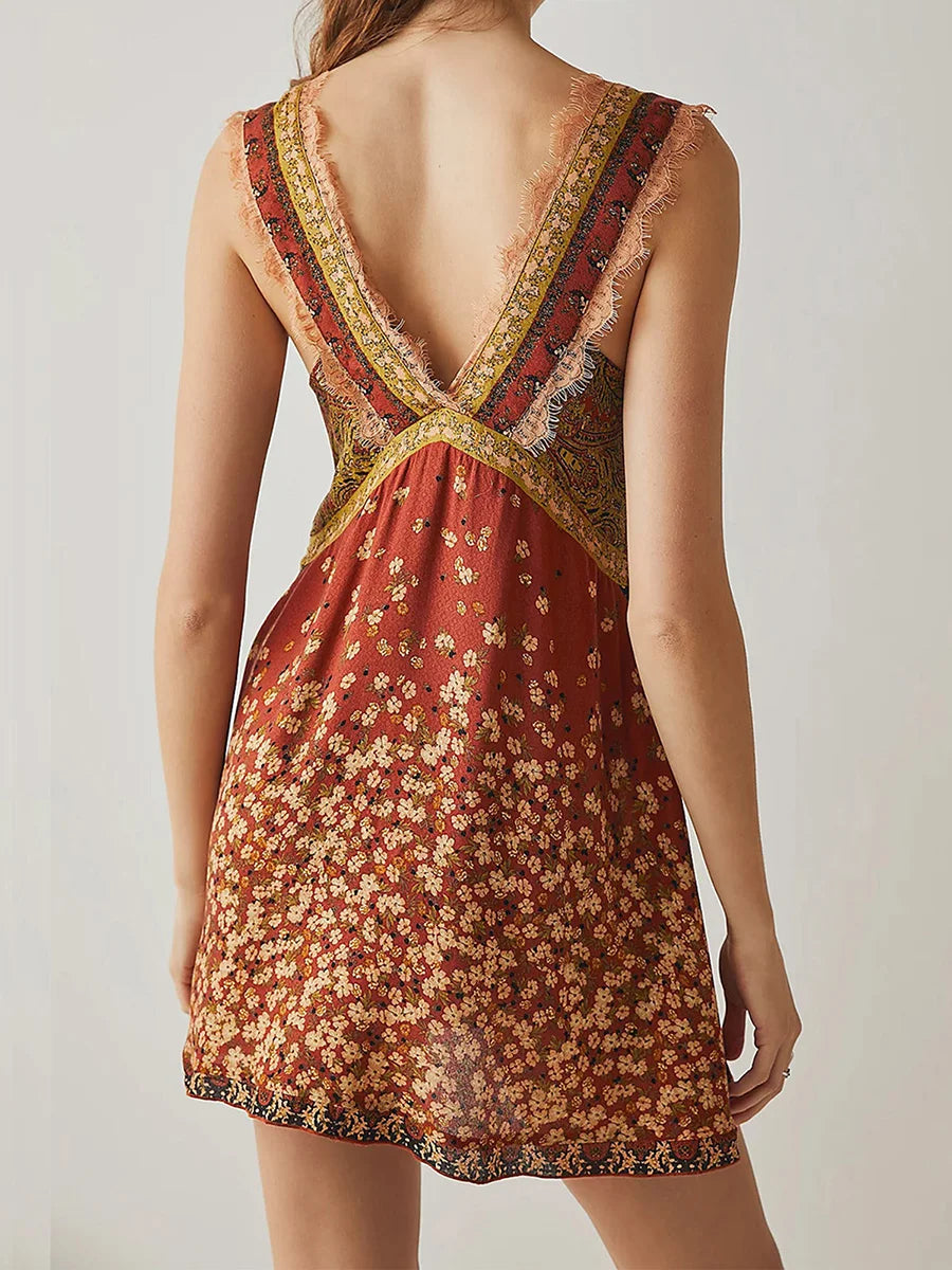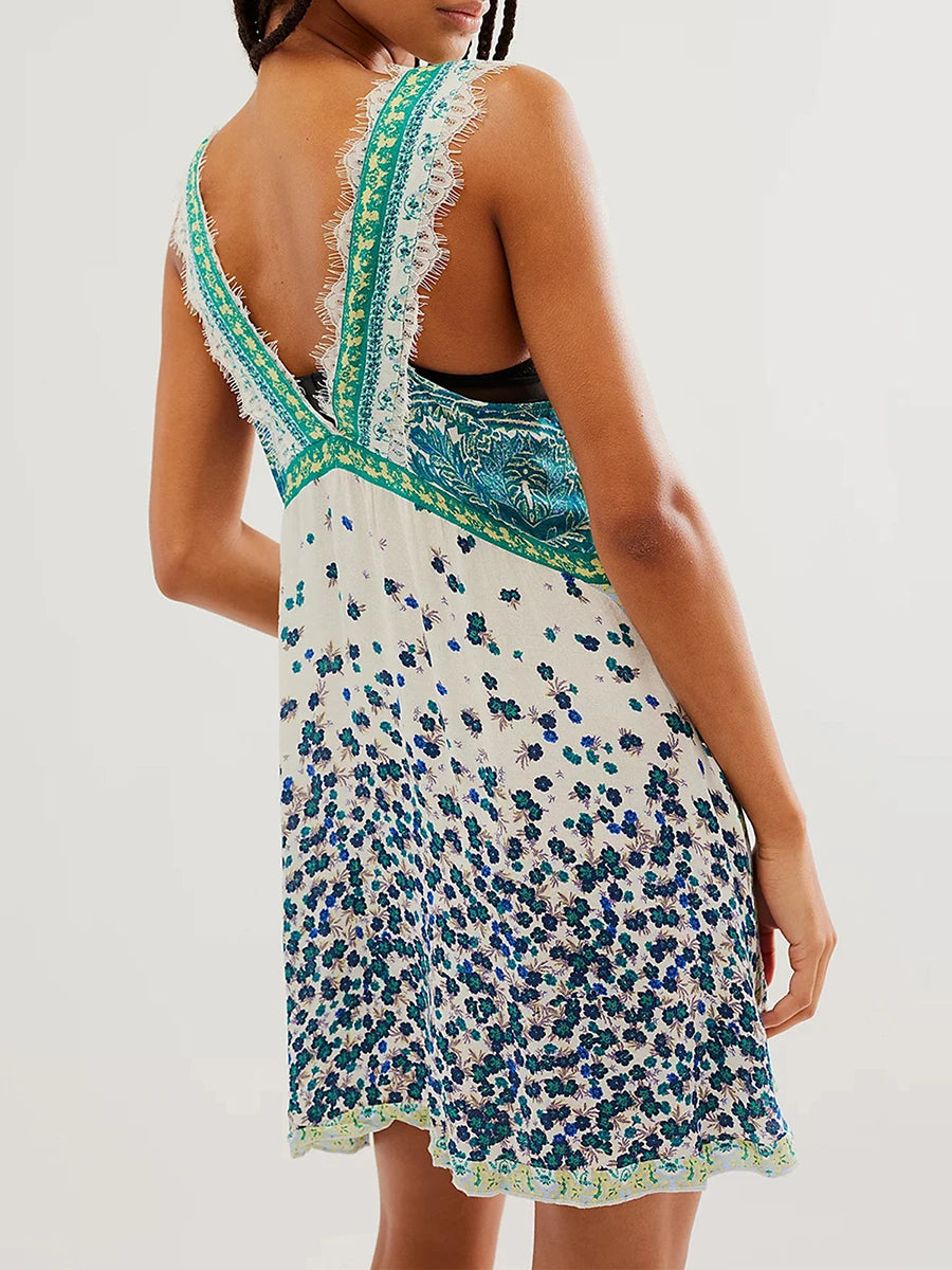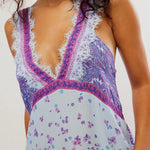 Float into any room with flirty lace edges and a vintage floral mix that turns heads from every angle. The deep V-neck and airy fit make this a summer favorite for the bold and free-spirited.