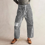 Seaside charm gets a beautifully relaxed update in these darling striped pants. A soft rope tie cinches the waist for a flattering shape, while the easy-going fit and artful patchwork create a feeling of effortless, sun-faded chic.