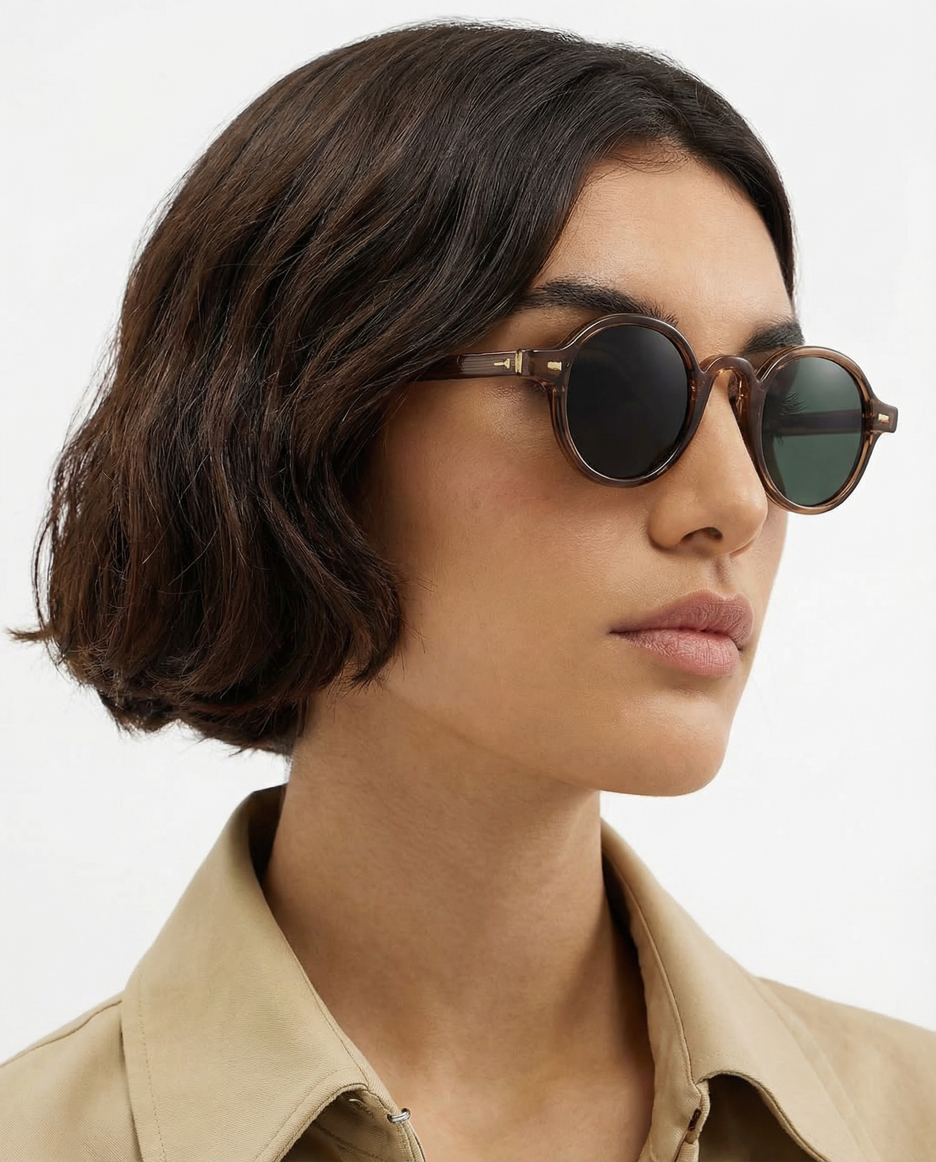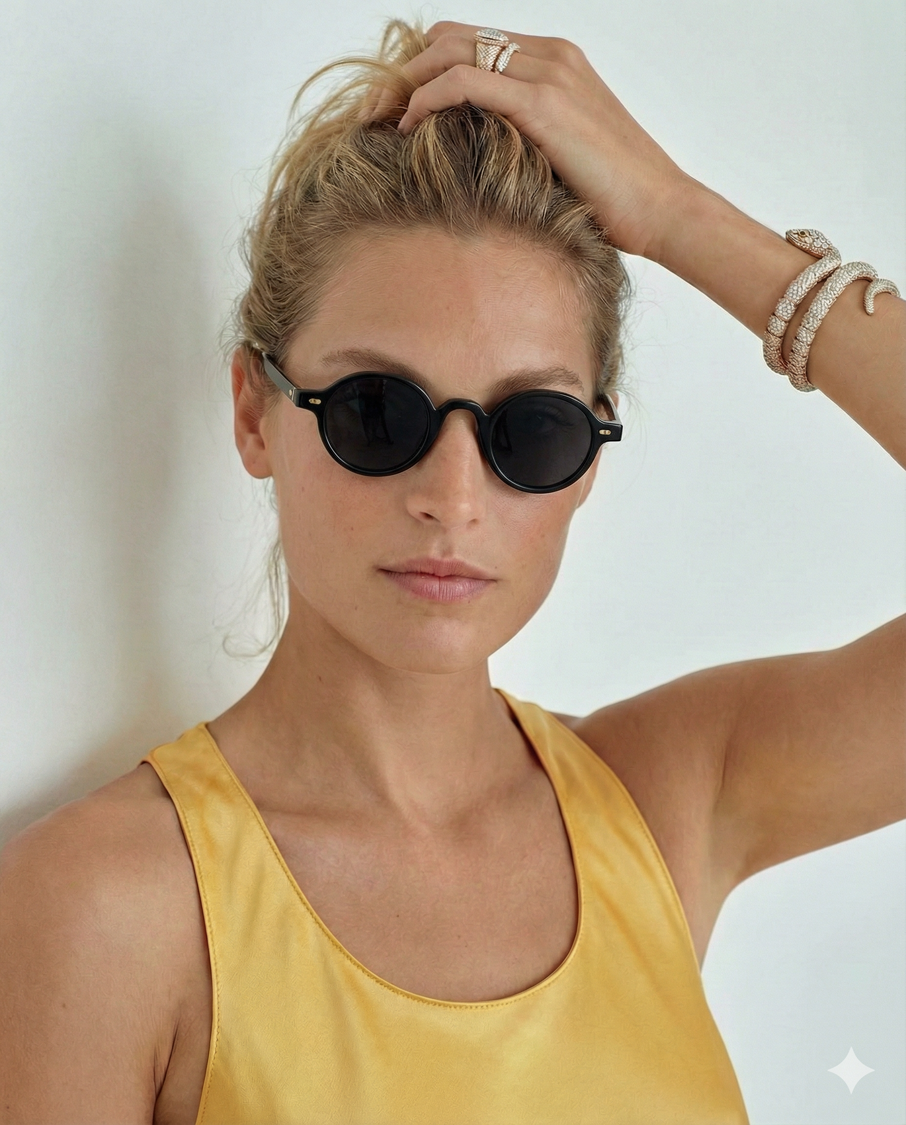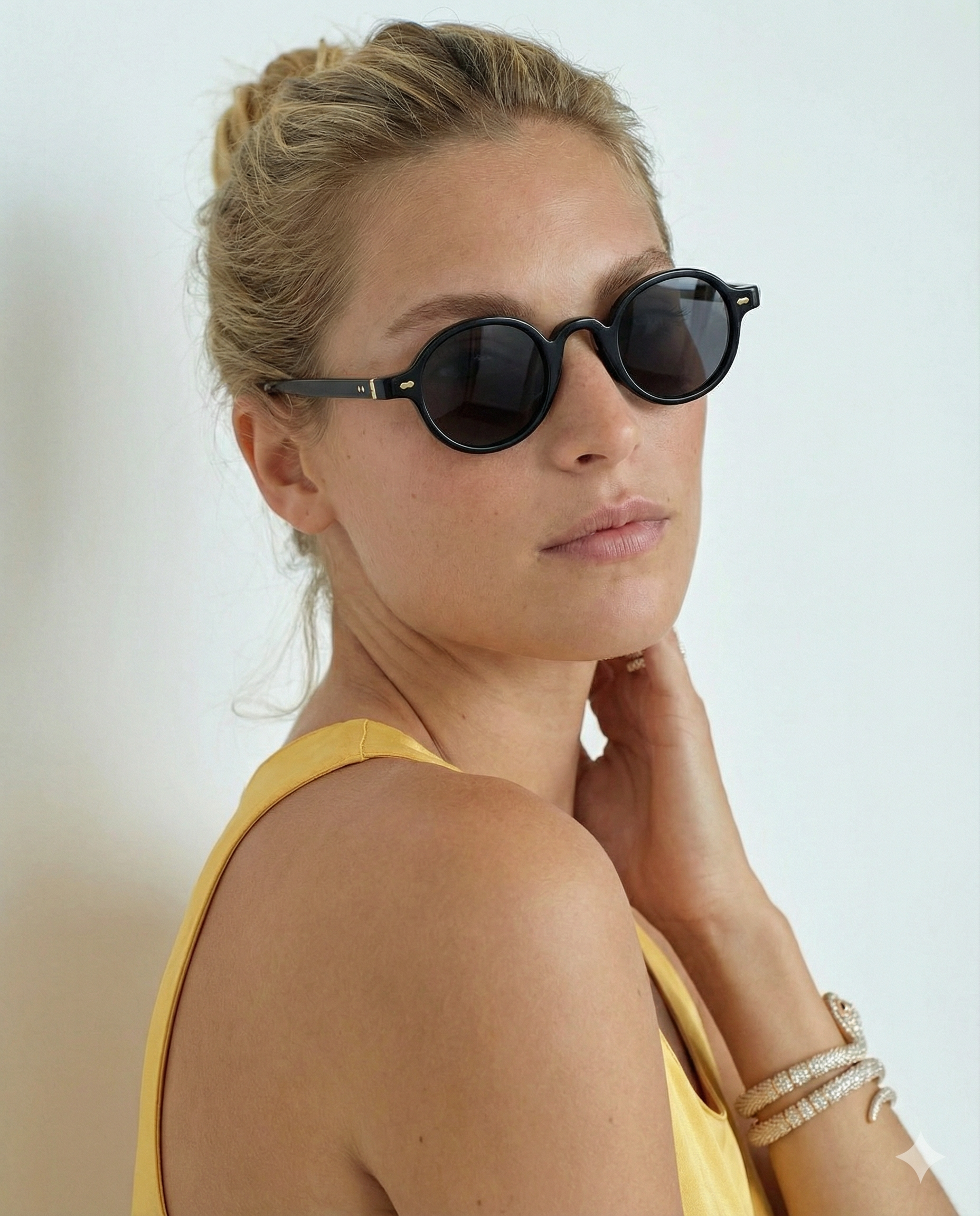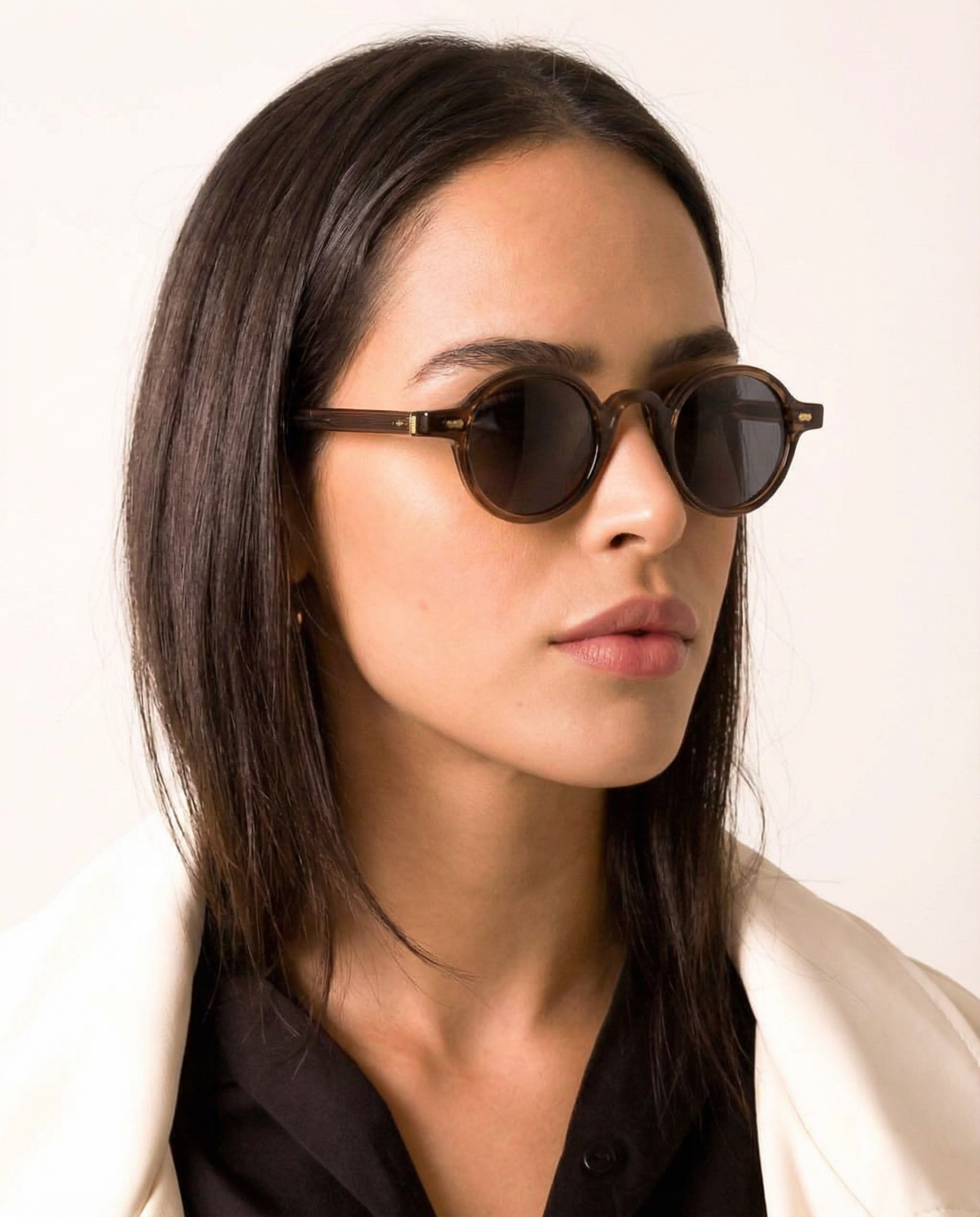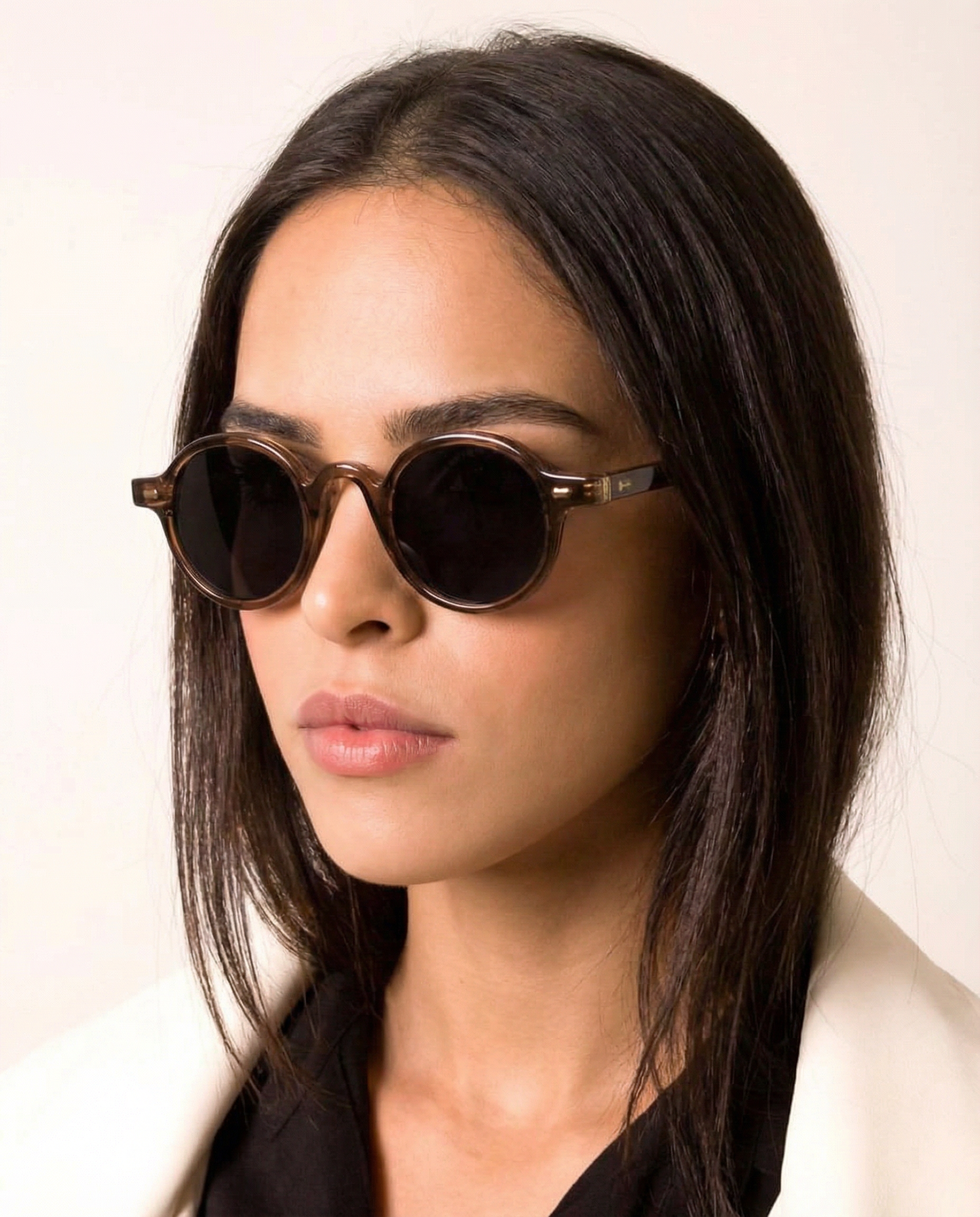 Sunlight looks better through amber. Our rounded translucent frame glows against the skin while deep contrast lenses keep the mood grounded — bold, playful, and the kind of piece that turns a simple outfit into something intentional.