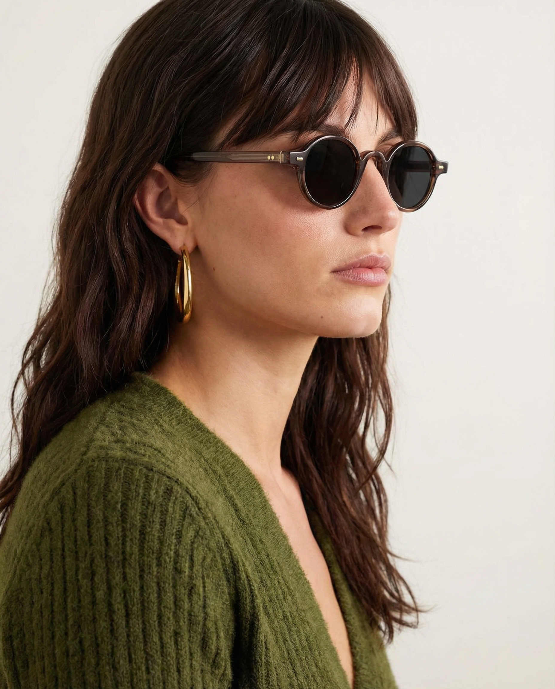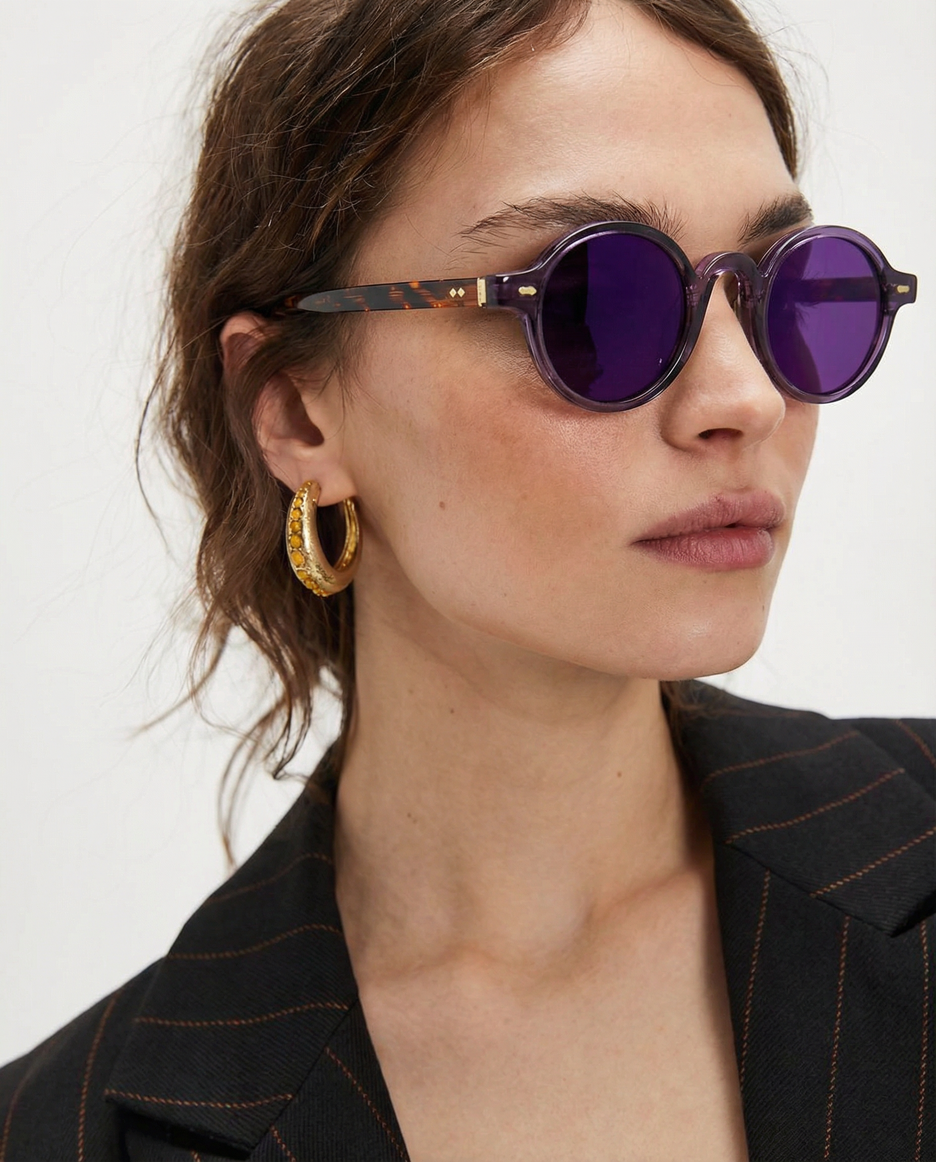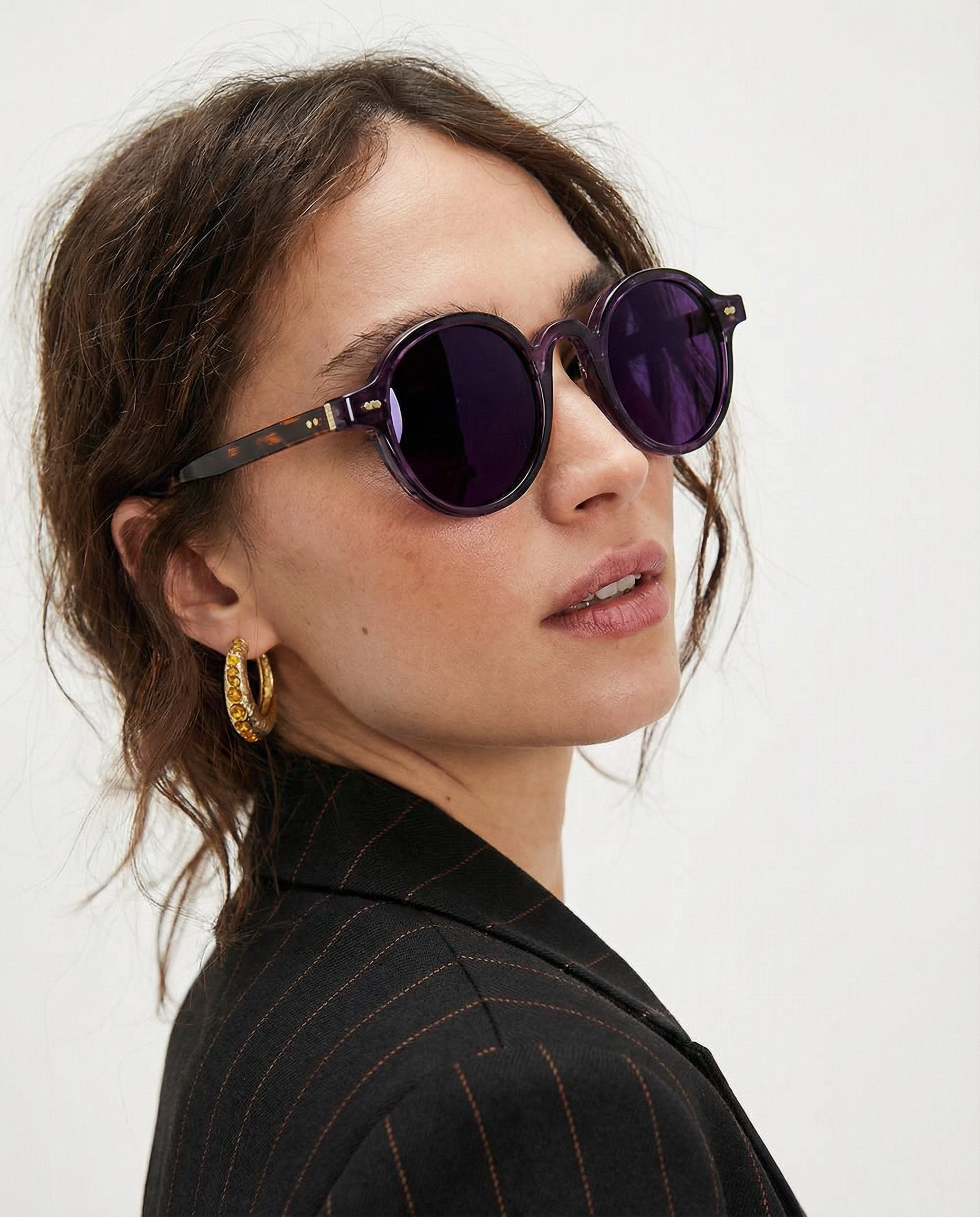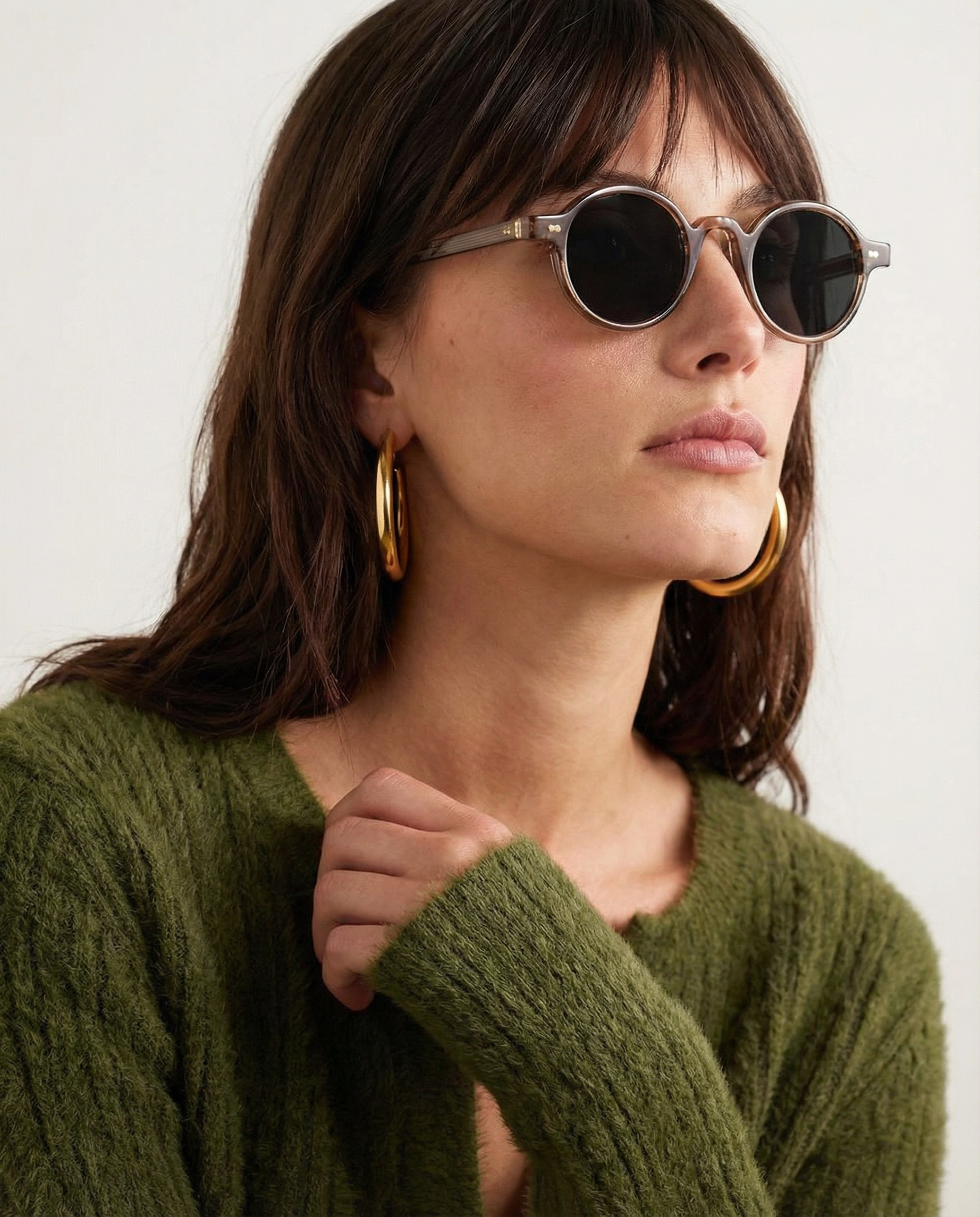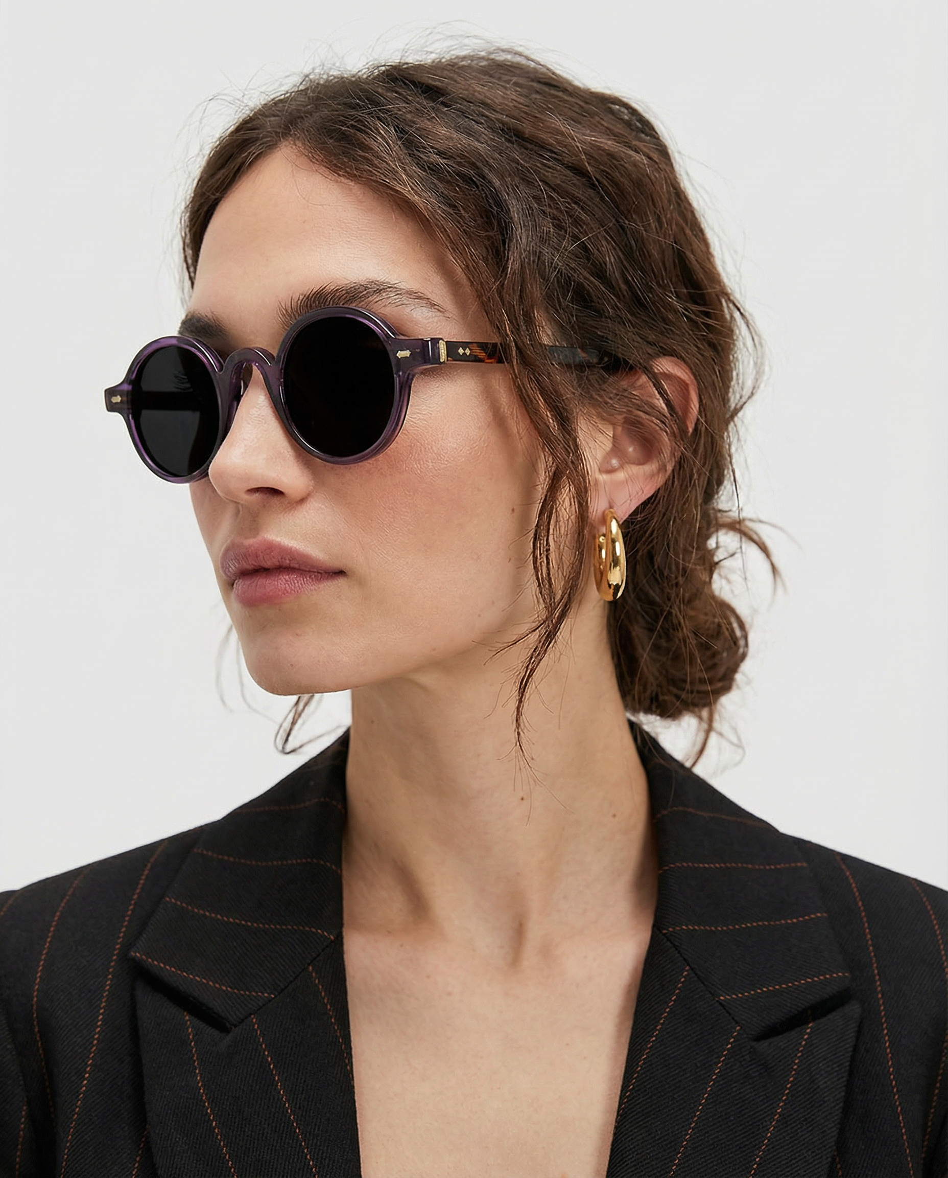 Sunlight looks better through amber. Our rounded translucent frame glows against the skin while deep contrast lenses keep the mood grounded — bold, playful, and the kind of piece that turns a simple outfit into something intentional.