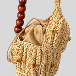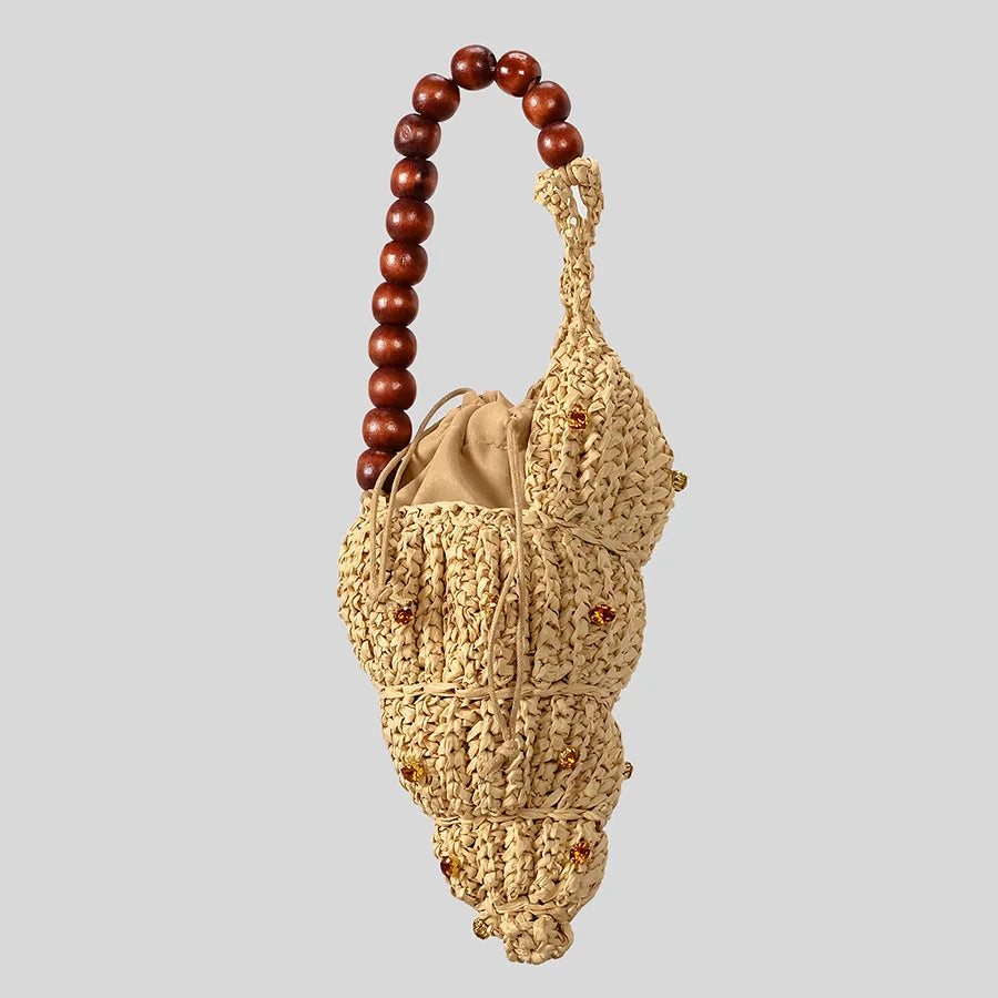 Carry a piece of the ocean with you. This artfully designed bag captures the magic of a seaside escape, intricately woven into a sculptural conch shell silhouette for a truly unique look. Polished wooden beads create a smooth, comfortable handle, while subtle crystal accents catch the light like sun on the water. It’s not just a handbag; it's a wearable piece of art that turns any outing into a stylish statement.