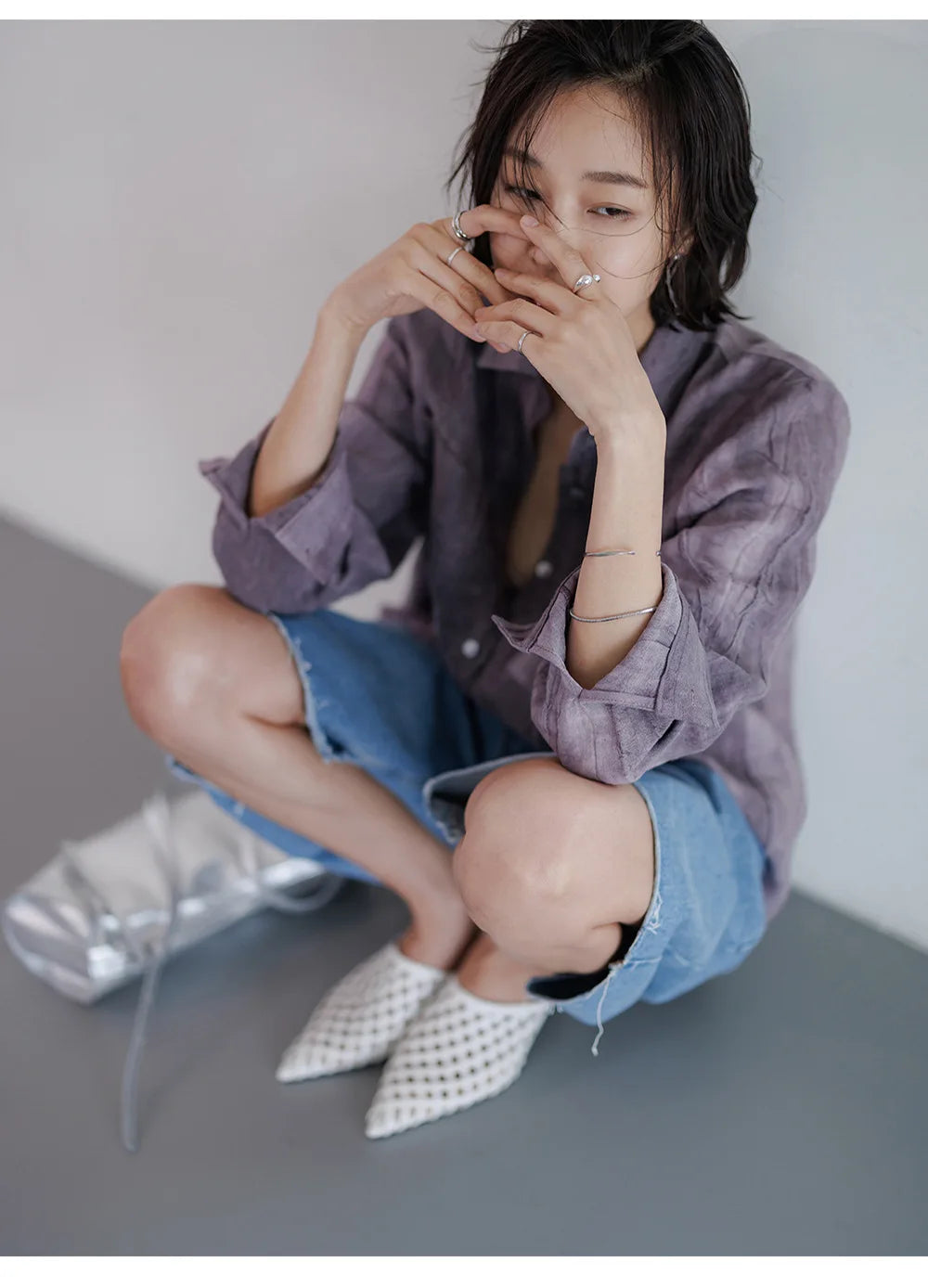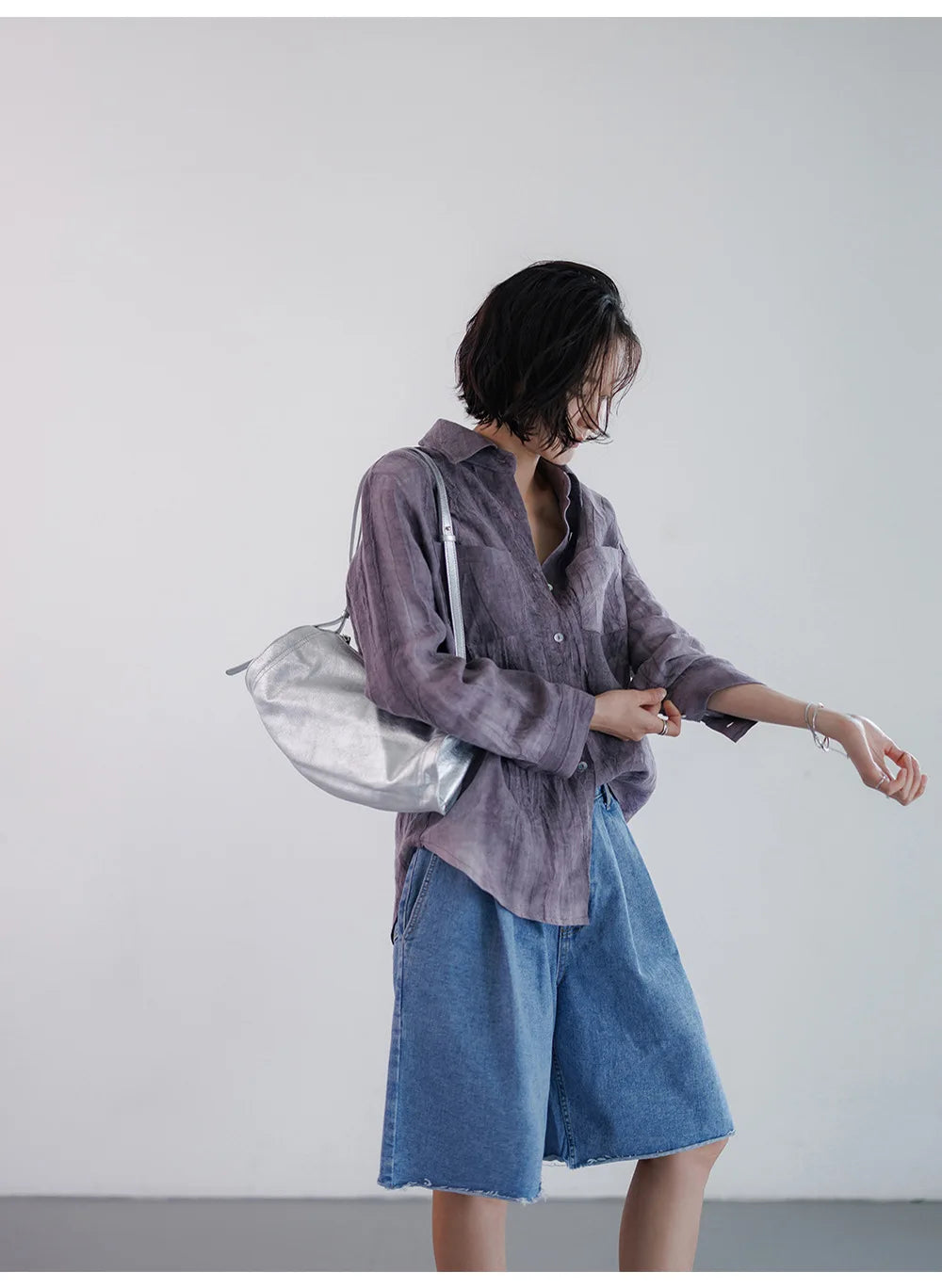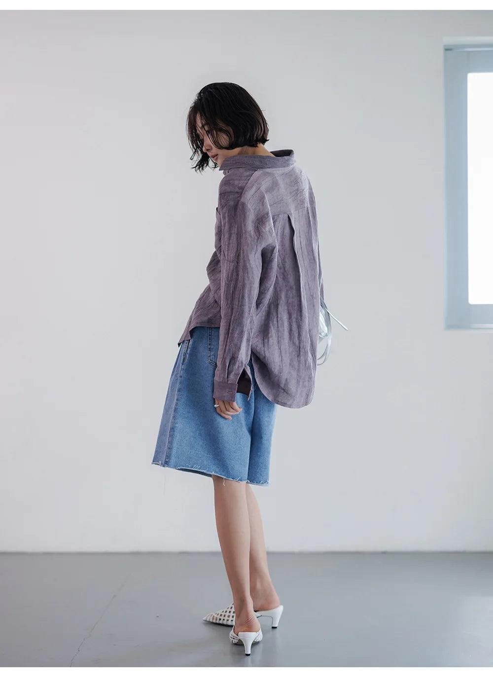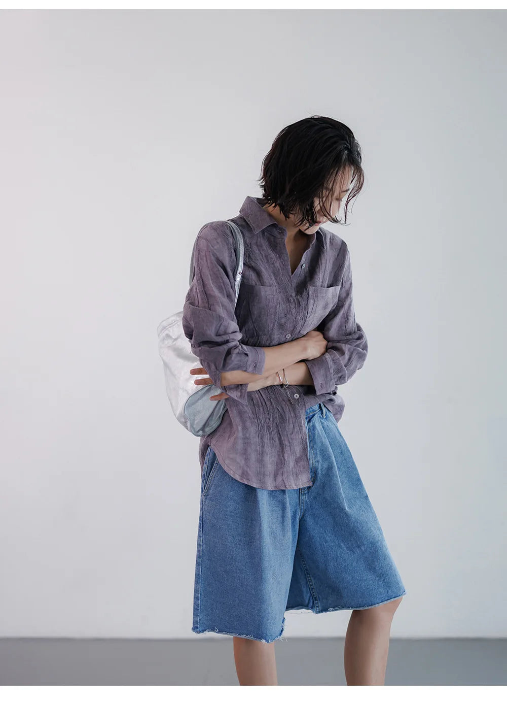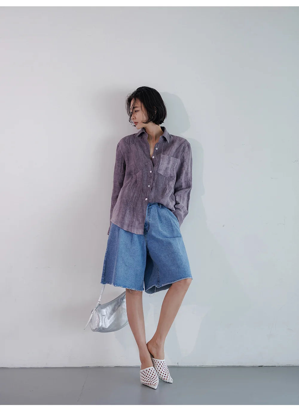 A shirt that looks like it was pressed by intention and worn by someone who knows exactly what they're doing. Pure linen with a subtle vertical pleat texture that catches light without demanding attention. Two chest pockets, a classic collar, button-front — the kind of piece that works tucked into a pleated midi or left open over a tank. Seasonless and completely reliable.